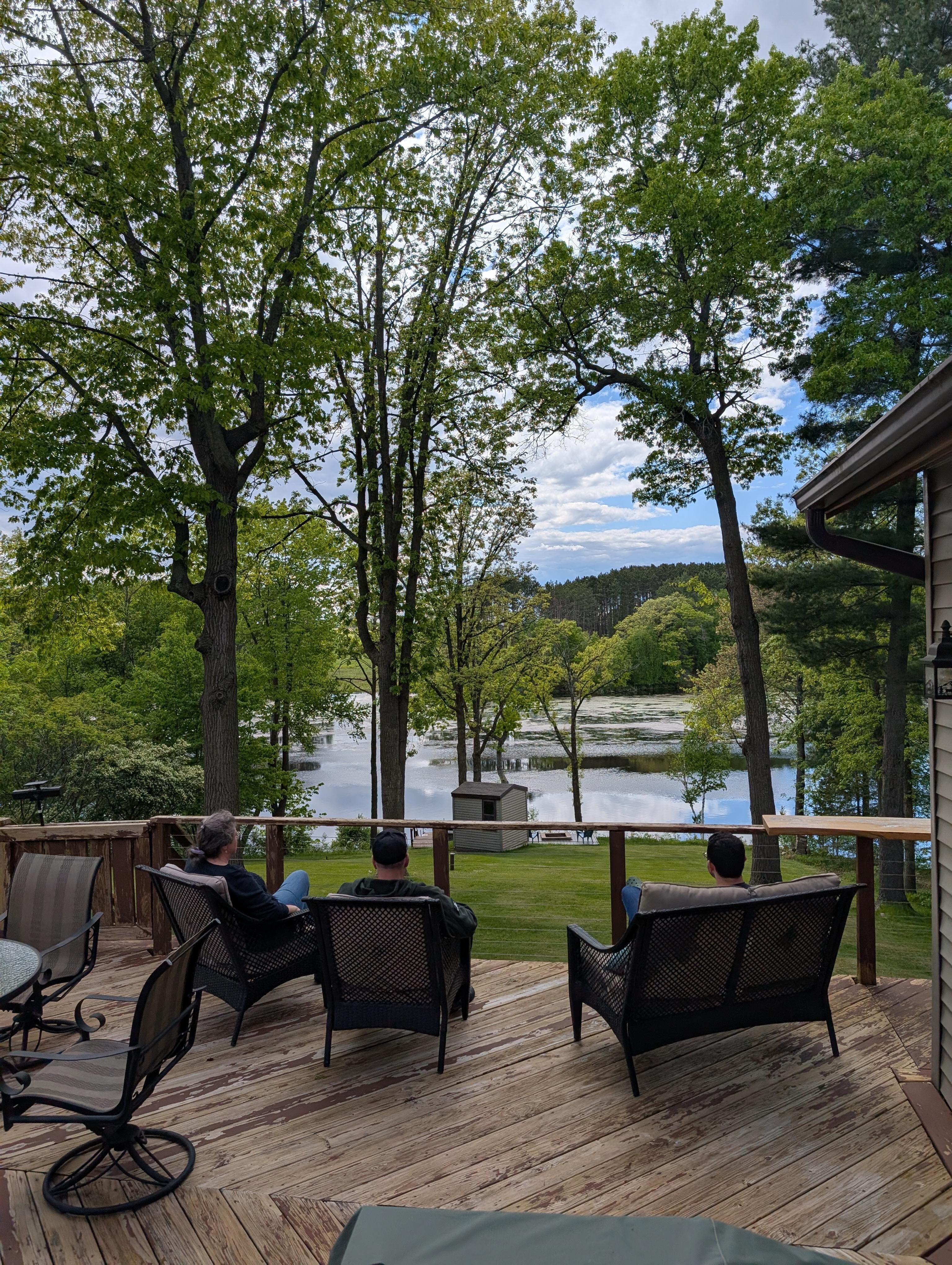 Situated on a large waterfront lot, our warm wooded cabin boasts 3 bedrooms, two light filled living spaces, 2 bathrooms, and a wrap around deck. Outside you will find two dedicated bonfire pits, horseshoe, corn hole, a flat top grill, and a private dock with great fishing & serene views. The garage extension features a game room with a pool table that also turns into a ping pong table. In the winter, enjoy the nearby 18 mile snowmobile Cattail trail or the ample amount of trails for snowshoeing. This very quiet and peaceful community makes it easy to unwind and enjoy a relaxing getaway.
