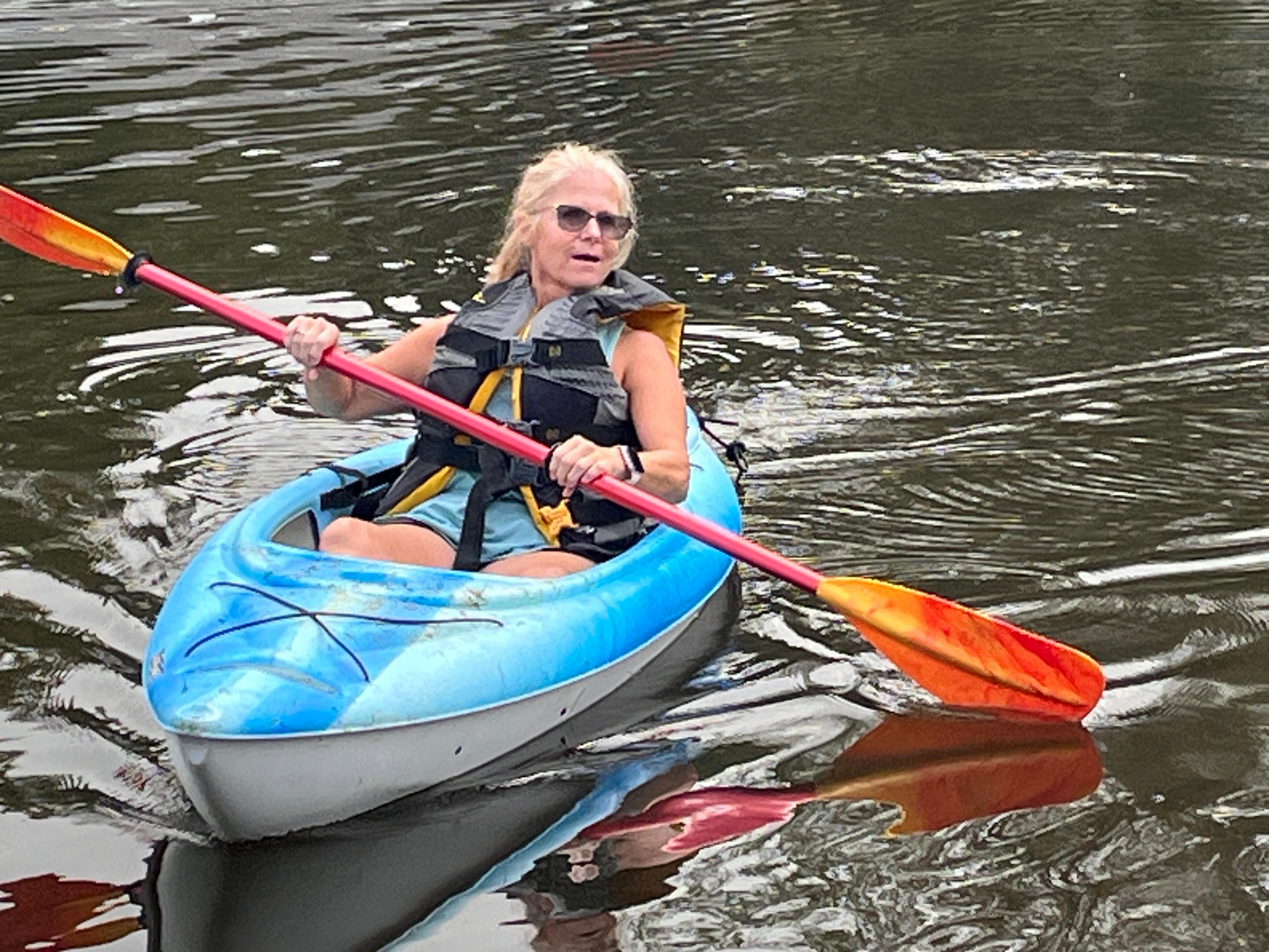 The private dock is also stocked with an assortment of life jackets. water toys, fishing poles, kayaks and paddle boards.
