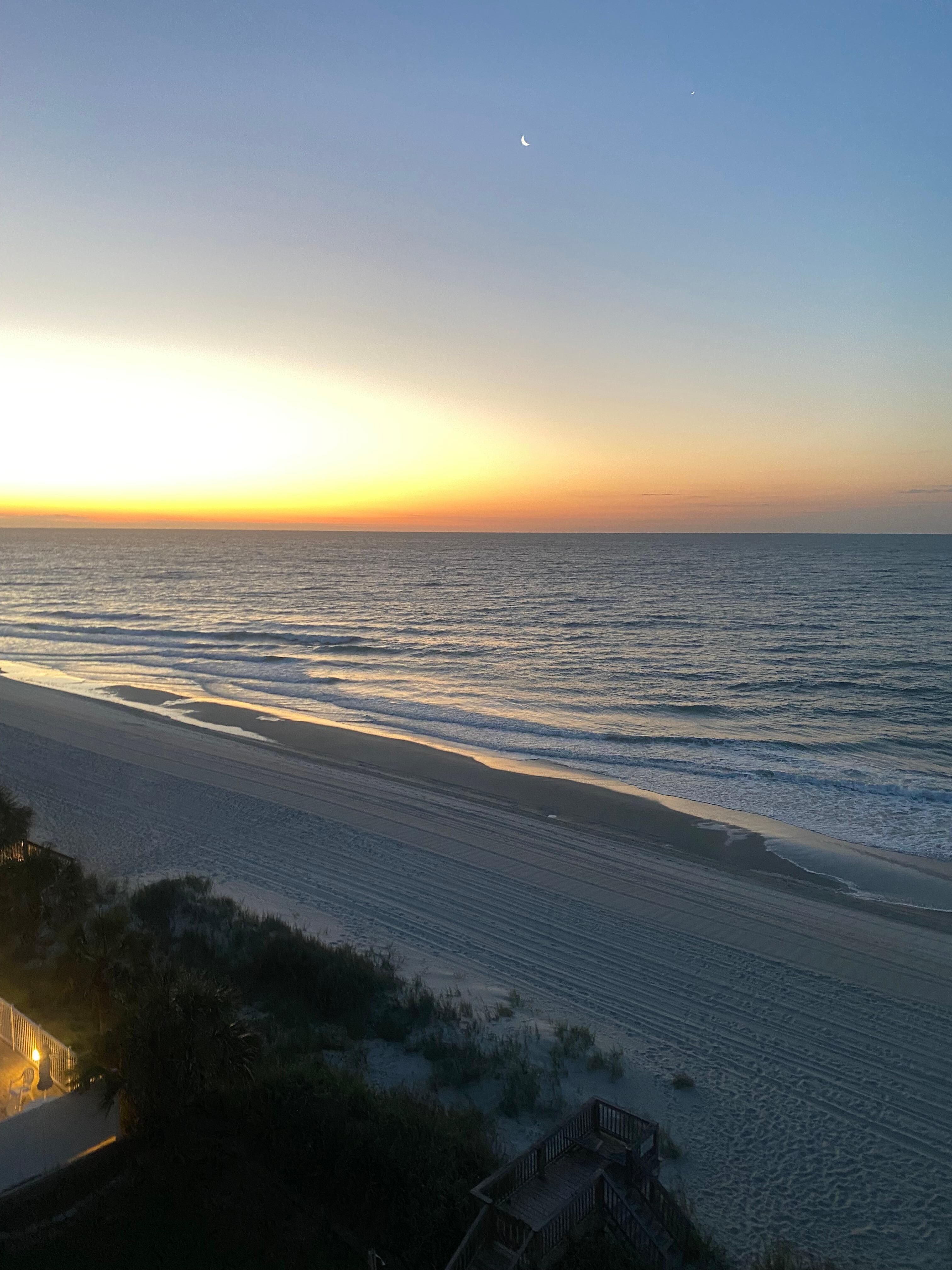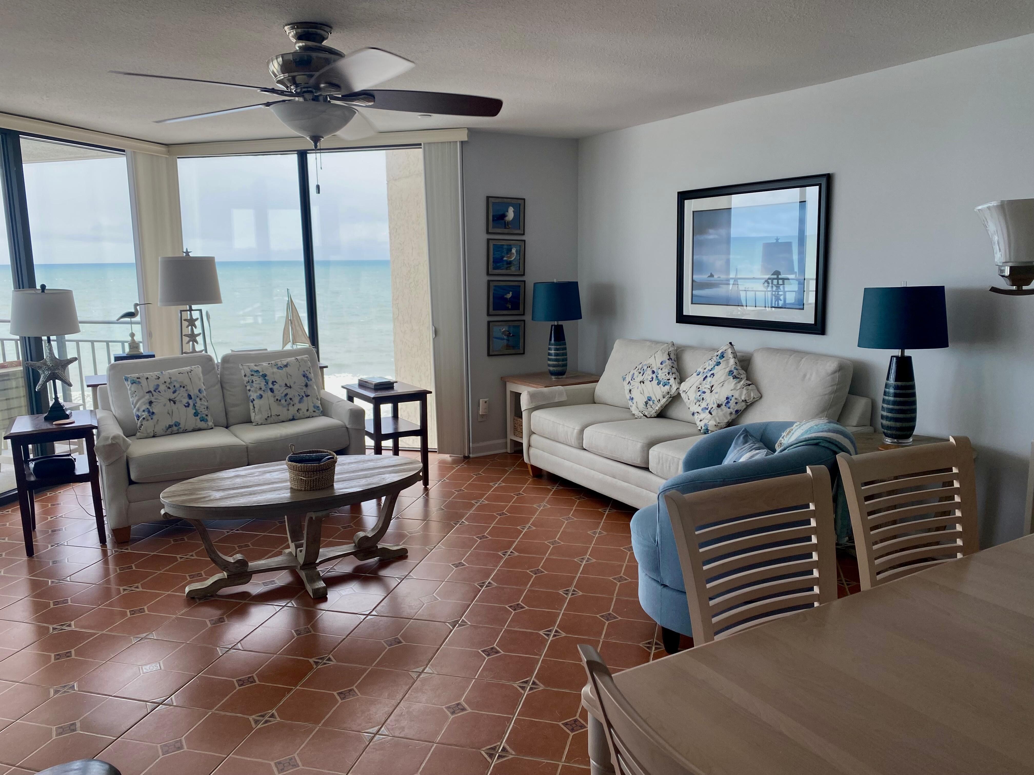 This home-away-from-home has a spectacular beach and ocean view from both the living area and the master bedroom in a corner unit on the 5th floor of Surfmaster North. The recent, tasteful remodeling highlights a comfortable living/dining area with tile floors, comfortable sofa, love seat, and chairs, televisions in the living area and all three bedrooms, and dining seating for 6 with 4 bar stools at the island.