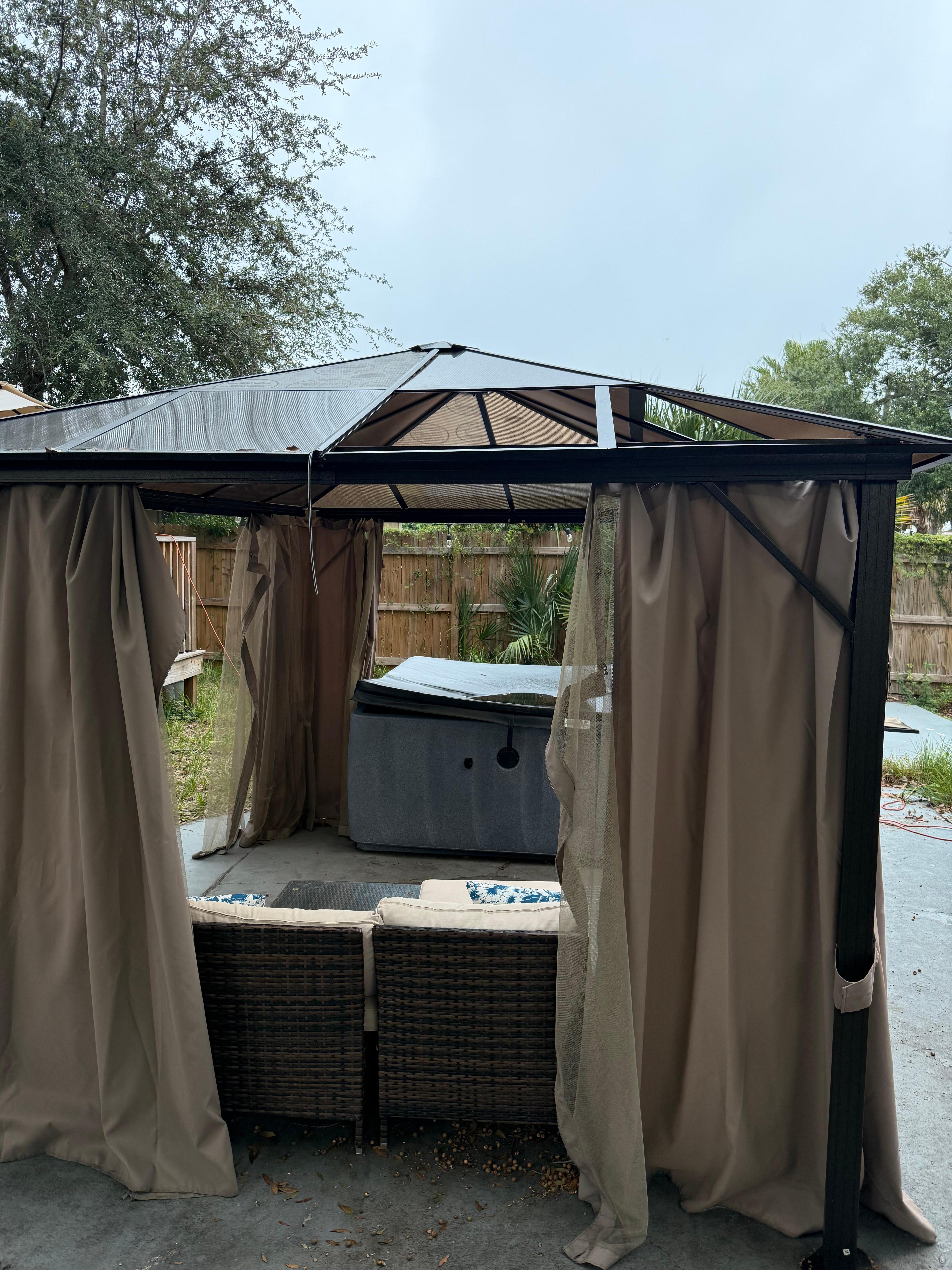 Guests have access to the entire property, including both the main house and the second unit. They can enjoy all indoor and outdoor areas, such as the fully stocked kitchens, living spaces, game room, and bedrooms. The backyard, equipped with a hot tub, outdoor dining and lounging areas, ping pong, corn hole, and string lights, is also available for guest use.