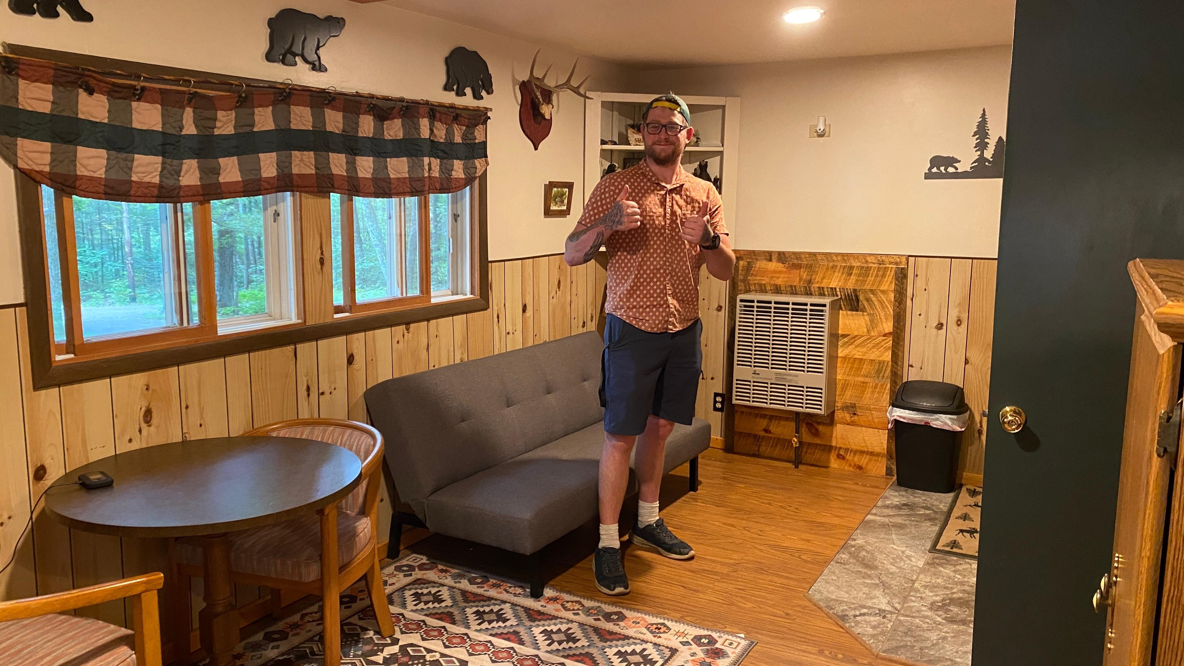 The host was great with communication and being accommodating and the cabin had the “up north kitsch” which was cute. The bed close to filled the bedroom which made navigating around it a bit tricky, but it was comfortable. On the downside it could have been a bit cleaner - older cobwebs in the corners (which I cleaned), crumbs in the silverware drawer, soap bits on the tub wall (which could definitely use a regrout) and a toilet seat which was close to falling off, it only needed a retightening which I did. The biggest downside for us was only a valance in the main area and bedroom, no curtains or blinds. We were glad that there was only 1 other occupancy while we were there, but even at that the last thing we wanted was to feel like there wasn’t any privacy, especially at night. I think these are all easy fixes and would consider staying here again (if curtains or blinds are added).