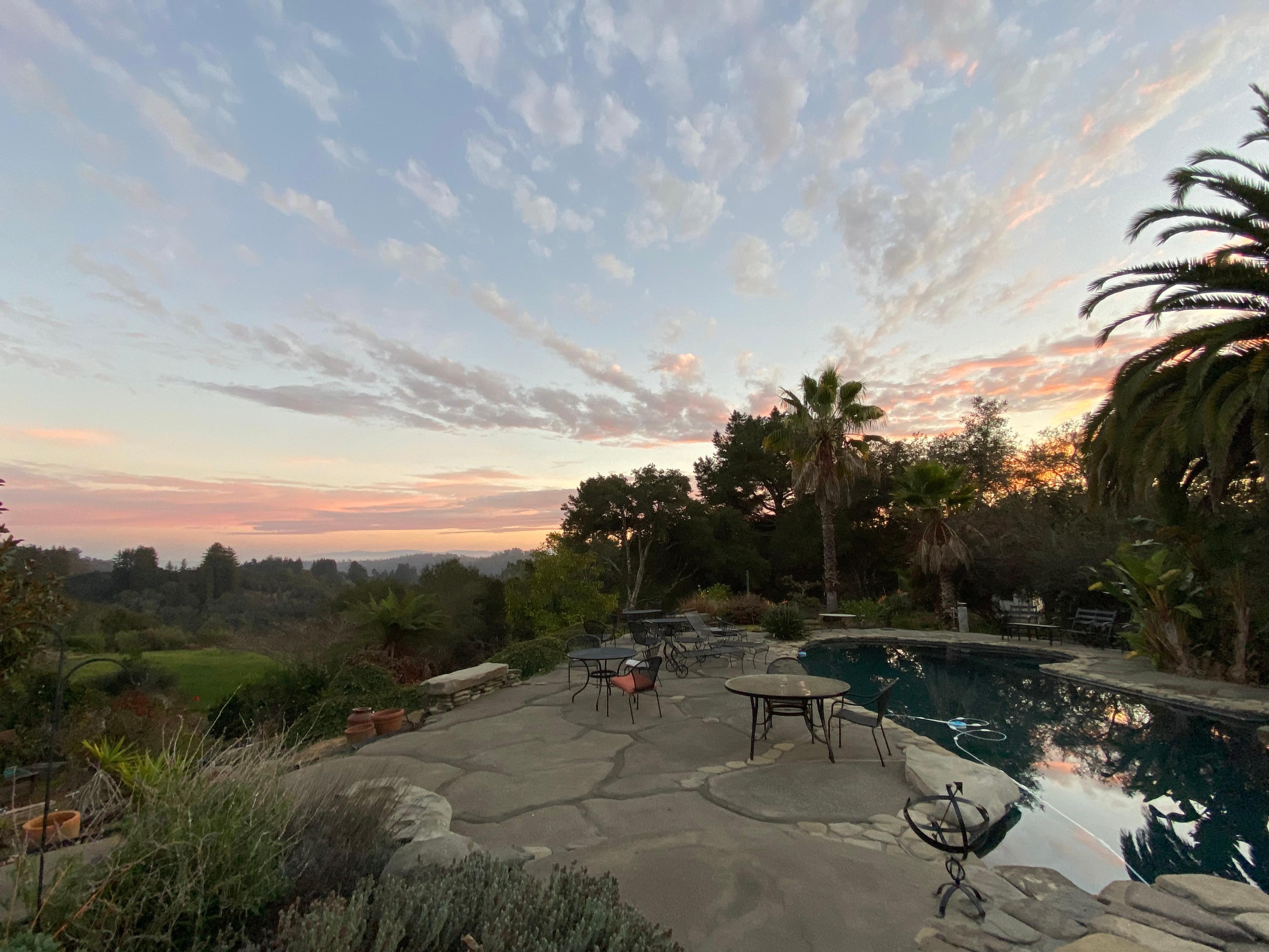 This pool side house is on 20 beautiful acres within a gated community. Gorgeous full kitchen includes full size refrigerator, dish washer & granite counters, matching granite table. The full bathroom is also granite with stained glass window. The main room includes granite table, couch & coffee table, desk for computer, and queen size Murphy bed. The house is within a fenced area with pool, decks around pool, garden and orchard are just below. Garden path to house. The pool is not heated. This is sited on a large acreage parcel, completely private & secure. House has access to the 1/2 acre lawn, badminton court, and miles of hiking trails lead from property. 2 Day minimum rental time.