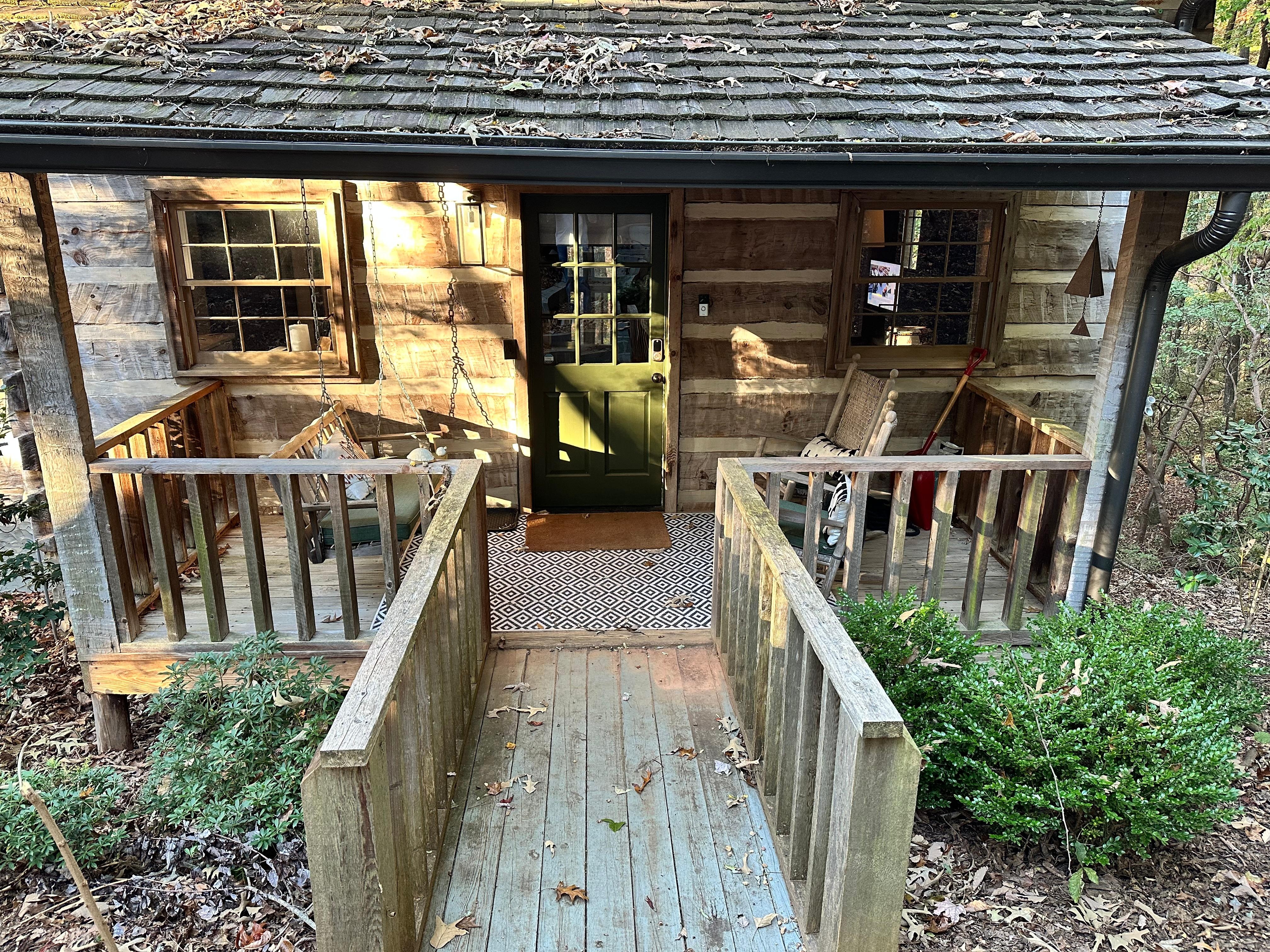This picture-perfect cabin makes for an incredible getaway, loaded with stylish charm from room to room. It is a cozy, yet stylish retreat, nestled in a beautiful wooded hillside glen with a creek!