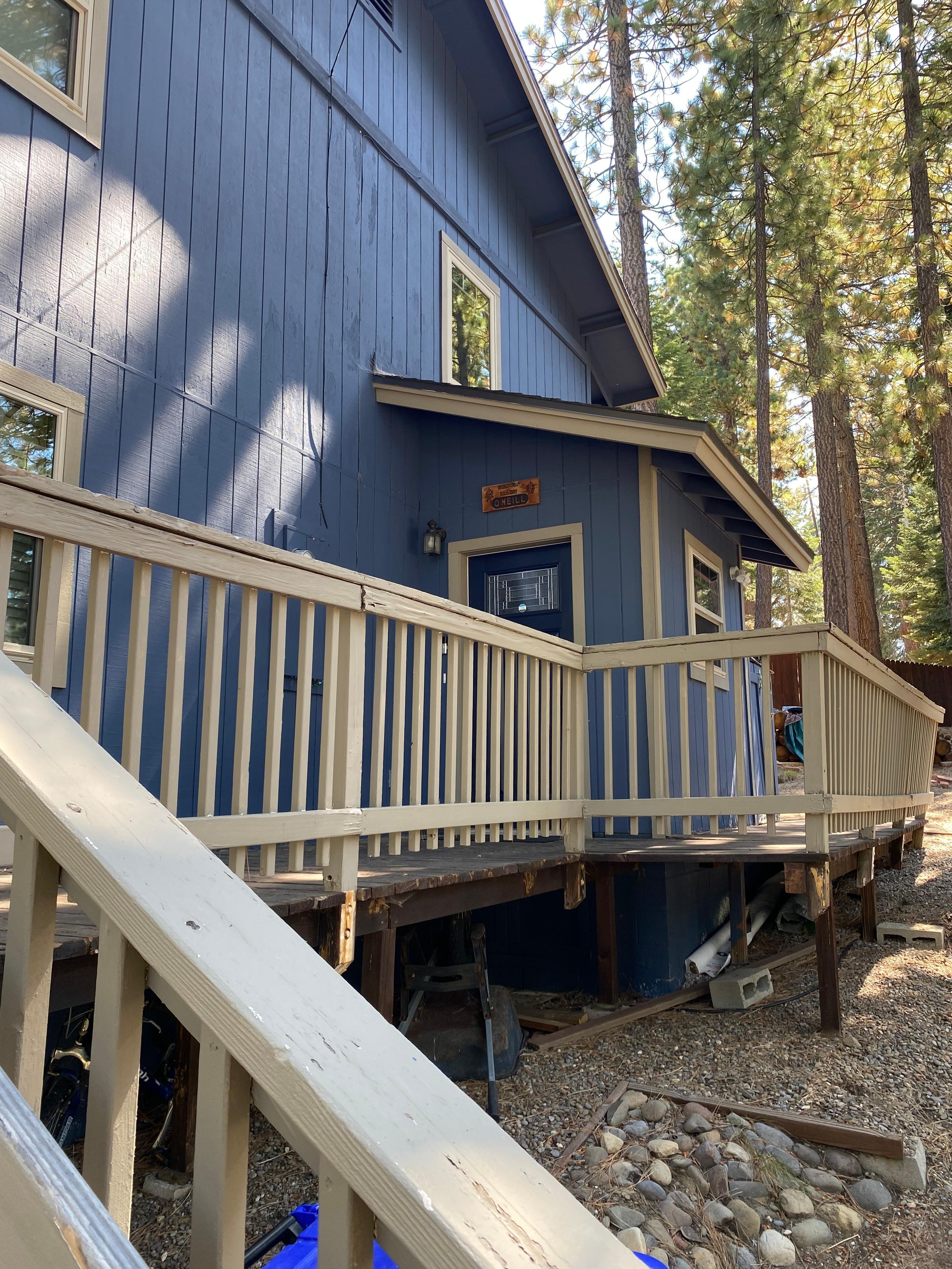 This five-bedroom, two-and-one-half bath home is 2300 square feet and may be rented by a maximum occupancy of 10 persons ages 6+. The reverse floor plan has a large open living room with flat screen TV, dining, kitchen space, two bedrooms, one bath and a barbecue on the top deck, upstairs. Downstairs features a family room with a large flat screen, wet bar and three bedrooms, one-and-one-half baths, laundry room with washer and dryer. It is both clean and comfortably furnished. The location is very central to all activities. Sierra at Tahoe and Heavenly Valley Ski areas are both 15-20 minutes away and Kirkwood & Homewood are 30 min away, great beaches, bike trails & horseback riding are a 15 minutes drive. Shopping, restaurants, and golfing 5 minutes. Nightlife is 15 minutes away. Our home is located on one-fourth acre and has vacant lots on either side. It has a wonderful mountain feel with lovely mountain views in a wonderful neighborhood . A perfect place for people to enjoy each other and the natural beauty around them. The maximum occupancy is 10 guests ages 6+. Parking for 4 vehicles. Contact us if you have questions or would like to reserve the home. Keywords: Lake Tahoe Vacation Rental, House, South Lake Tahoe, Tahoe, Tahoe ski rental.