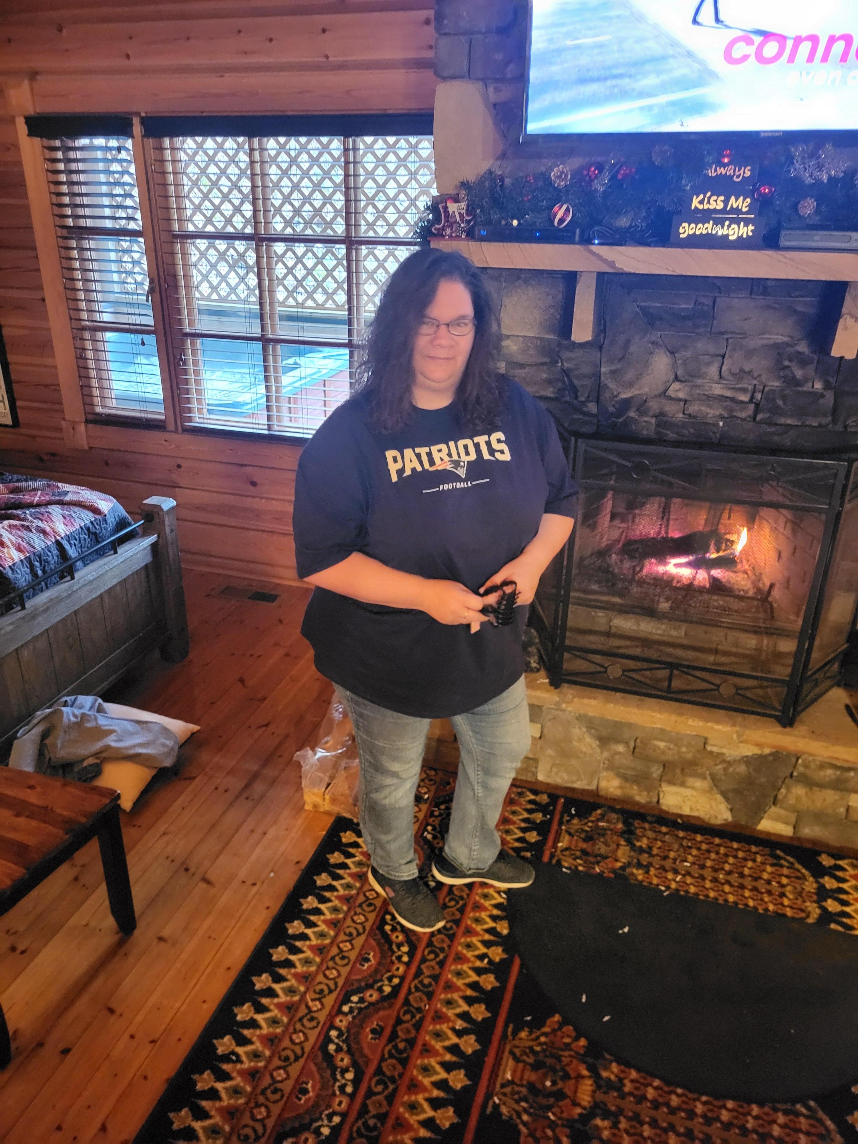 The king-sized bed with soft linens offers a restful night’s sleep, while the 42” HDTV with Roku Stick, comfy recliner, and rocking chair provide relaxing spots to unwind. The fully equipped kitchen lets you cook your favorite meals without ever leaving the cabin.