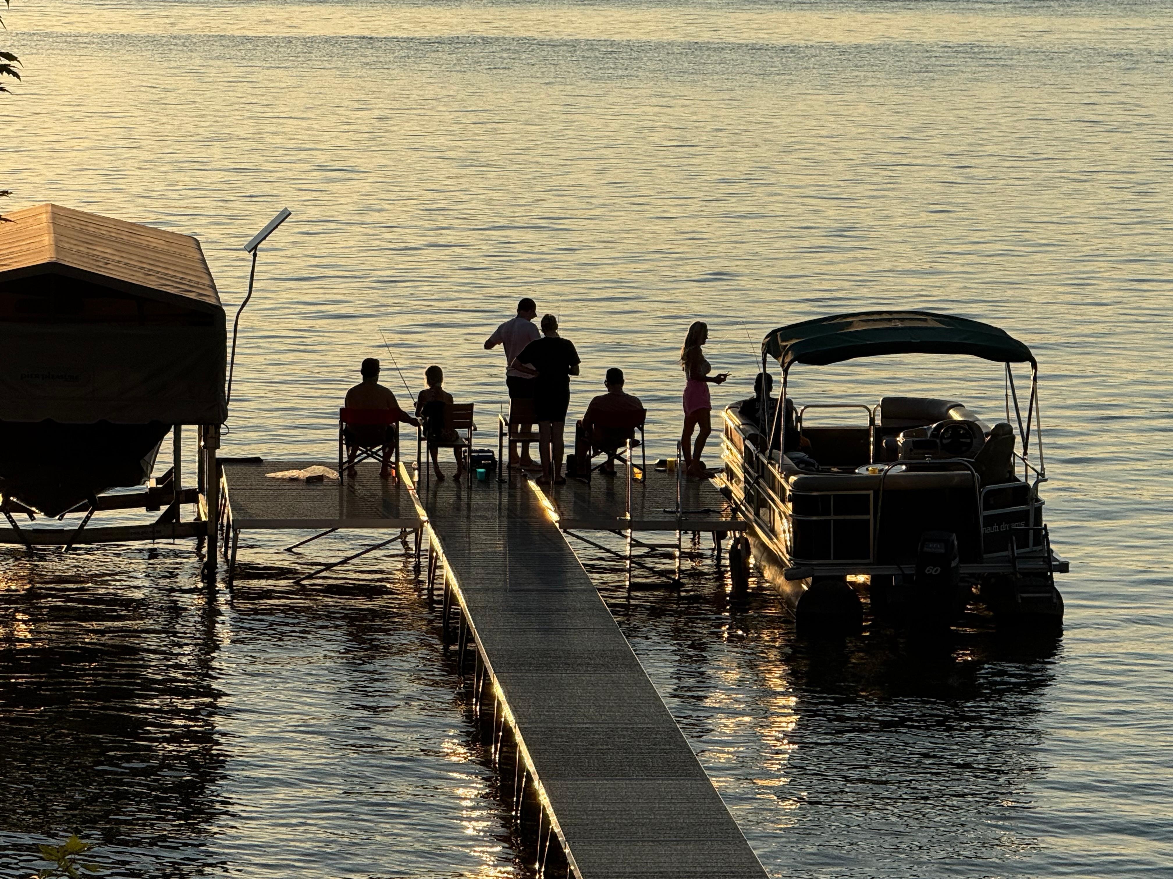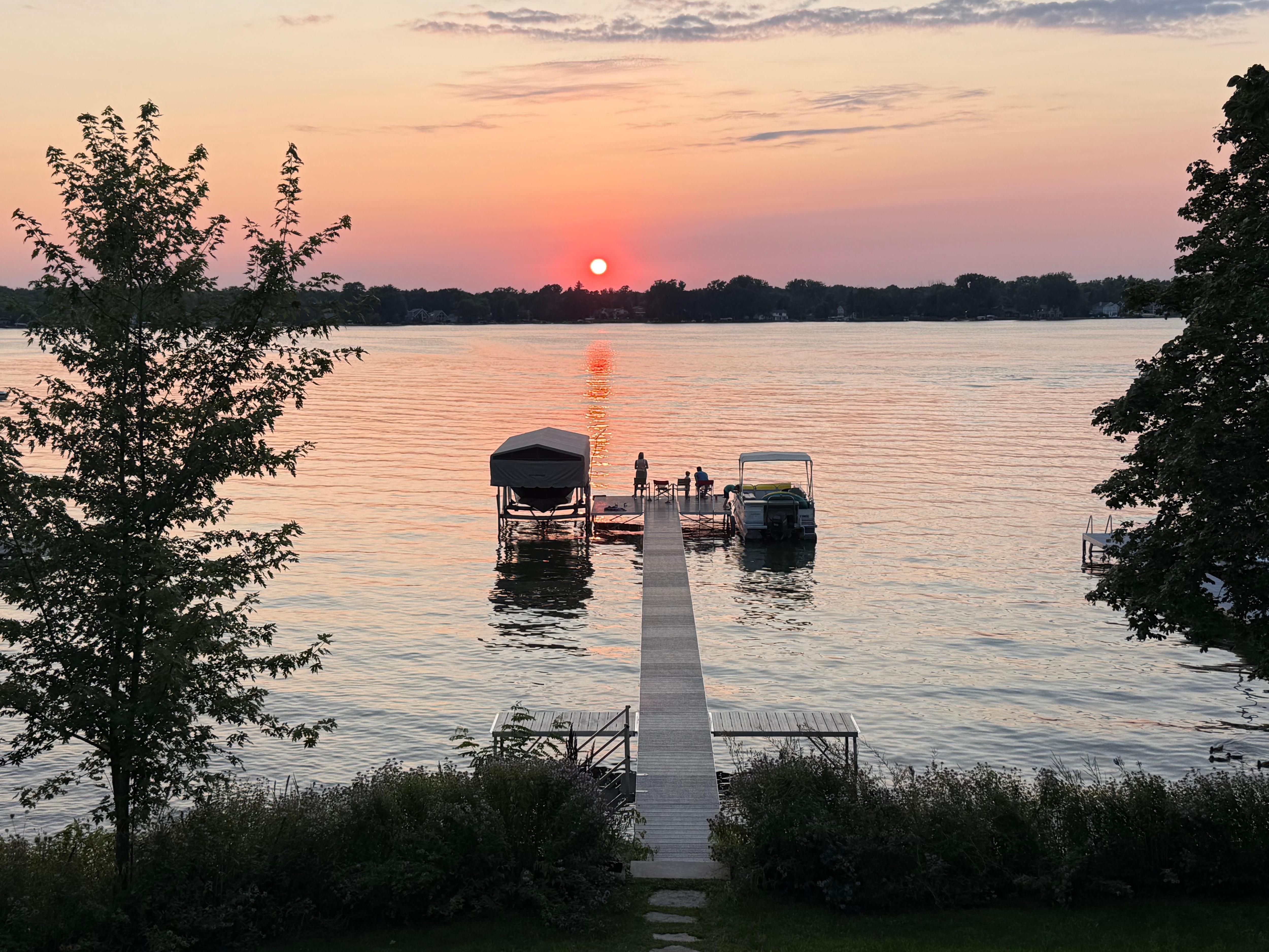 Our outdoor spaces include a Jacuzzi, firepit, pickleball court, and basketball hoop! You can grill al fresco with our massive gas grill, right outside the kitchen door. Go for a kayak trip or paddle board to the nearby nature preserve. Or just float on the lake as the swans pass. With a boat rental facility close by, you can dock your own vessel at the pier and enjoy sunset cruises.