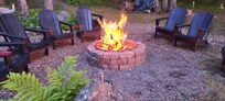 Back yard patio with an outdoor pick nick table and chairs. A propane grill and a firepit area with additional seating to gather around the campfire. Hot tub (Open year round) that fits up to 4 adults or kids for guests to enjoy. No lifeguard on duty, swim at your own risk.