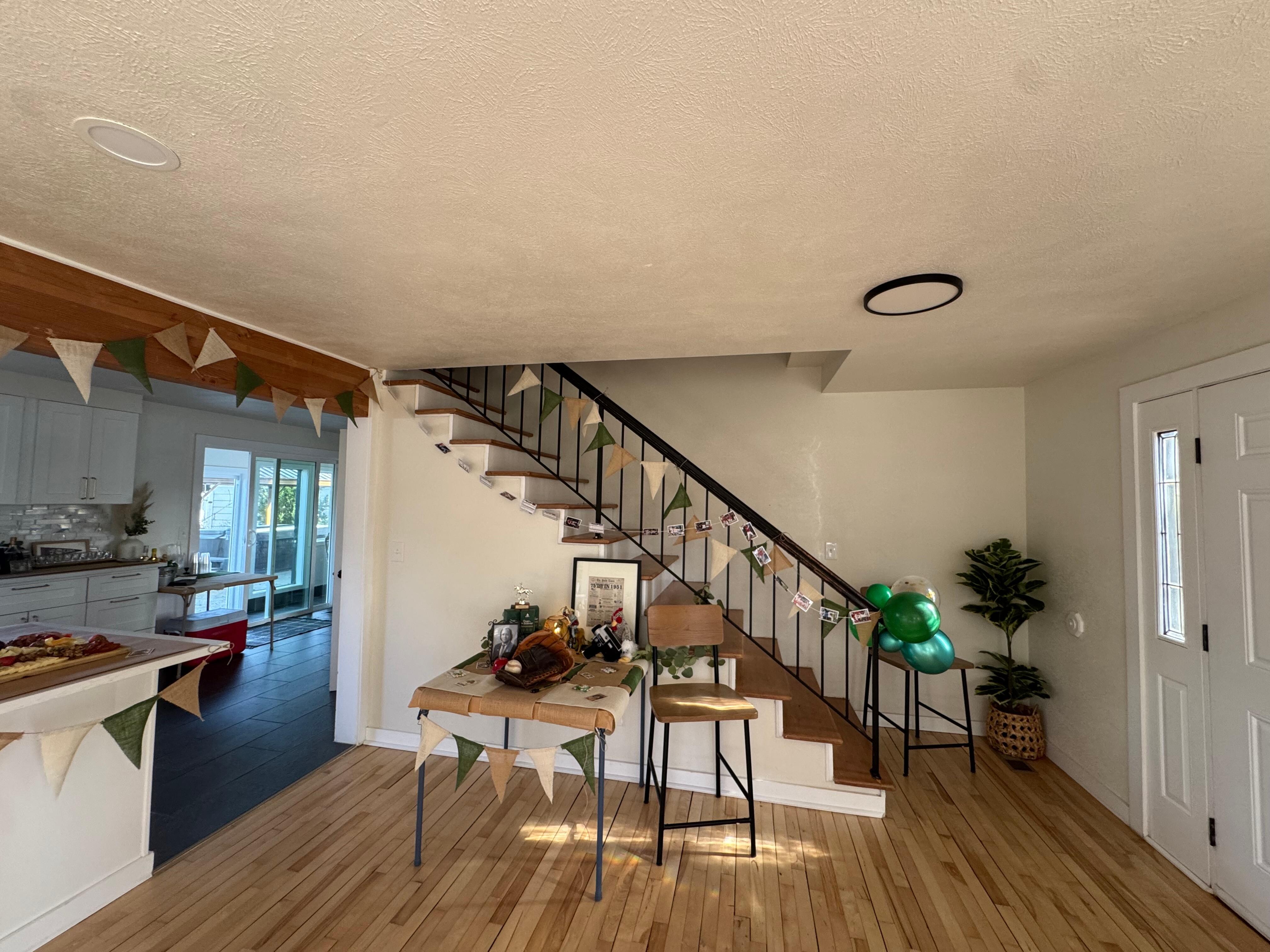 The basement is designed for fun and flexibility: enjoy a 65” smart TV, kids’ games, three twin beds, two queen auto-inflate air mattresses (with extra linens), a pack ’n play, toddler kitchen, and plenty of toys.