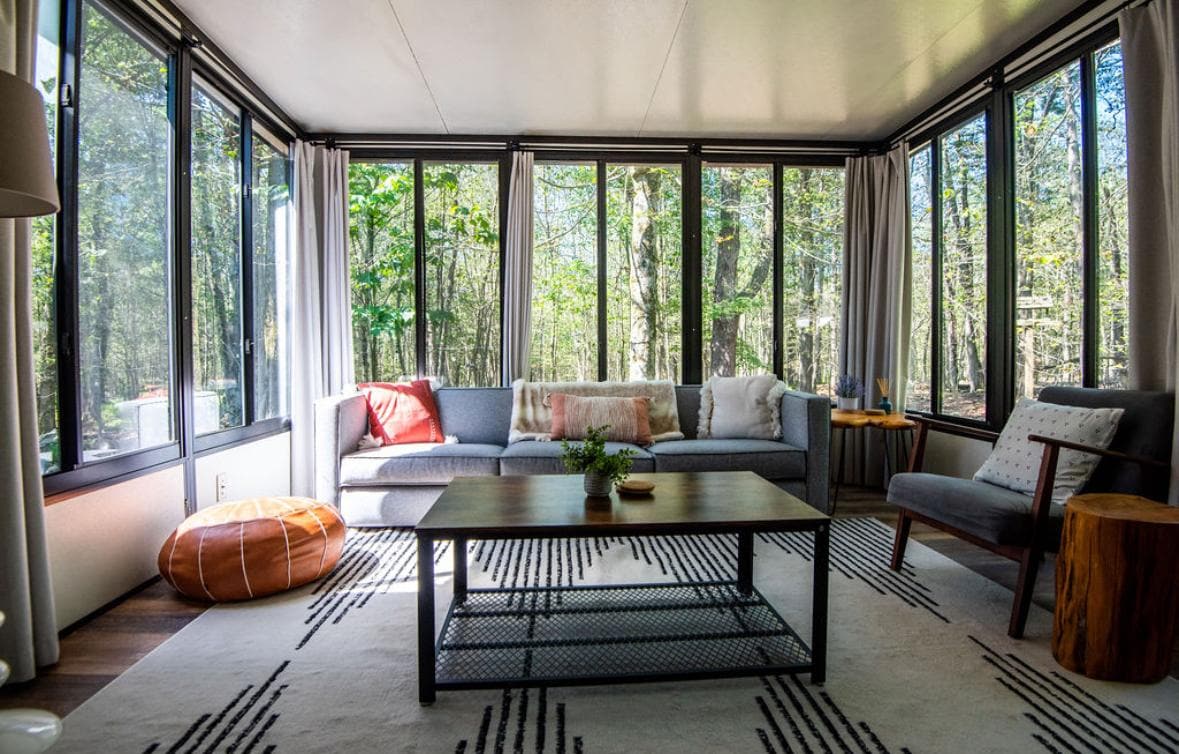 Our home offers an open layout with a fireplace and a stunning sunroom with panoramic views of a Pennsylvania State Park.