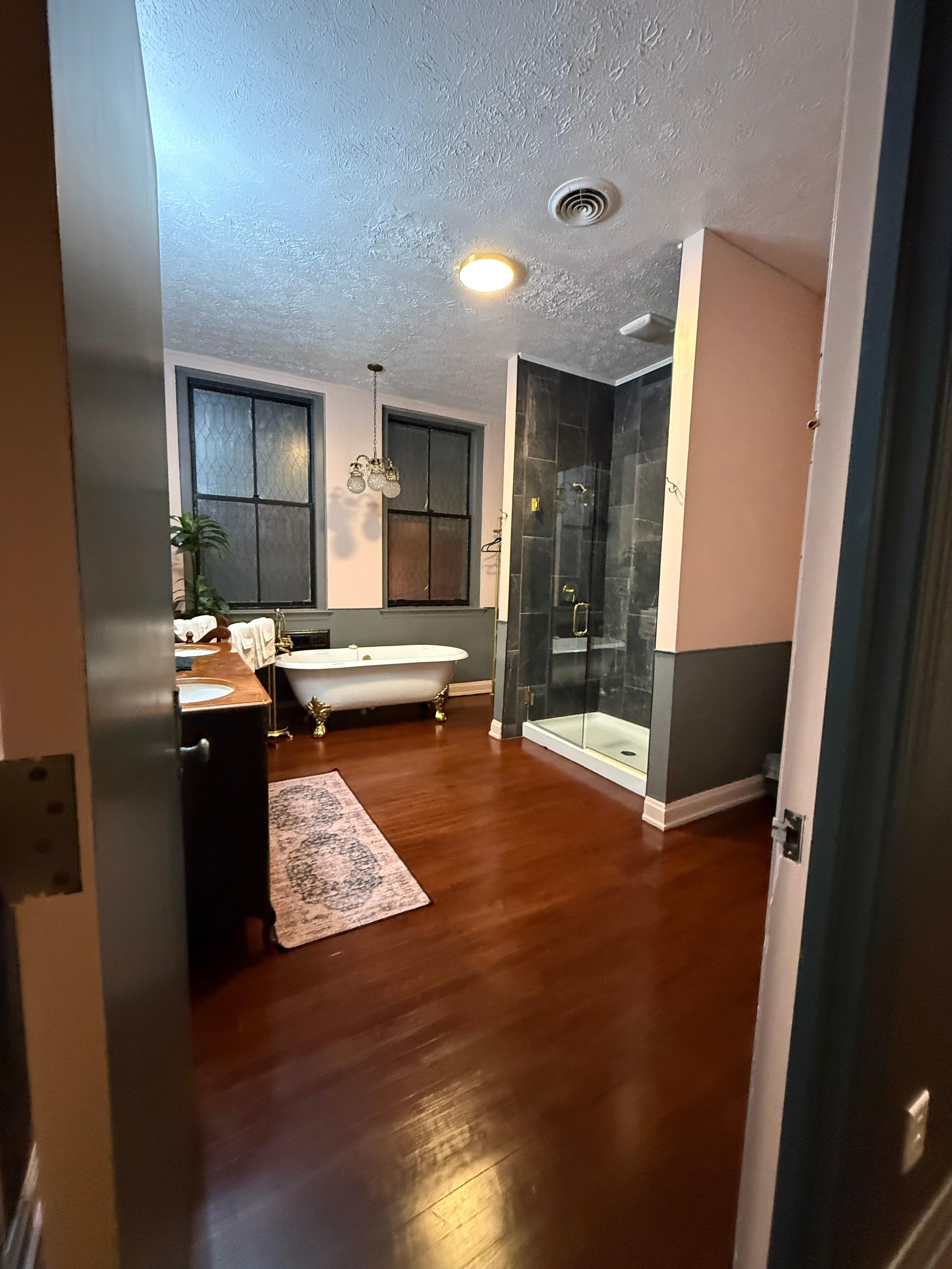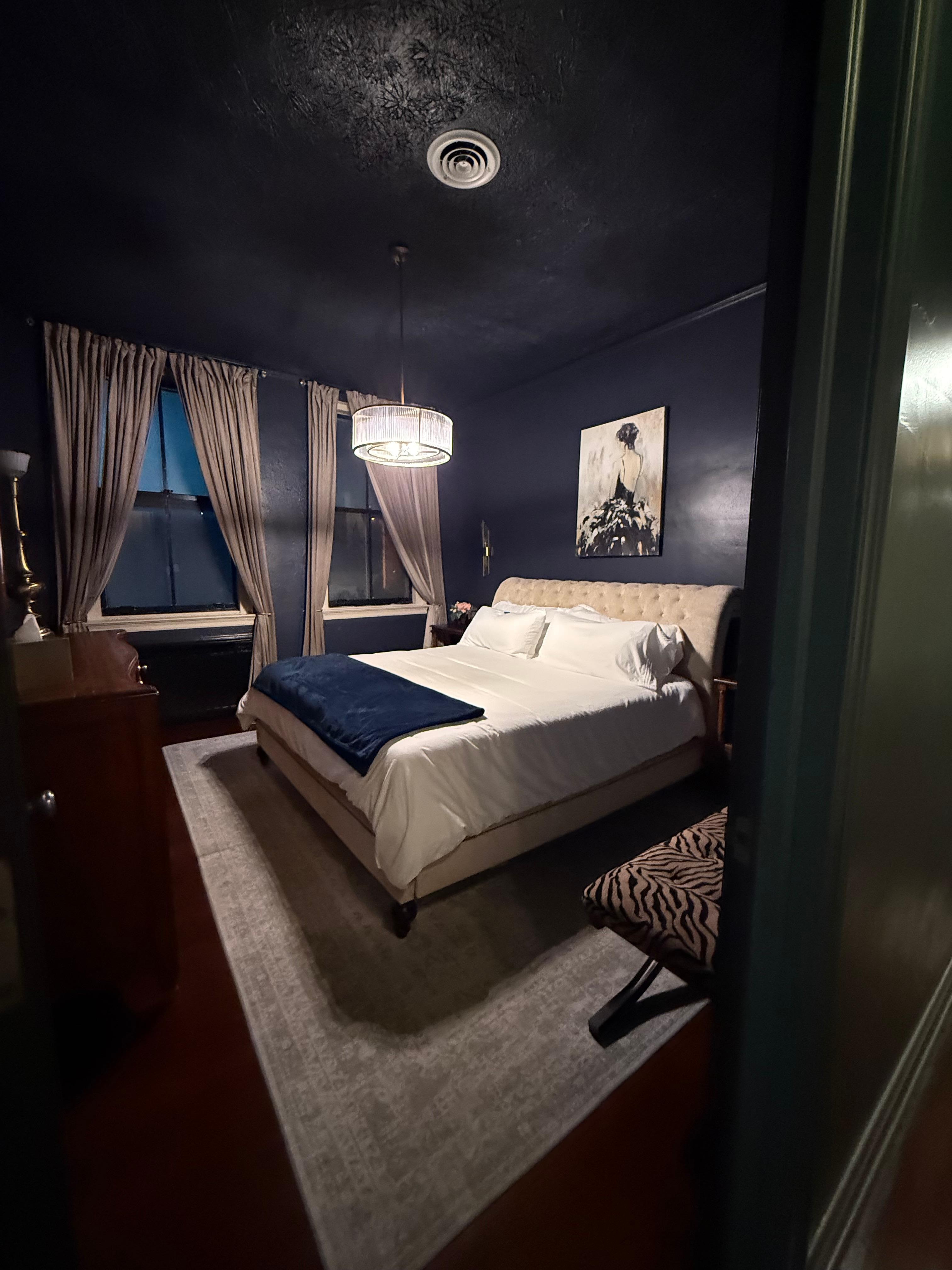 Love this place! We’ll be staying again when we visit family. This place is much larger than expected. Love the vintage decor and super high ceiling. I wish we had time to enjoy it more. Checked all the must have boxes for us. Very clean, extremely comfortable beds, giant bathroom. Nice to have the second half bath. Well stocked and beautiful kitchen. Very large gathering spaces. It was super quiet when we were there. I was initially concerned about parking but we parked right in front and could see our truck from the front window. Pretty sure you could see it whichever space you choose to park.