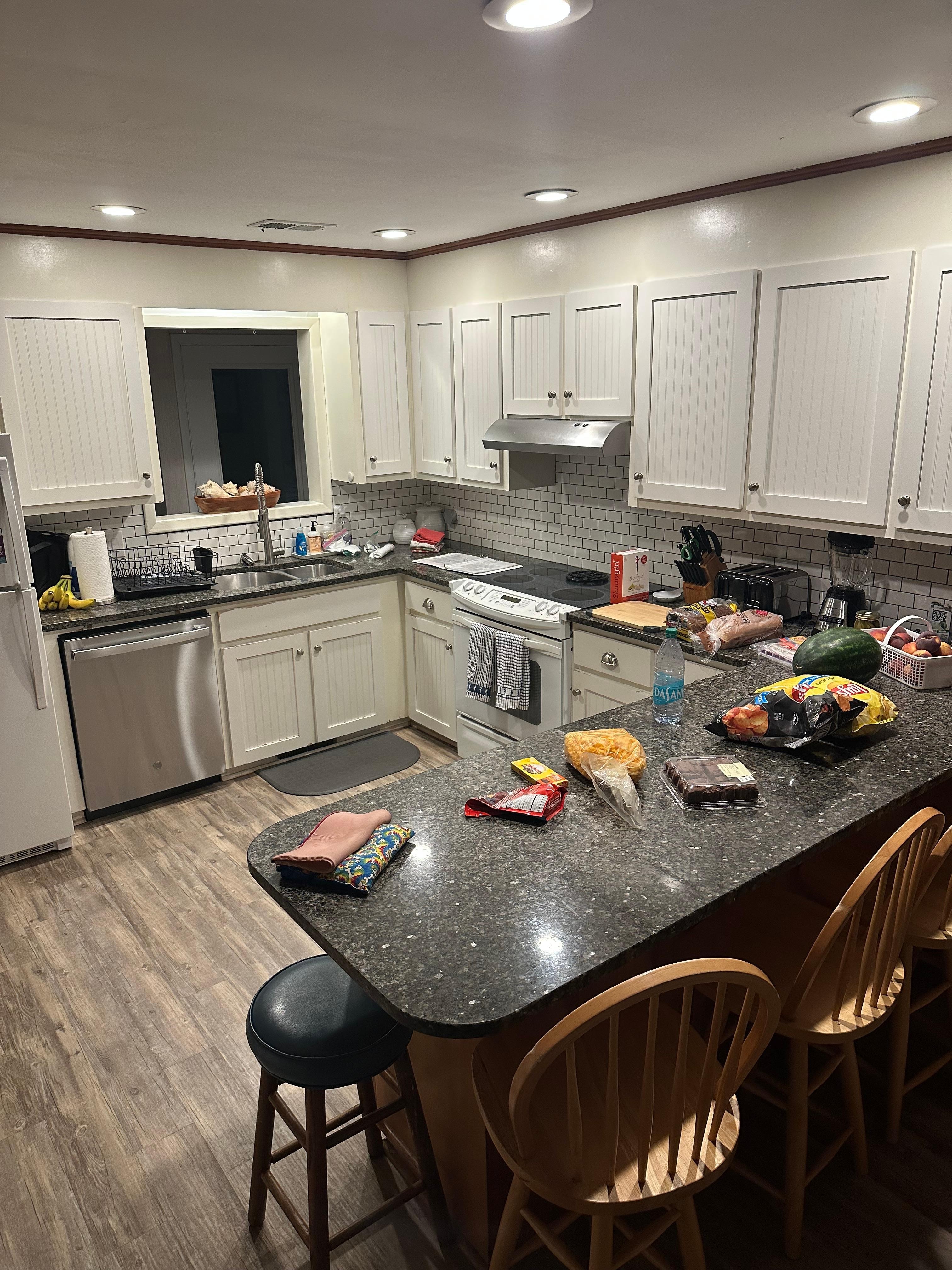 This house is well stocked with items that many of the rentals do not include. The kitchen is fully stocked with enough dishes, glasses, silverware, pots, pans, etc. to feed large family. My dad thought he was Emeril so you will find all kinds of gadgets in the kitchen drawers. We also have books, games, and movies scattered around in different drawers/places for you to borrow during your stay.