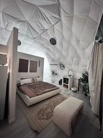 During the winter months, the dome can get quite cool. To ensure your comfort, we provide two electric fireplaces, luxury linens & throw blankets. Feel free to use the outdoor fireplace as well for a cozy evening under the stars.