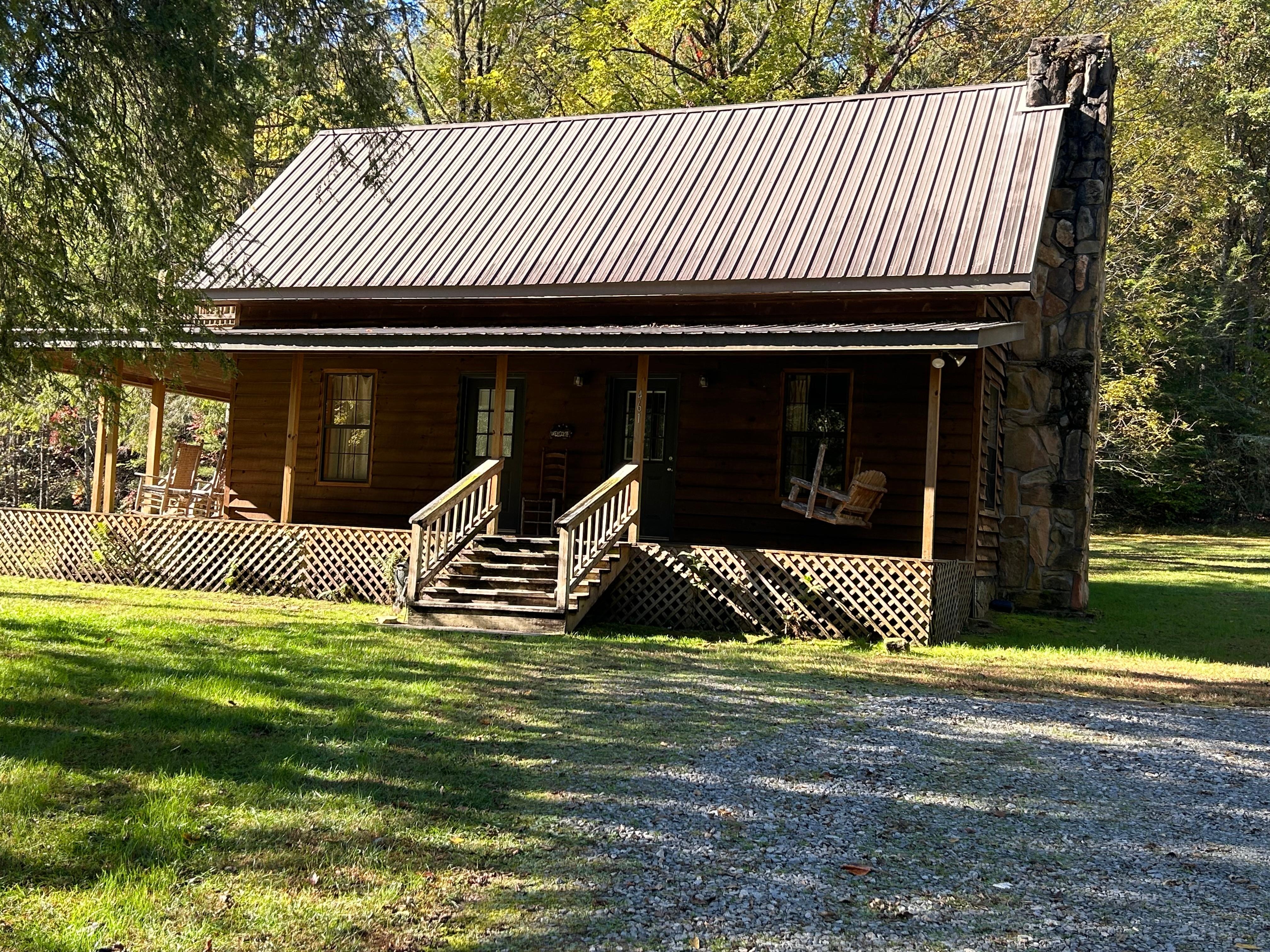 Home has all wood floors, master and full bathroom on main, two bedrooms and bath upstairs in the loft. Rock fireplace with gas logs in living room invites warm conversation or quality TV time. Yes, we have Satellite TVs in living room and upstairs parlor with lots of channels. And, although we’re in the backwoods, we have wireless Internet, too!