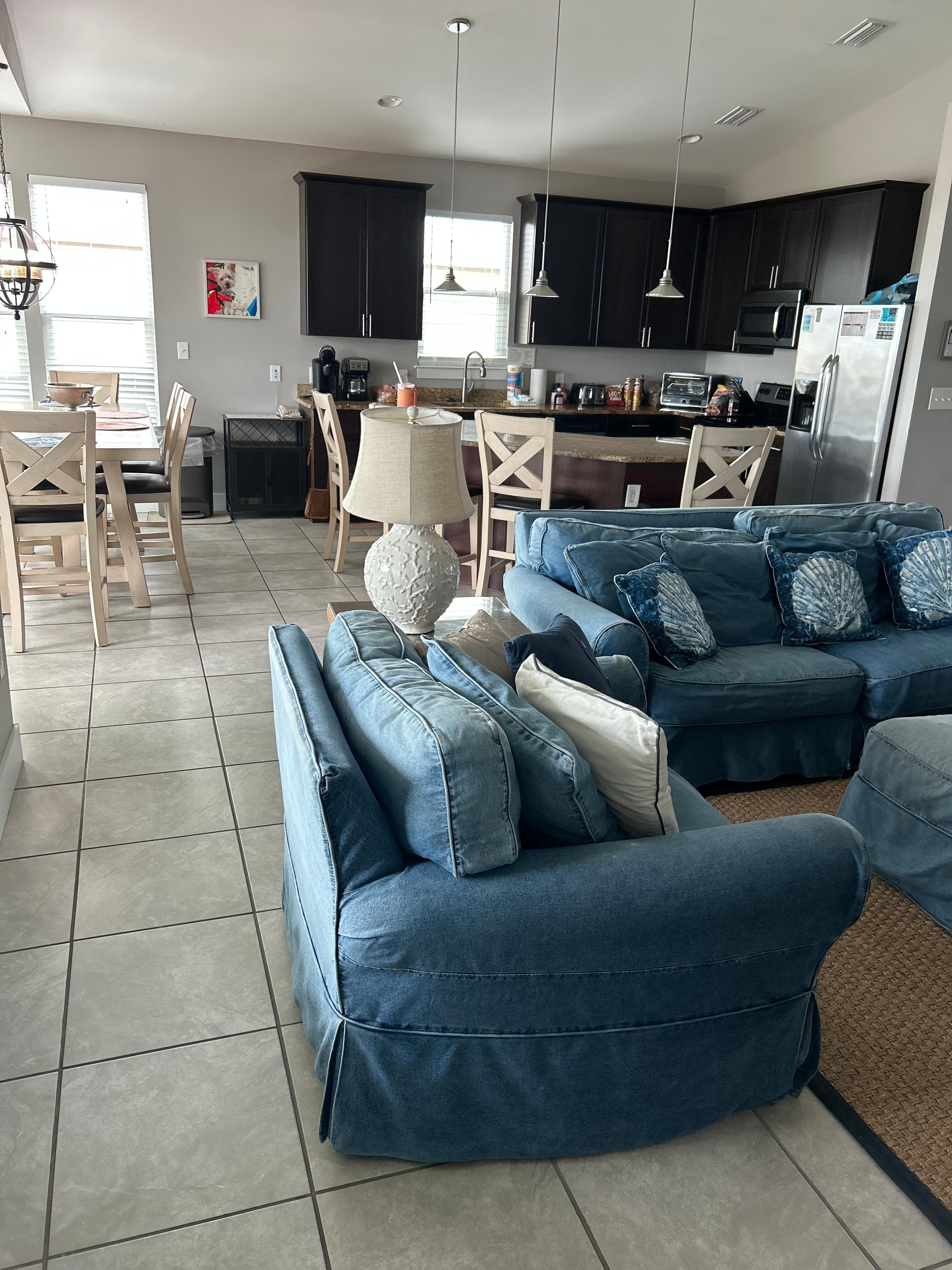 Inside, Blue Pearl is designed for relaxation and comfort. The open-concept living and dining areas create a welcoming atmosphere, perfect for gathering with loved ones after a day at the beach. The fully equipped kitchen makes meal preparation a breeze, whether you're making a quick snack or cooking a large family dinner. Each of the four bedrooms is thoughtfully decorated and spacious, offering plenty of room to unwind. With four bathrooms, there's no shortage of space and privacy for everyone to get ready or wind down.