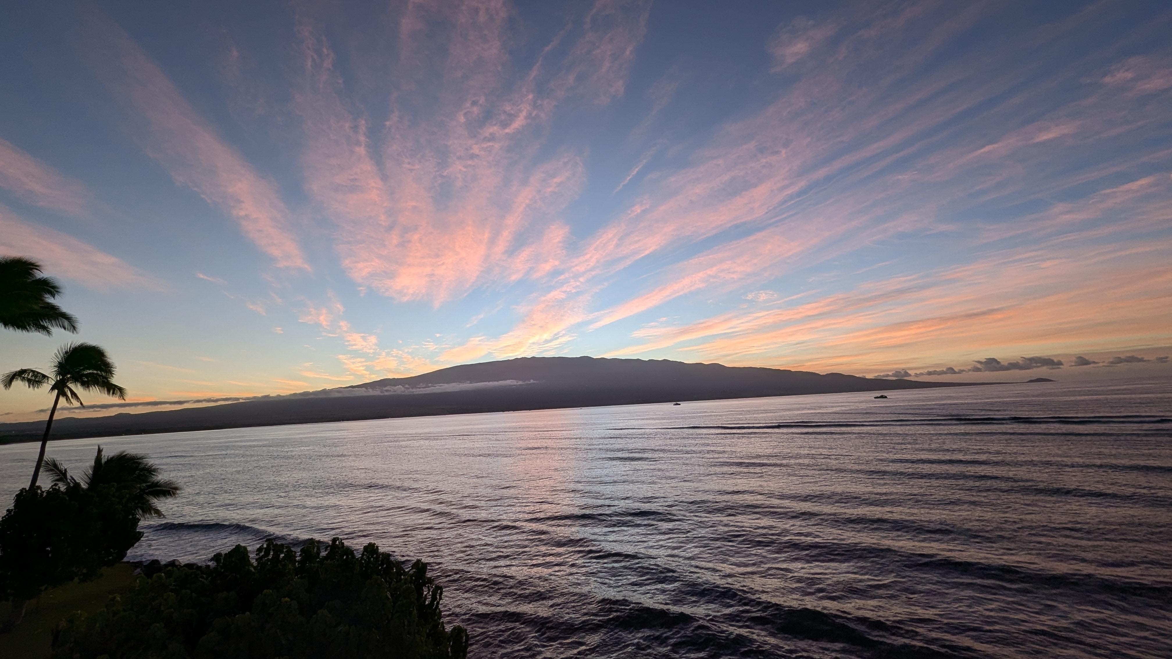 The warm, caressing Trade Winds make West Maui's low humidity weather unfailingly sunny, warm and comforting. Picture yourself dining on your balcony gazing at the near by Molokini Crescent rising out of the blue Pacific and noticing a pod of Humpback whales; or scanning near shore for turtles as they rise for an early morning snack; or walking along a warm ocean and suspending time simply to listen as the waves toss laughter into the air; or lounging together on a sandy beach or around a spacious pool overlooking a blue tropical ocean; or hearing the surf as you fall asleep and waking to it. The simplicity of this genial, peaceful and romantic setting brings people back to our home-away-from-home year after year.