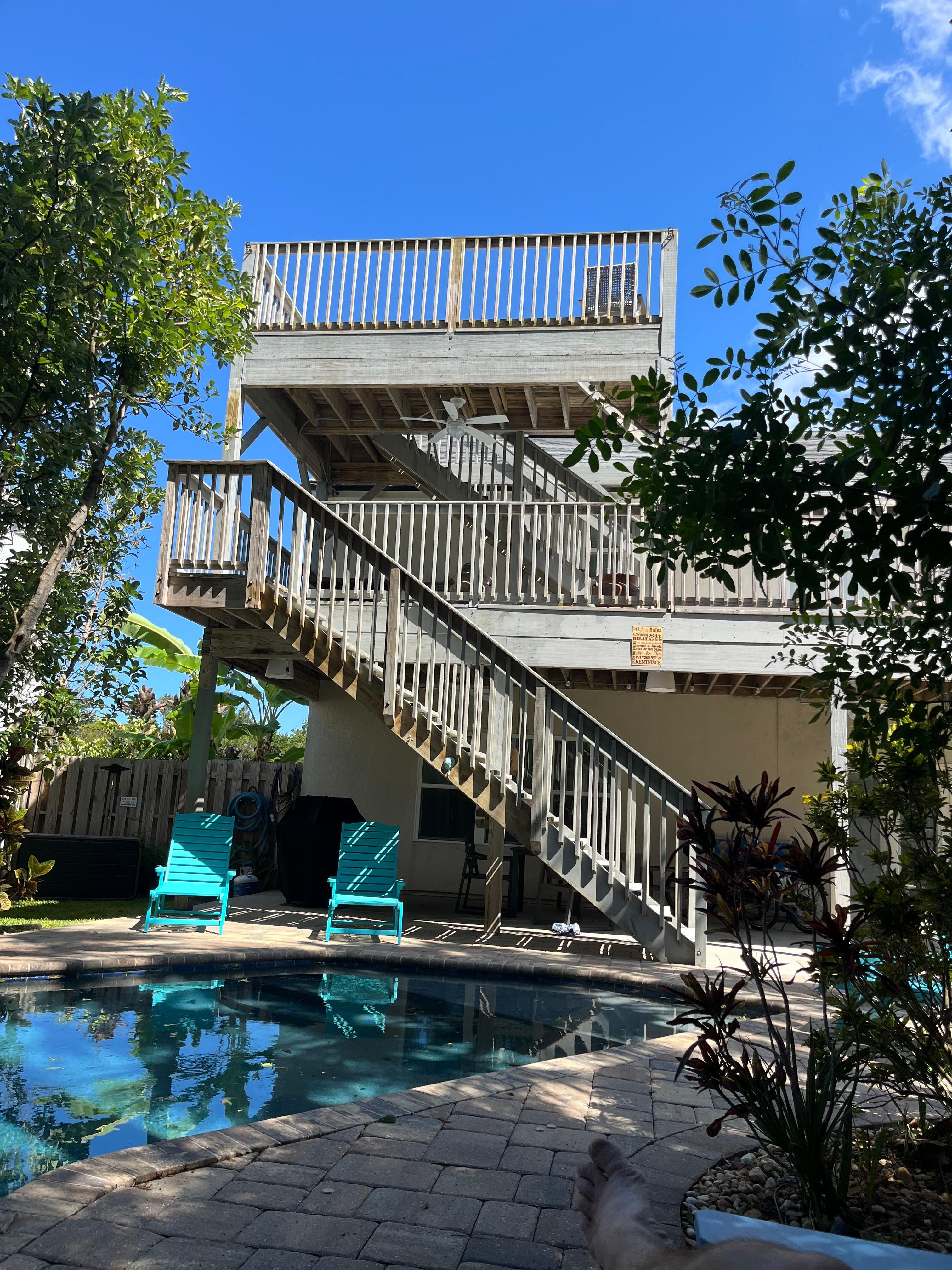 We thoroughly enjoyed this vacation home. The description is accurate, the property is well-maintained, everything was super clean, the owner is communicative, house is well-equipped, lots of thoughtful touches in the kitchen and bathrooms. Bedrooms were comfortable, bathrooms were well appointed. We had 6 adults and one toddler, everyone had plenty of room. The outdoor area is wonderful, plenty of chairs/tables and shade when it’s hot. For people with little ones, the pool has a really long/wide ledge in the shallow end. It’s perfect for a child. She could play/stand, we just stationed ourselves on the ends so she wouldn’t go too far. An unexpected bonus!The house is perfectly situated between Old Town and the beach, 10 minute max drive to either. We love St Augustine and were so happy to be back and have such a great place to stay that suited the whole family.