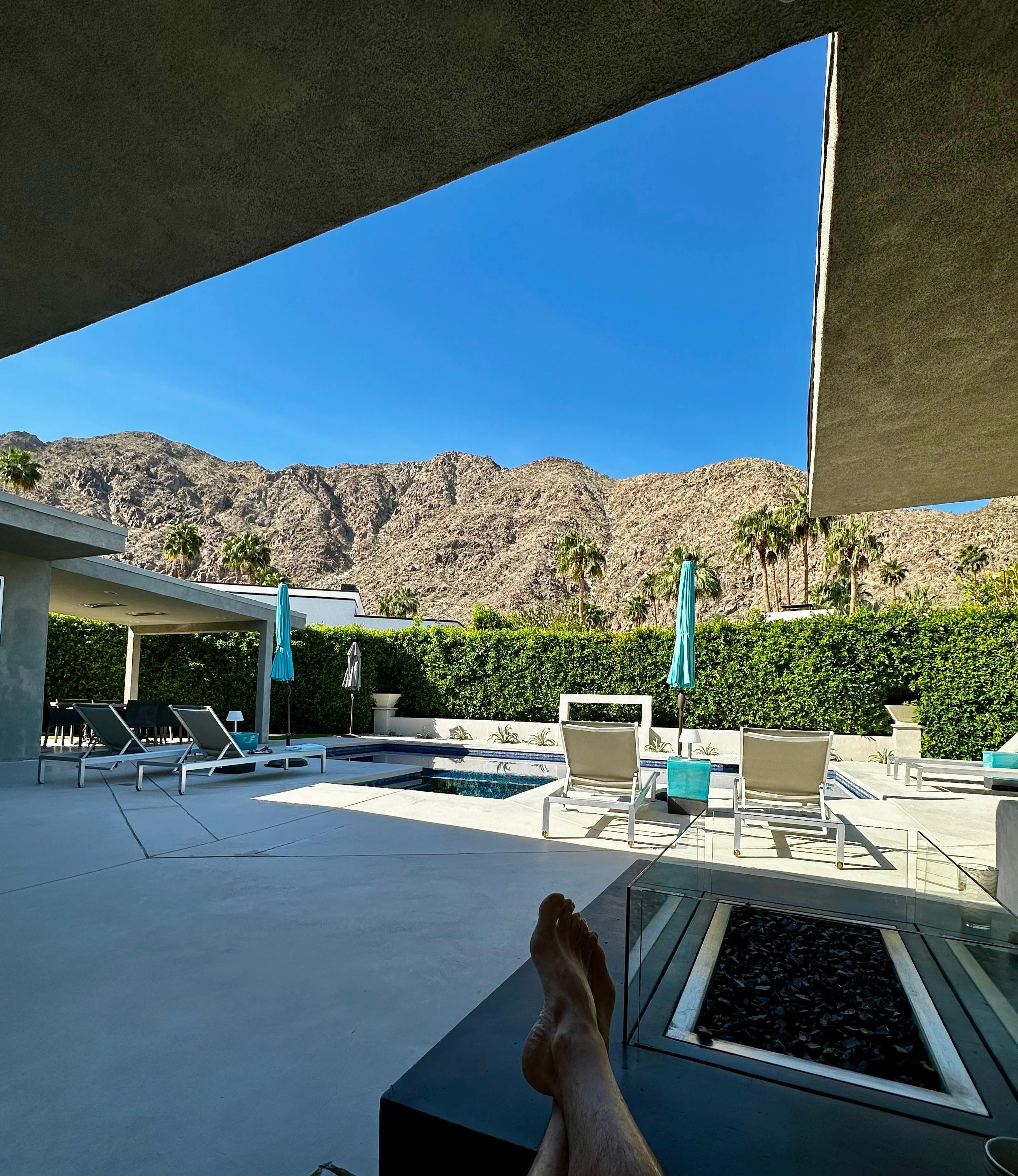 The open design 3 bedroom, 3.5 bathroom (a 4th bedroom has a pullout queen bed taht also serves as an office with built in desk) house features large slide away glass doors allowing for indoor/outdoor entertaining, while taking in the impressive mountain views .The backyard features a gorgeous all tile salt water pool, outdoor dining with overhead heaters, a gas bbq and lounge area with fire pit. Enjoy the quiet comfort of this private, secure and spacious family home in the middle of the Coachella valley. The location is close to wonderful shops and restaurants, landmark attractions, the best golf courses and amazing hikes.
