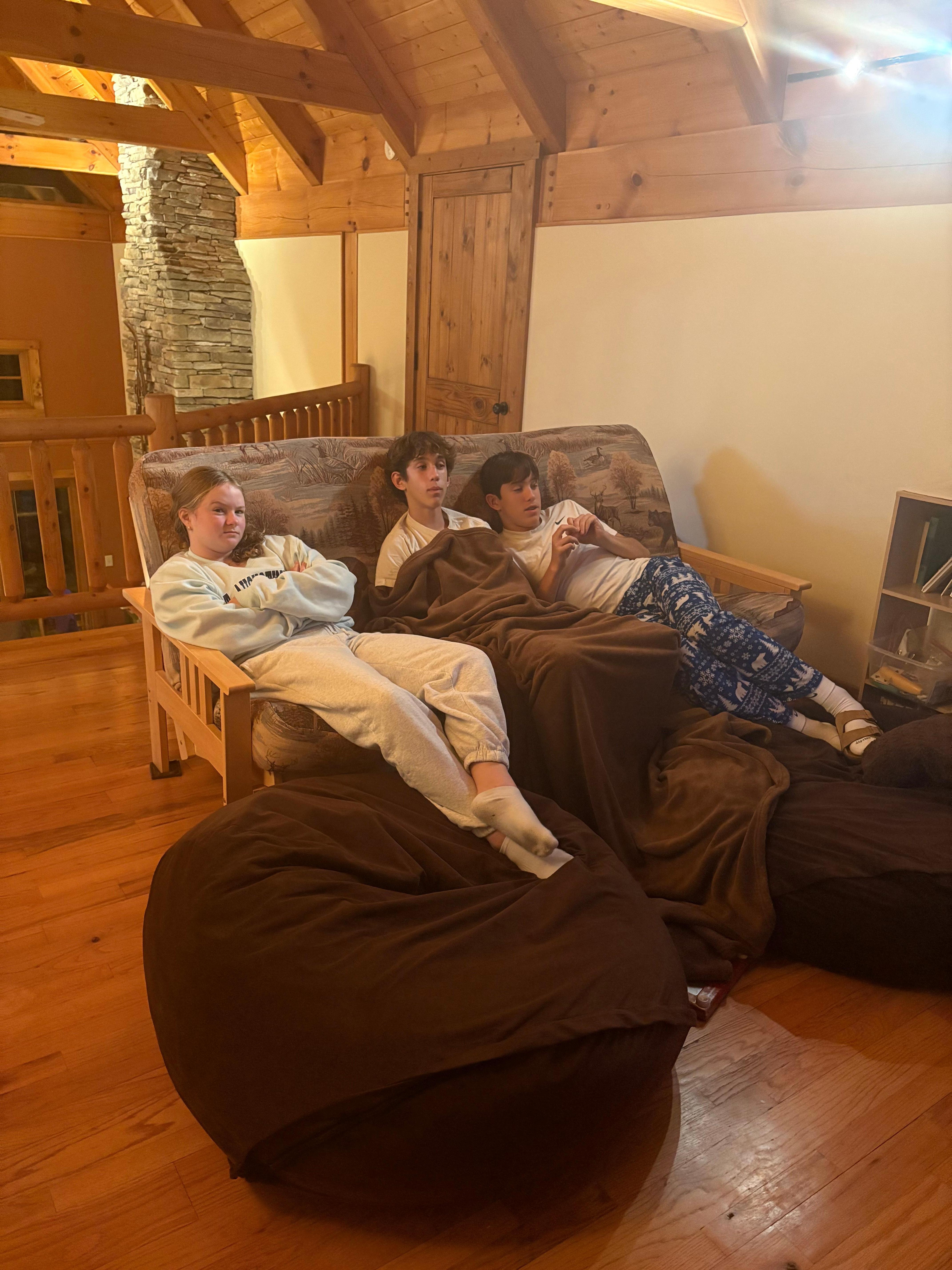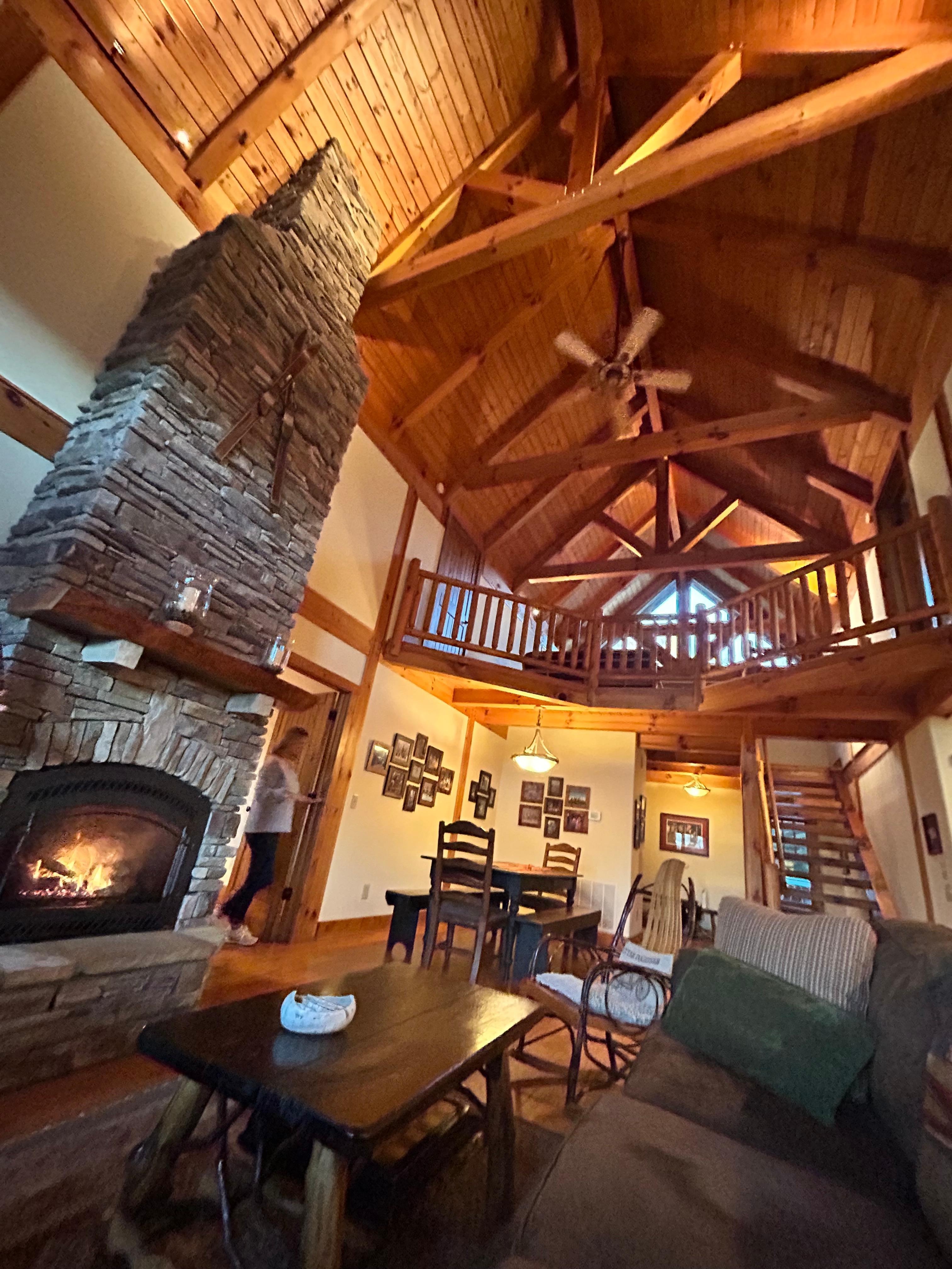 When you look up to the vaulted ceiling, the log railing will invite you to check out the loft playroom. Here the kids will love the TV (Netflix and xBox included) and play space next to the bunk room furnished with 4 twin beds.