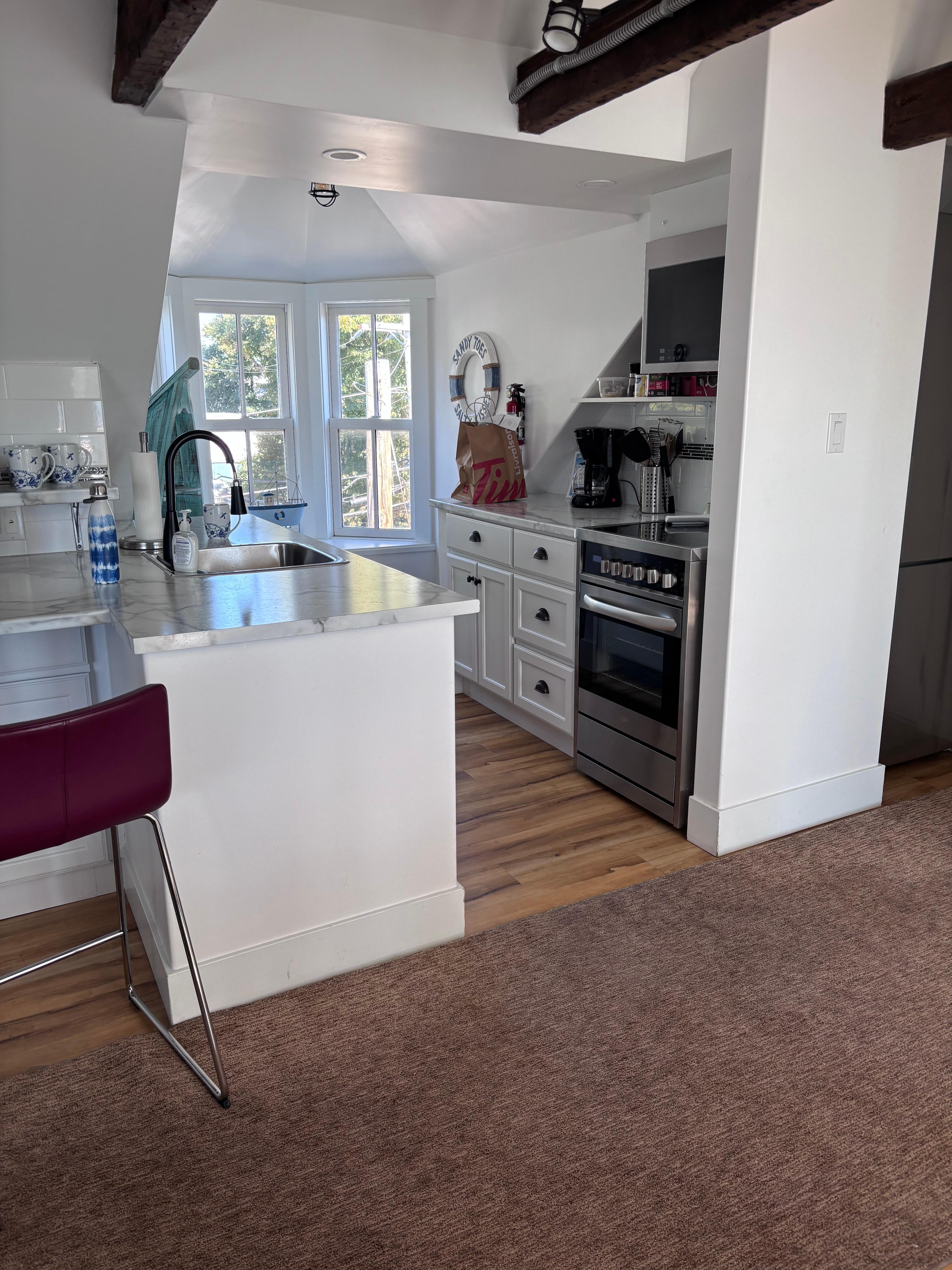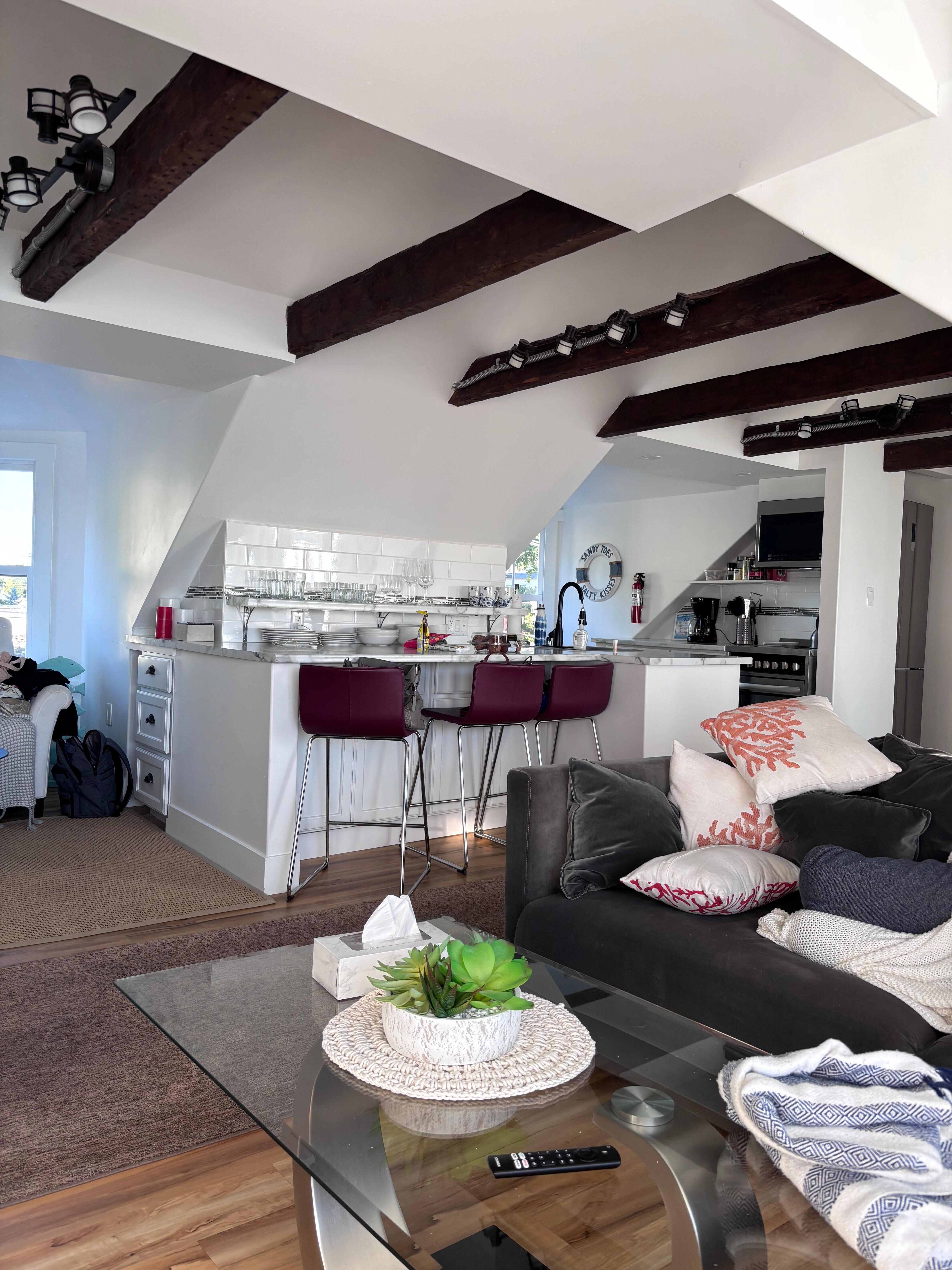 The Penthouse Loft is an open concept space with the original exposed beams of this heritage property. The "Galley" kitchen is fully stocked with all modern appliances and amenities. Sit back in the large bright living space and enjoy the comfort of this amazing loft condo. The bedroom has a comfy king size bed and plenty of closet and storage space. The bathroom has a large tiled shower and vanity. The Loft if fully air conditioned for your comfort and enjoyment. There is a wet bar with bar stools for your enjoyment. The large waterfront balcony is breathtaking and will be a tempting part of your time spent in this beautiful loft condo.