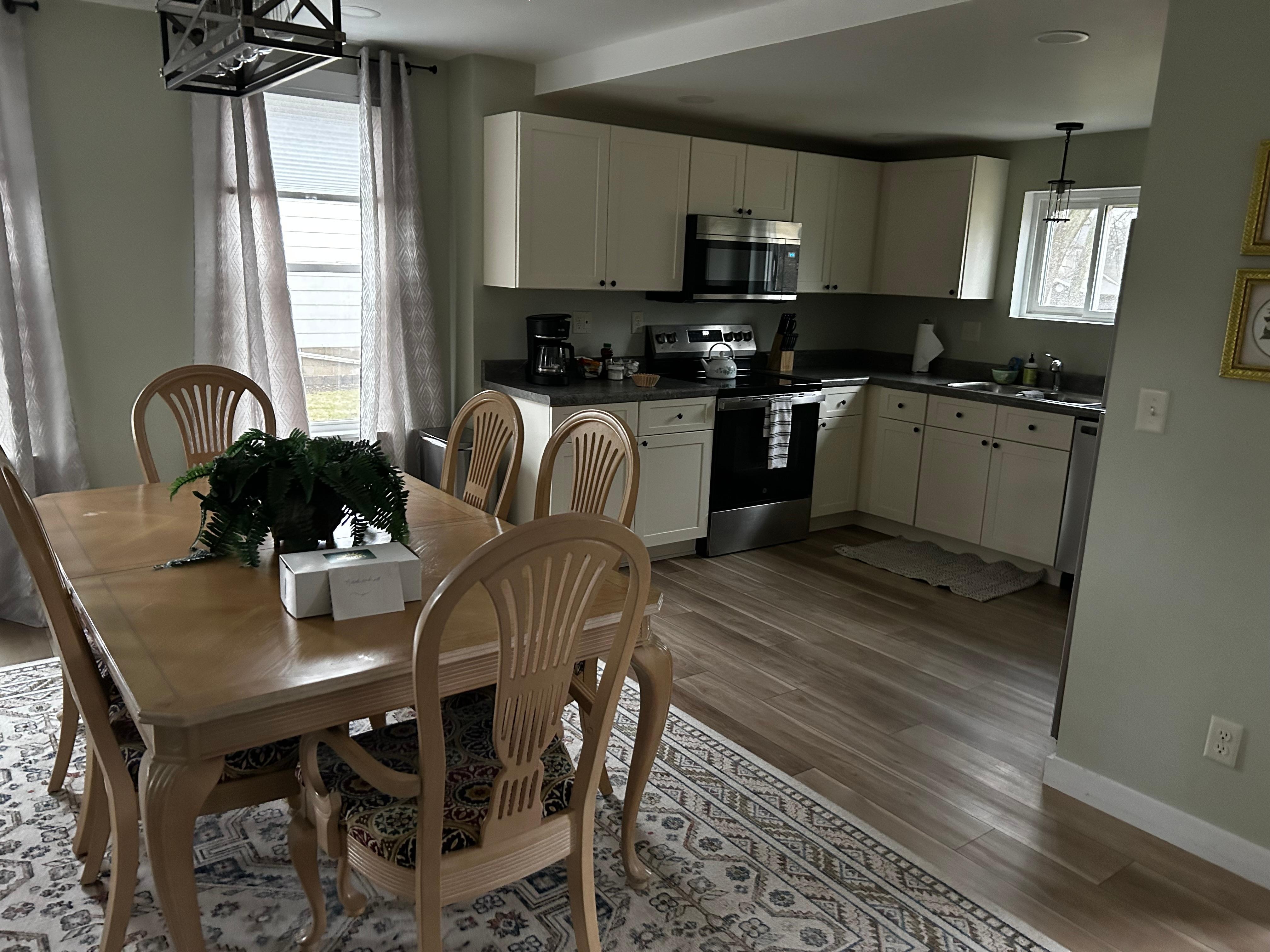 Unwind in this ideal Galesburg retreat for rest and relaxation. This newly remodeled 2 bedroom home is located in a quiet, safe neighborhood. It is perfect for travelers seeking a comfortable, peaceful space close to restaurants, coffee shops and retail stores. This home has been thoughtfully updated from top to bottom featuring a modern open layout that flows seamlessly from the bright living room to the spacious fully-equipped kitchen. The two bedrooms feature 1 queen bed and 1 full bed, perfect for a nice night's sleep with soft plush bedding and ample closet space. With amenities like WiFi, a hair dryer, and a washing machine, guests can enjoy a phenomenal stay. The 2 bathrooms are equipped with a shower and a hair dryer for added convenience. Our place will help you feel at home while you're traveling in Galesburg.