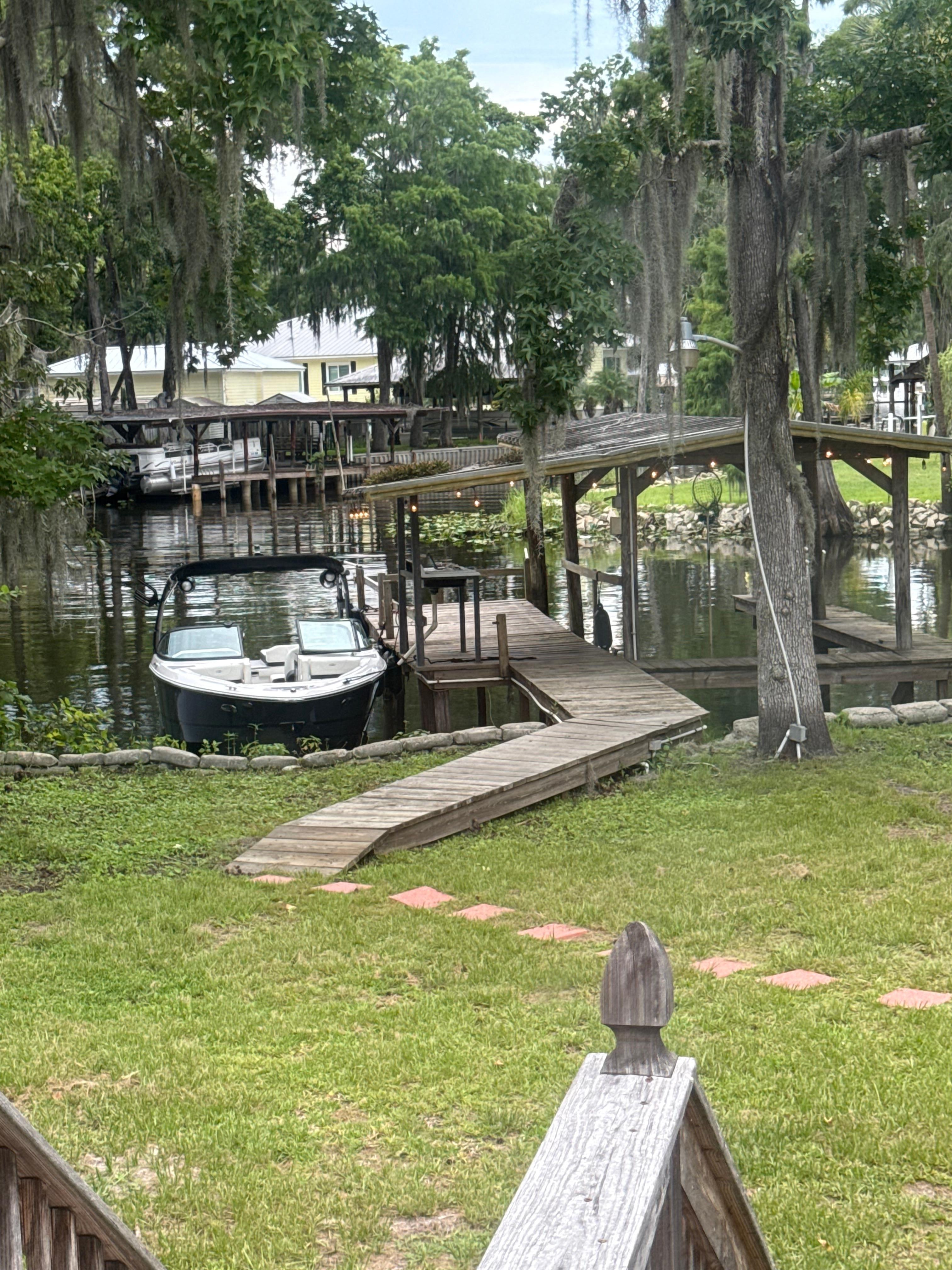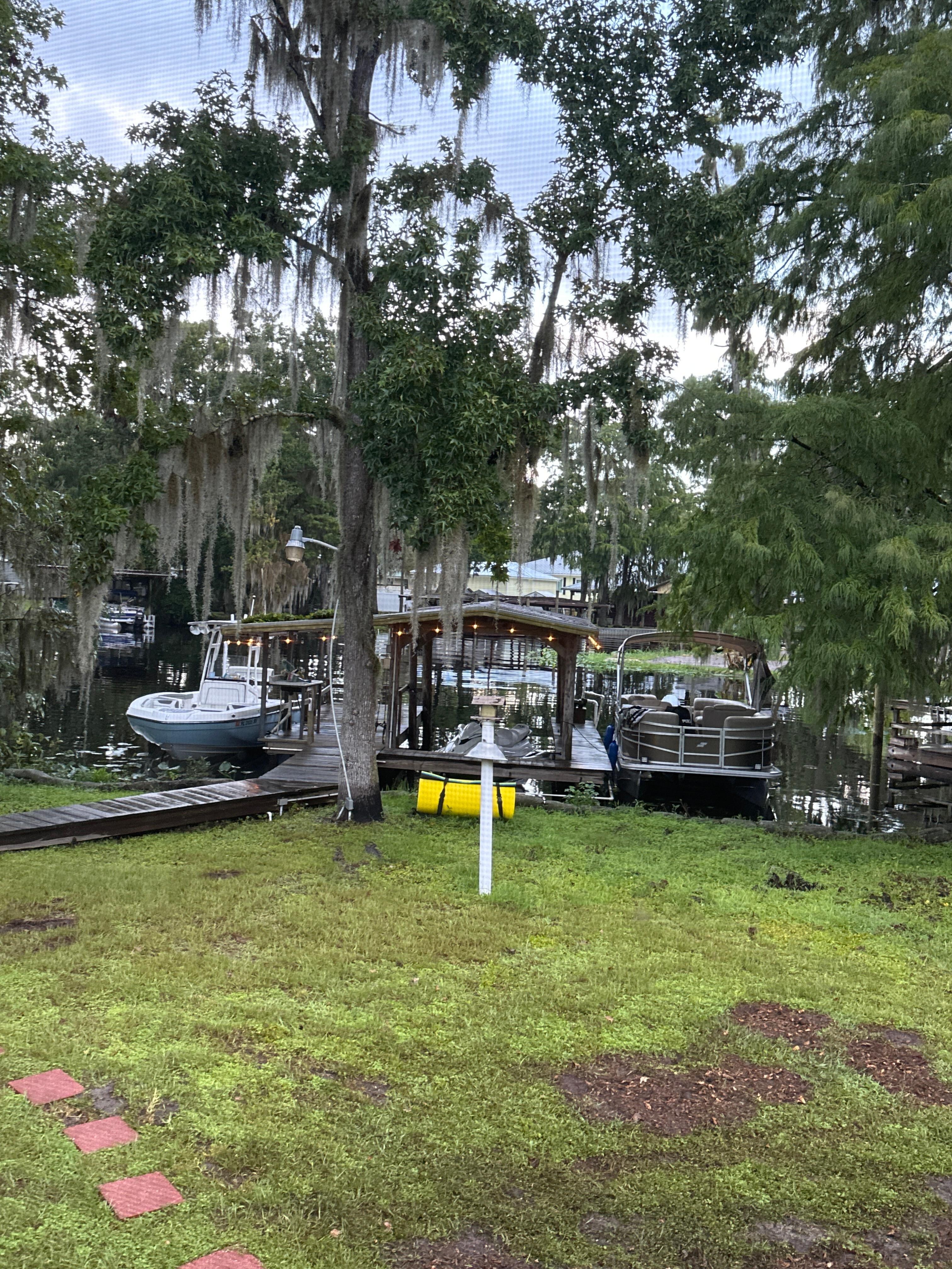 Enjoy your morning coffee and a breathtaking sunrise or favorite beverage under a romantic moonrise in the oversized screened back deck. Our place is equipped for both long or short stays to make your stay one to remember. Near many of Central Florida’s best springs by boat or car; Silver Glen Springs, Juniper Springs, Salt Springs and Alexander Springs. With the St. John’s river at your back door and Lake George just minutes away, enjoy fishing for speck or bass, kayaking, jet skiing, canoeing, or a leisure day on the boat. There are several great restaurants, pizza delivery, grocery stores and Dollar General grocery store nearby. About 30 minutes from Barberville Speedway and Downtown Deland, and an hour from Daytona Beach.Enjoy the very best nature has to offer in the Ocala National Forest..