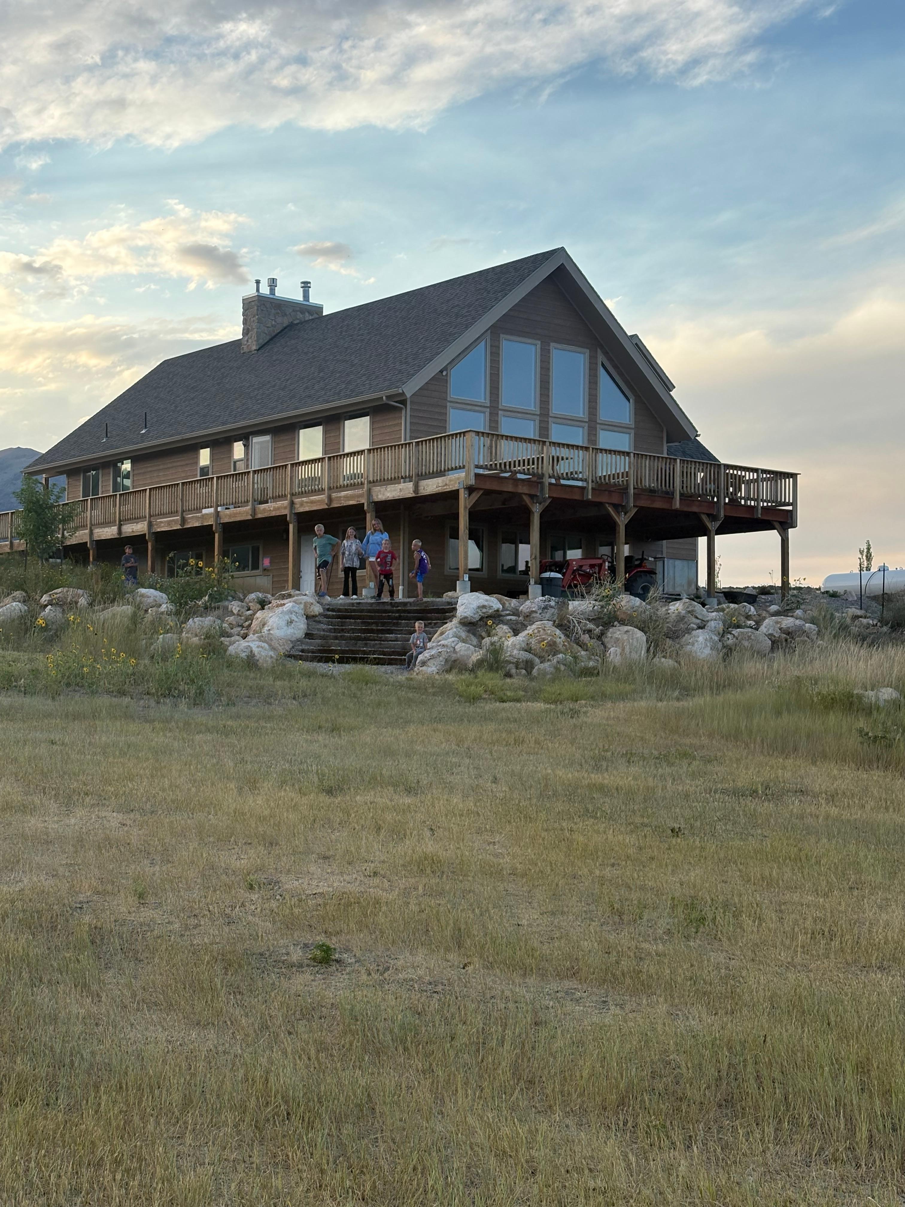 Your family gathering place! This lodge boasts 5 marvelous bedrooms, each with their own full bathroom and a huge loft. Sleeping accommodations include 2 king beds, 3 queen beds, 2 double beds, 2 twin beds, 3 sofa beds, 1 cot. Enjoy the convenience of WiFi, heating, AC, and a washer and dryer. You will love the spacious living and dining spaces separated by a beautiful see-through fireplace and chimney. The vaulted ceilings give it an open feeling with tons of light from the large picture windows. You will enjoy eating outside or sitting around the gas fire pit on the deck. There is lots of space on the lower level for ping pong, TV, and other games and activities. Outside enjoy lots of open space on a 5 acre spread. There is a large fire bowl for roasting hot dogs and s’mores, a ground level trampoline, and a year-round stream! This property was designed and built for family gatherings. We want to share it and hope you will enjoy it as much as we do!