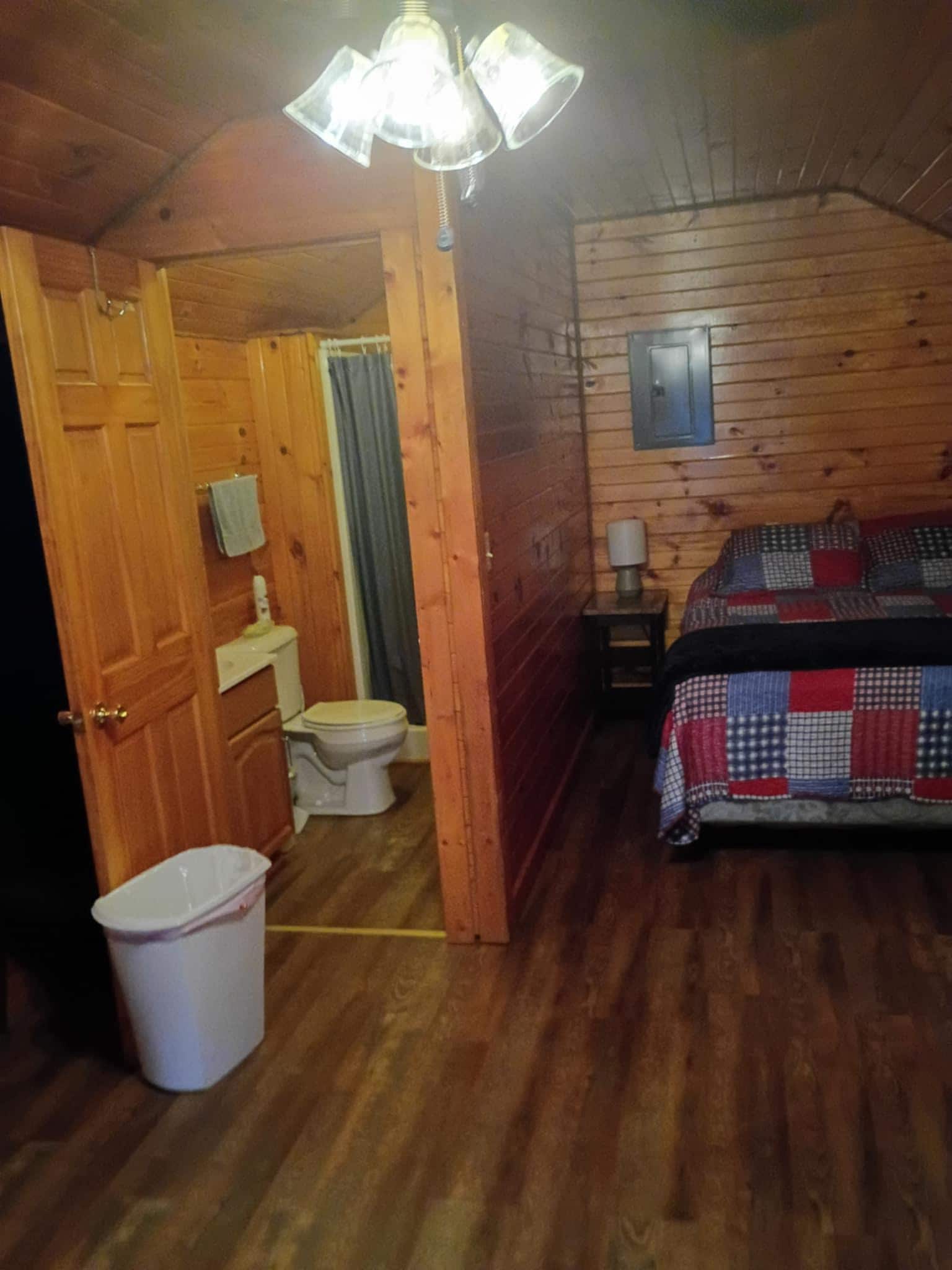 Unwind in Beattyville at this marvelous cabin. This cozy retreat features 1 bedroom with a comfortable queen bed, a bathroom with a refreshing shower, and essential amenities like heating and AC. Nestled in a tranquil setting, guests can relax and recharge in this tremendous space. There is a small fire pit, a park type charcoal grill, picnic table and lawn chairs. We provide the wood but you will need to bring charcoal. There is not a cooking stove but a microwave and a small dorm size refrigerator for your use.