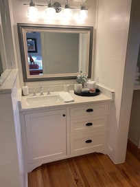 This beautifully renovated 3-bedroom, 3-bathroom home is a rare gem in Fredericksburg. Each bedroom features a luxurious king-size bed and a private en suite bathroom—ideal for families, couples, or friends traveling together. The cottage is thoughtfully adorned with antique furnishings and cozy touches that exude warmth and character.