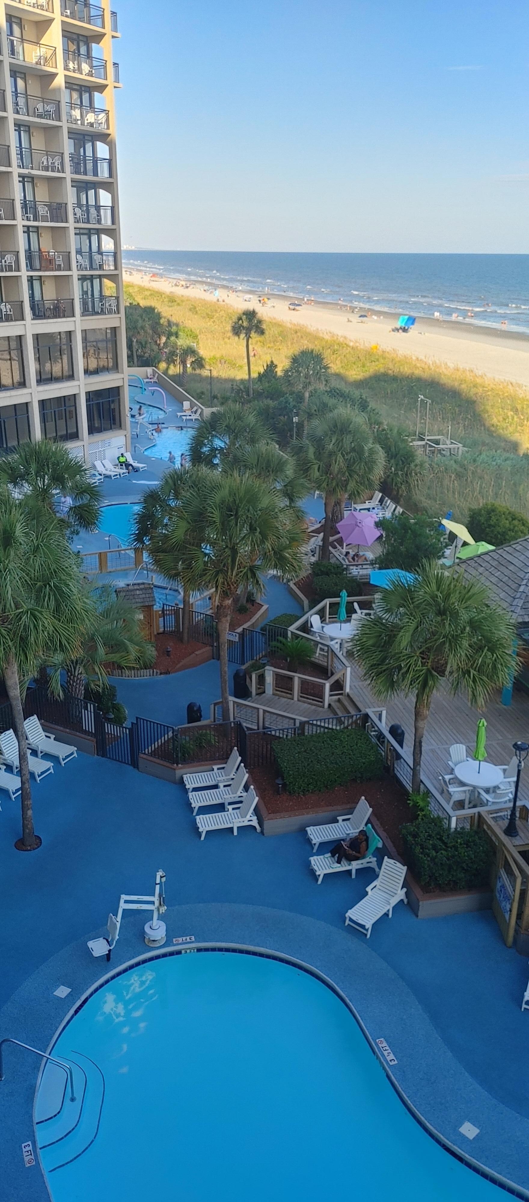 Step onto your private direct oceanfront balcony overlooking the pools, gorgeous North Myrtle Beach coastline, and take in the stunning ocean views.