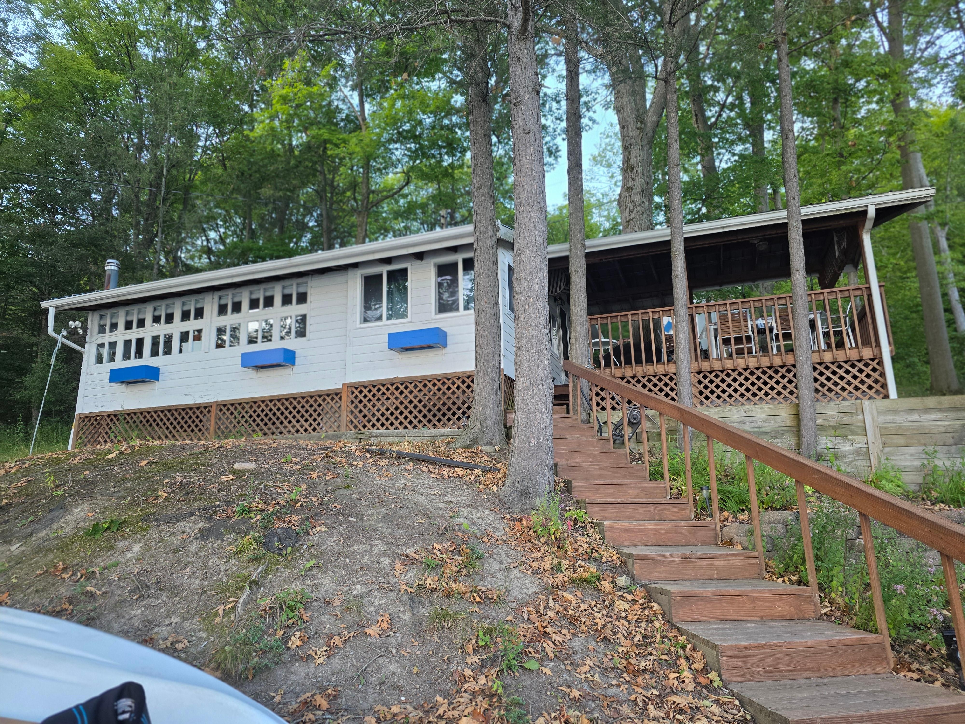 This cute cottage delivers a quiet Lake getaway with direct water access and spectacular evening sunsets. The property boasts a covered deck that overlooks the water for eating and another large lower deck with ample seating overlooking the water. There is also a beach with a dock for water access to help with fishing and water activities. This is the perfect place for a beautiful vacation, swimming, paddle boarding, fishing or just relaxing on the beach or deck.
