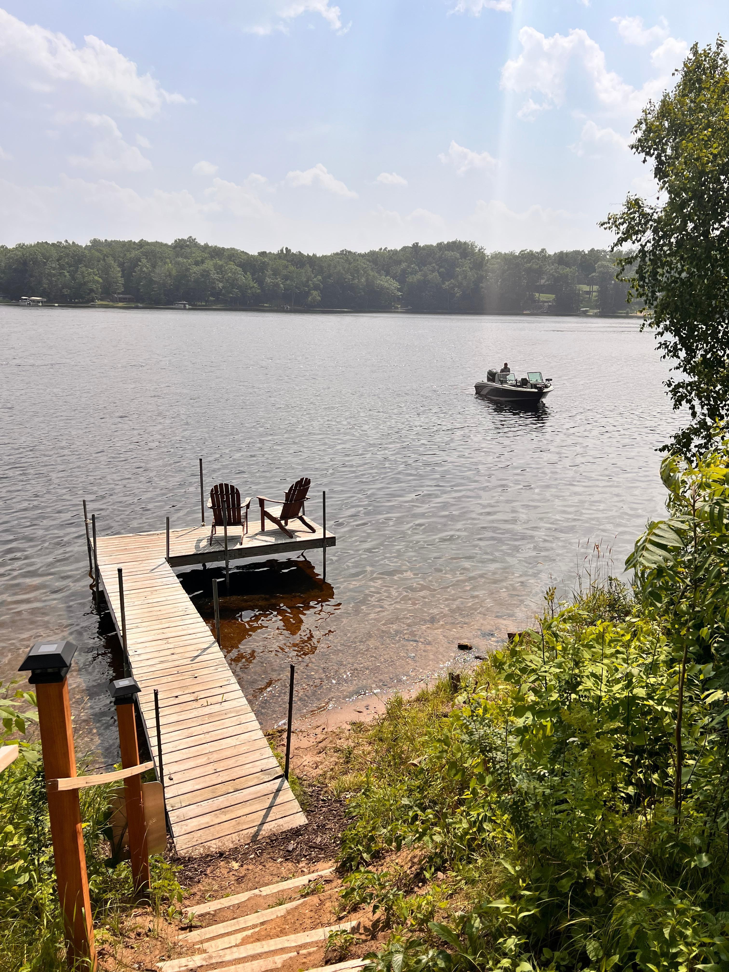 Hosts were very responsive and friendly and great to work with! We loved the house, especially the amazing kitchen and the screen porch overlooking the lake, with enough seating for all of us! (8) Our family enjoyed the lake so much, especially the kayaks and paddleboard provided! We had fun using the volleyball/badminton court, and the hot tub, going to the little public beach that was just past the house, as well as wading and floating around right at the property's dock with a nice sandy bottom and not too much seaweed. We loved the peacefulness of the lake & lovely views, and nightly s'mores around the firepit. We appreciated the guide to groceries, restaurants, coffee shops, etc. that the hosts had in a binder. The downstairs bedroom got quite hot, despite air conditioning (the weather was very hot and humid during our stay), and it appeared there was no vent in there. We didn't want to open the windows, with air conditioning on for the rest of the house, so that made for some uncomfortable nights for our daughter and son in law and grandson in that room. The King size bed was amazing (& gorgeous room), but my husband and I and teen daughter found the beds in the room with the queen and bunk beds quite hard. A matter of preference, but we didn't sleep well in them. There were issues with the drip coffee makers not working, but there was a working Keurig single-serve coffee option, and we notified the hosts and they were going to address it. Overall enjoyed our stay!