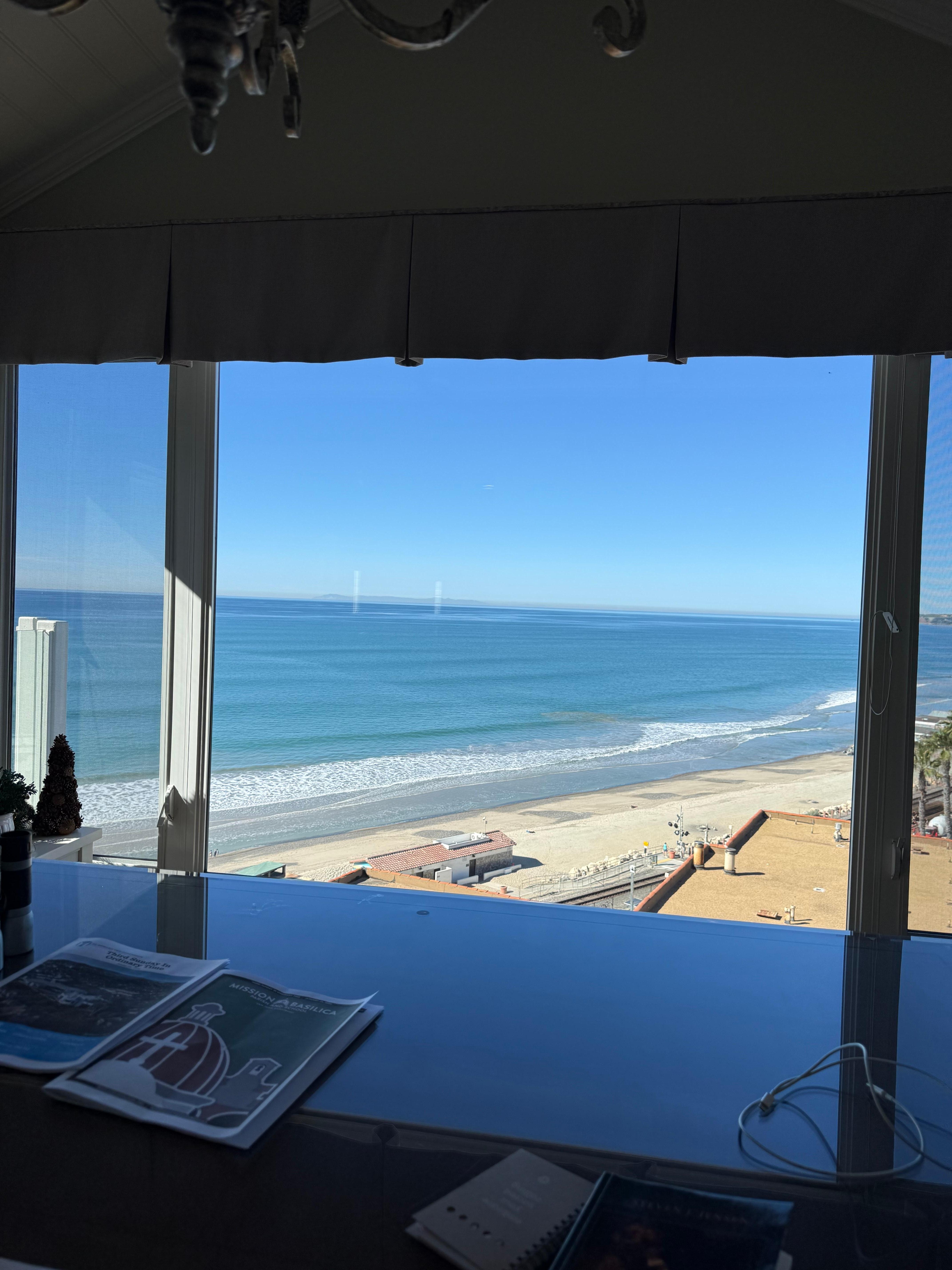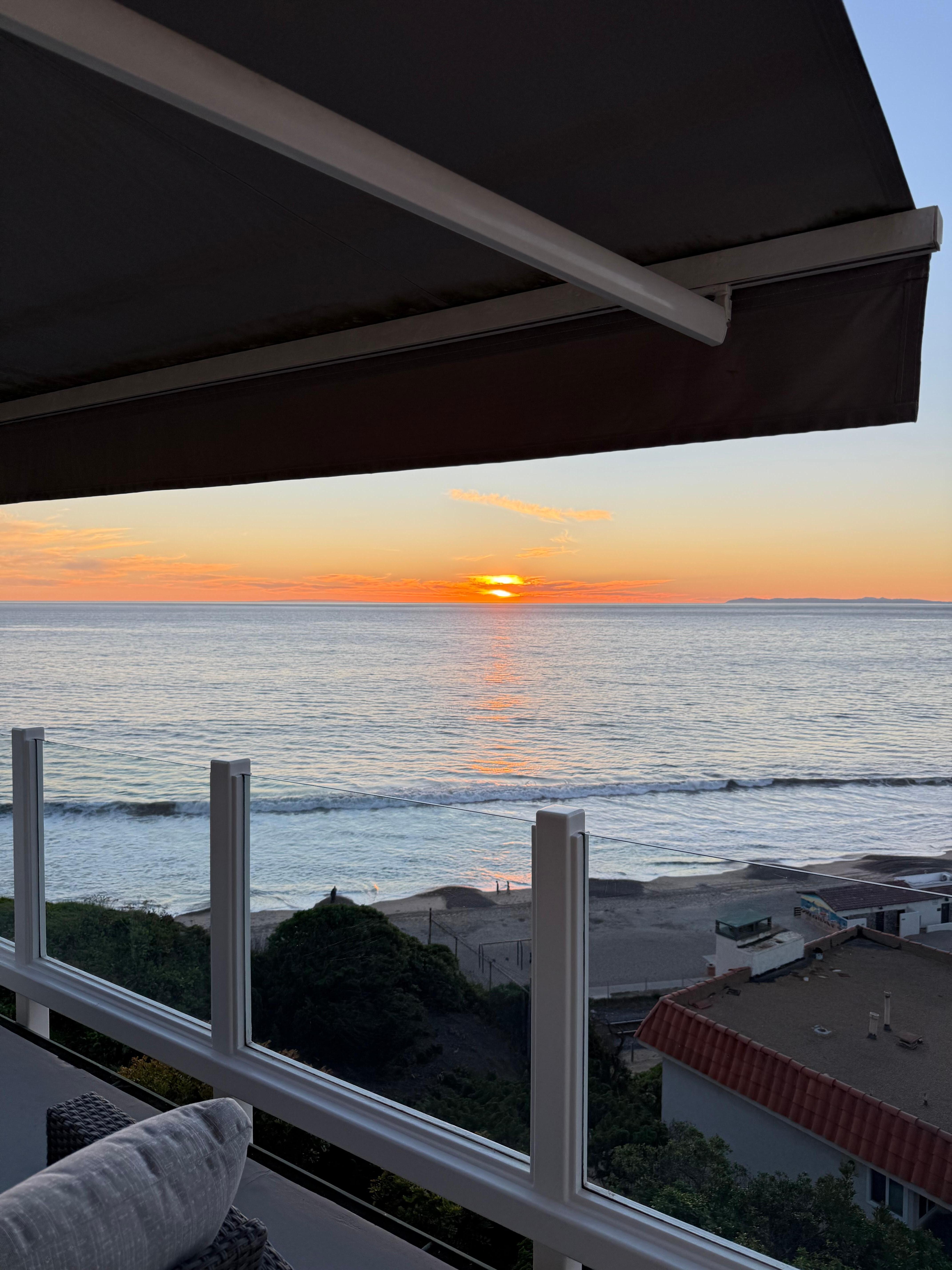 A Cape Cod columned entry and a beveled glass Dutch-door opens to a sophisticated living space with hand distressed walnut plank floors, bead board ceilings, exposed beams, and wainscoting. Over-sized dual glazed picture windows frame the unrestrained beach, whitewater, coastline, Catalina Island and sunset views. Designer stone, Verde Argento granite and imported tile surfaces grace this luxurious villa's interior. A state-of-the-art kitchen features a Sub-Zero refrigerator, six-burner Viking range, and European cabinetry. The living room boasts a prominent fireplace with a raised granite hearth and substantial wood mantle. An expansive view deck located off the main living area links the indoors with the outdoors. Additional amenities include a large gas barbecue, high speed internet and multi-media system. Direct garage access and on-site guest parking is available. The master bedroom is on the lower level with a french door leading to a large deck with 2 rocking chairs waiting for you to enjoy the view. The ensuite includes a jetted tub. The large second bedroom has 2 twin beds and a large bathroom with walk-in closet.