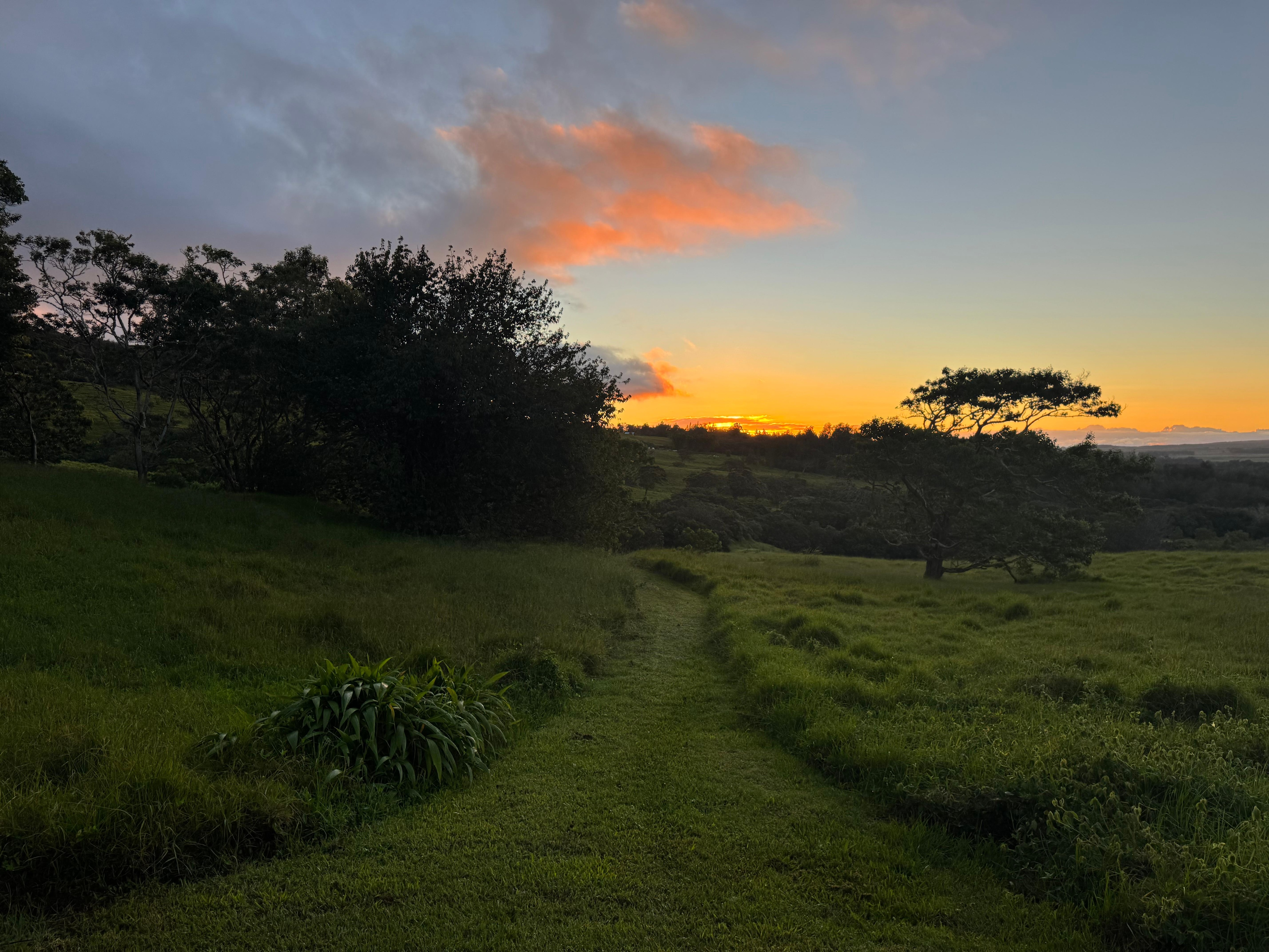 Aloha, we'd like to share with you the story of our property, Pu'u Menehune, which was, until recently, bull pasture for Parker Ranch. Our pristine 13-acre parcel, located in the heart of Paniola (Hawaiian cowboy) country, is blessed with a meandering stream, abundant waterfalls, and unsurpassed views of sacred Mauna Kea ('White Mountain') volcano.