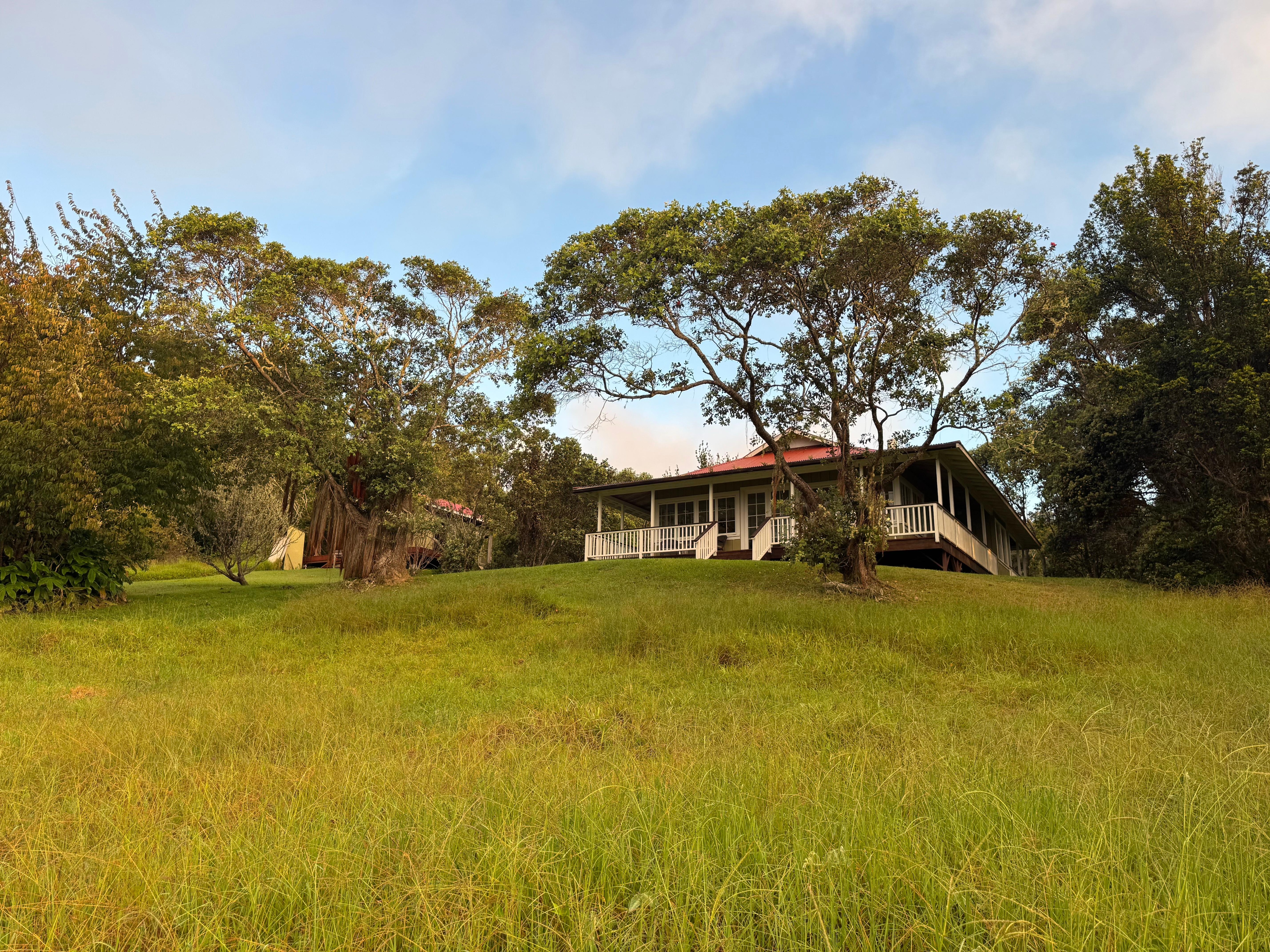 On a clear, moonlit night, you will be treated to unsurpassed views of Mauna Kea. Feel free to do a 'moon walk' under the star-filled skies. Greet the morning with your fresh cup of Kona coffee and watch the sunrise as you gaze across Parker Ranch's vast pastures and grazing cattle. Watch as the sun dances across two beautiful pu'u (cinder cones) fronting the property graced with frisky horses and Jurassic Park-like scenery surrounding the bungalow-house.