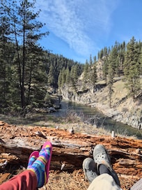 Your cozy space will keep you and your companion comfortable after a full day of fun on the hot spring ranch or adventuring nearby. The expansive and private property offers all sorts of outdoor activities for you and your companion to exclusively enjoy. In addition to the private hot spring pool take advantage of: badminton, horseshoes, mountain disc golf, croquet, photography, bird watching, hiking, biking, river activities, star gazing & a seasonal Fairy Tale Garden with private soaker tub. Tours are highly recommended to help you take full advantage of the ranch. Initial guided river access is required, after which you are free to enjoy the private beach and source at your leisure. You must respect off-limits areas; if you're unsure, please ask. Our horse Legs is our official mascot and he loves the treats we provide. One and a half hours from both Stanley and McCall, we are the perfect jumping point for all things Idaho adventure.
