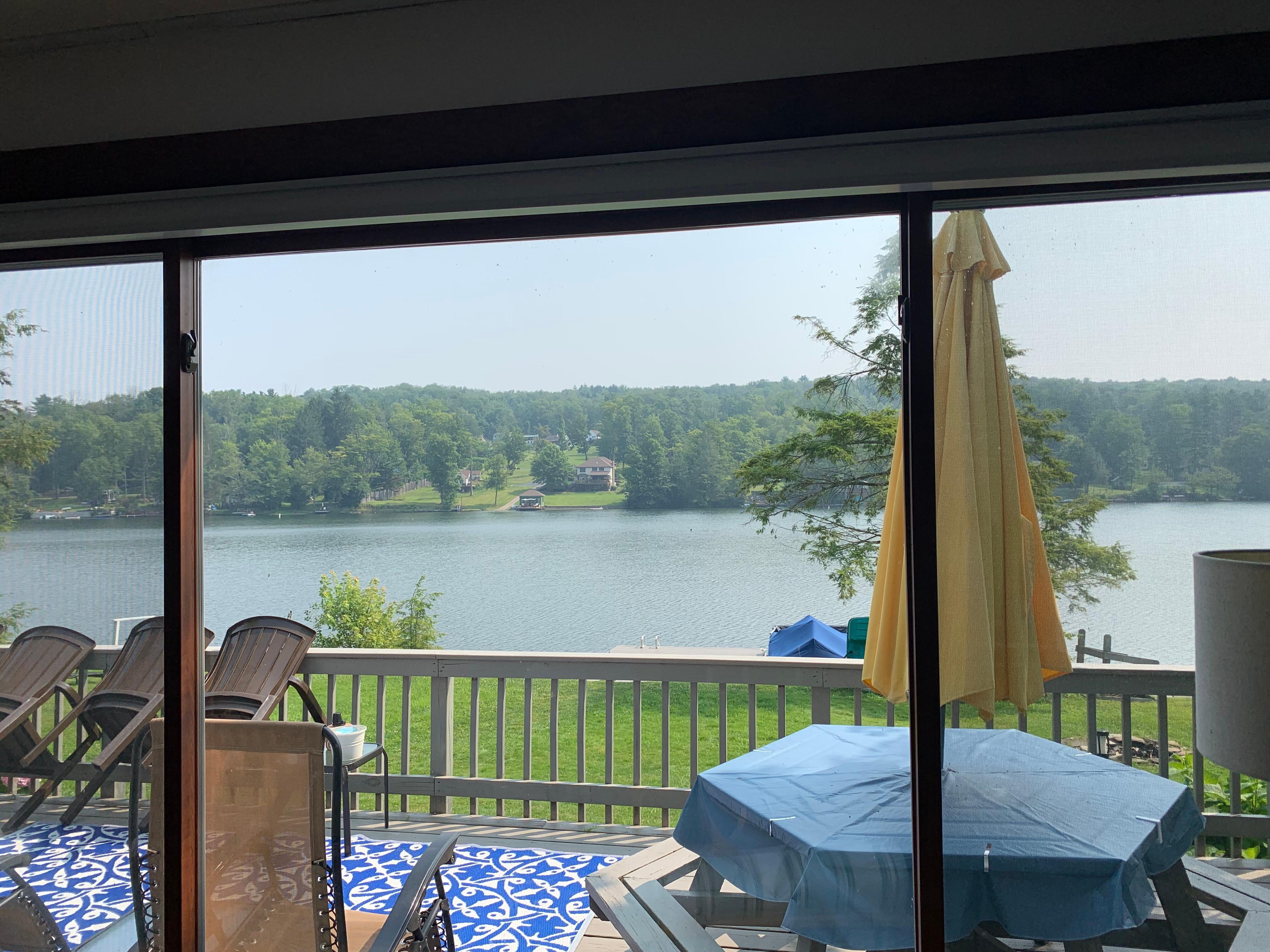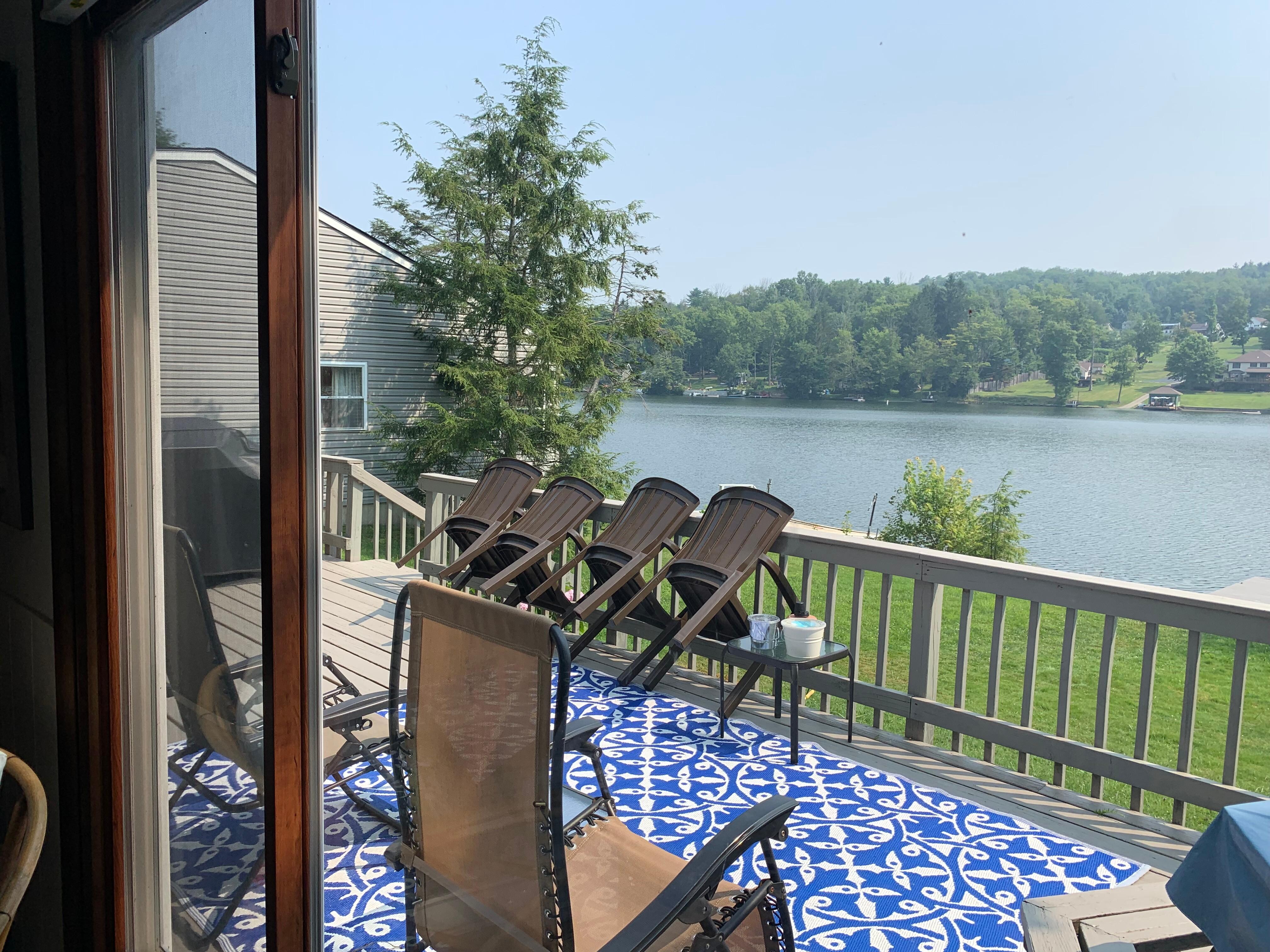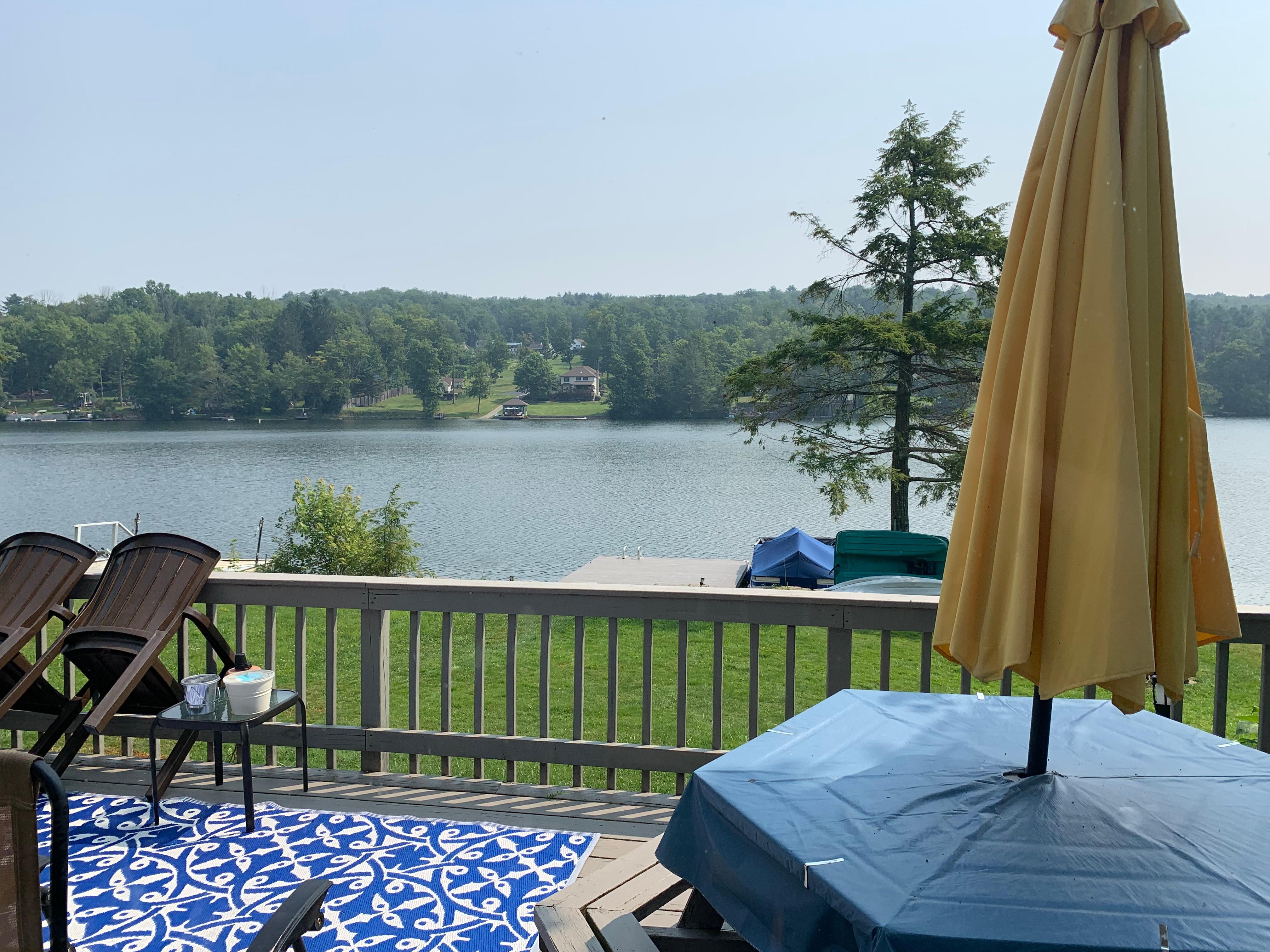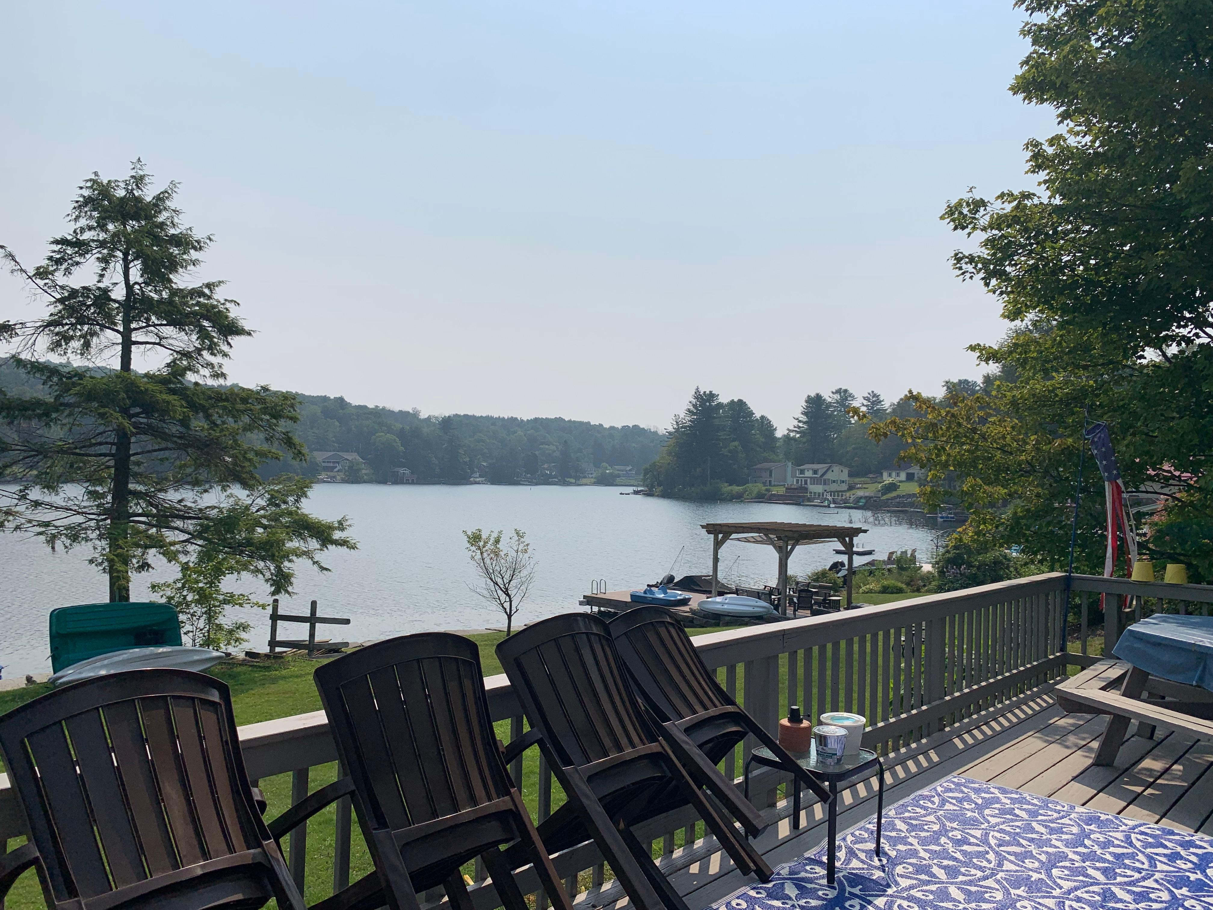 Lovely Laurel Lake setting with family cottage. Directly on the water with great views, perfect for a family vacation.