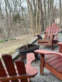 Warm and cozy with a large deck surrounded by woods. The cabin has a wood-burning fireplace and plenty of firewood. A separate massage center is on the property; with male and female massage therapists available upon request. Couples as well as individual massage services are available, including, full body, hot stone, or just a foot massage in a spa chair. Yoga and Reiki energy relaxation therapy are also available on-site per request. All services are for guests only. Arrington Vineyard is a short drive from Fallen Timbers. It has a tasting room and in warmer months, outdoor concerts.
