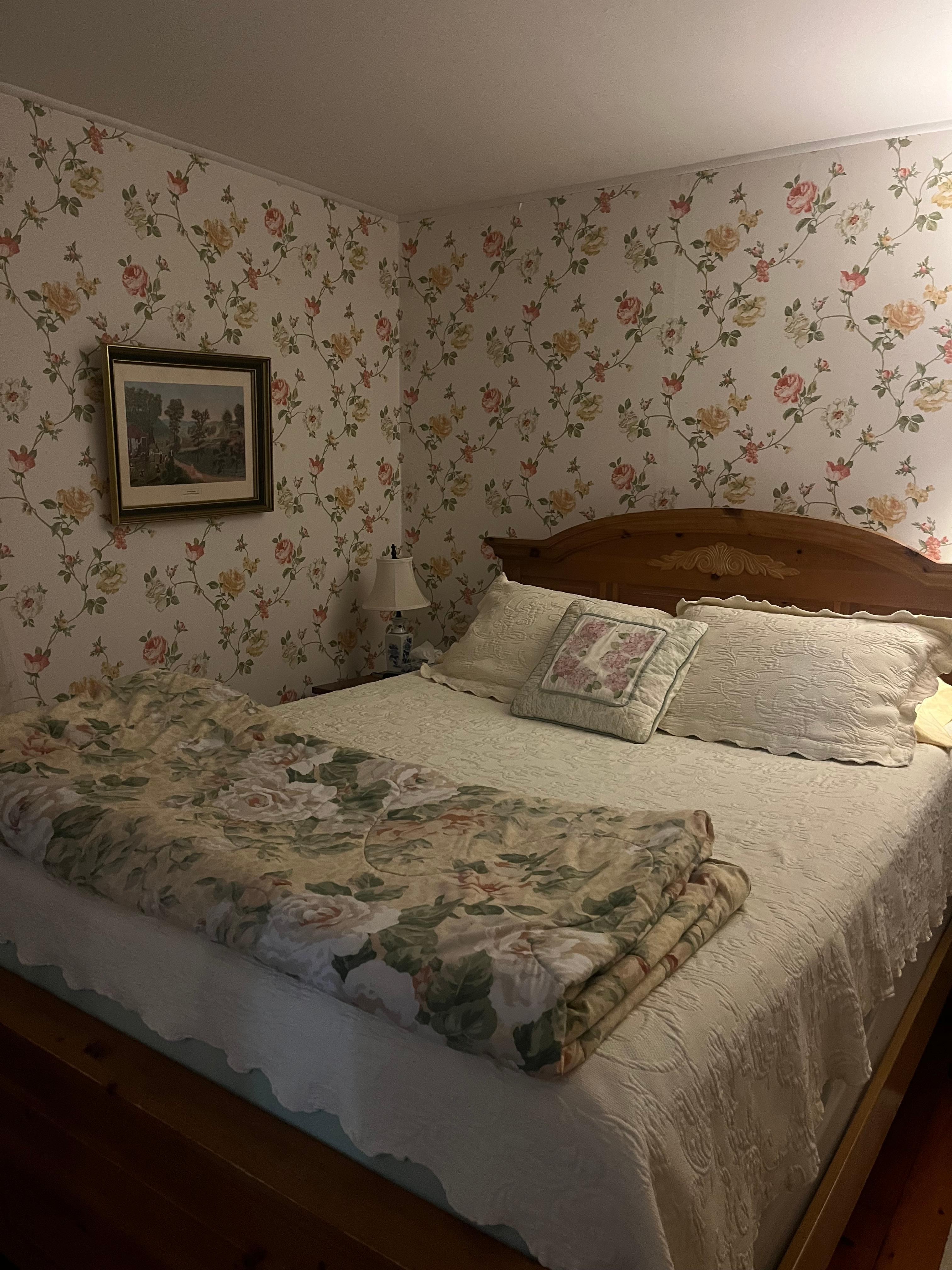 There are two bedrooms connected by a bathroom with washer and dryer. Only one bedroom (with a full size bed) has an air conditioner within it. The other (with a queen bed) and the rest of the cottage are cooled by a free standing air conditioner. There is baseboard heat throughout the cottage and you control the thermostat. We intend this space to be used by two couples or a couple with children. We reserve the right to decline guests with a party larger than the beds can accommodate. Only one floor has been remodeled and is available to guests.
