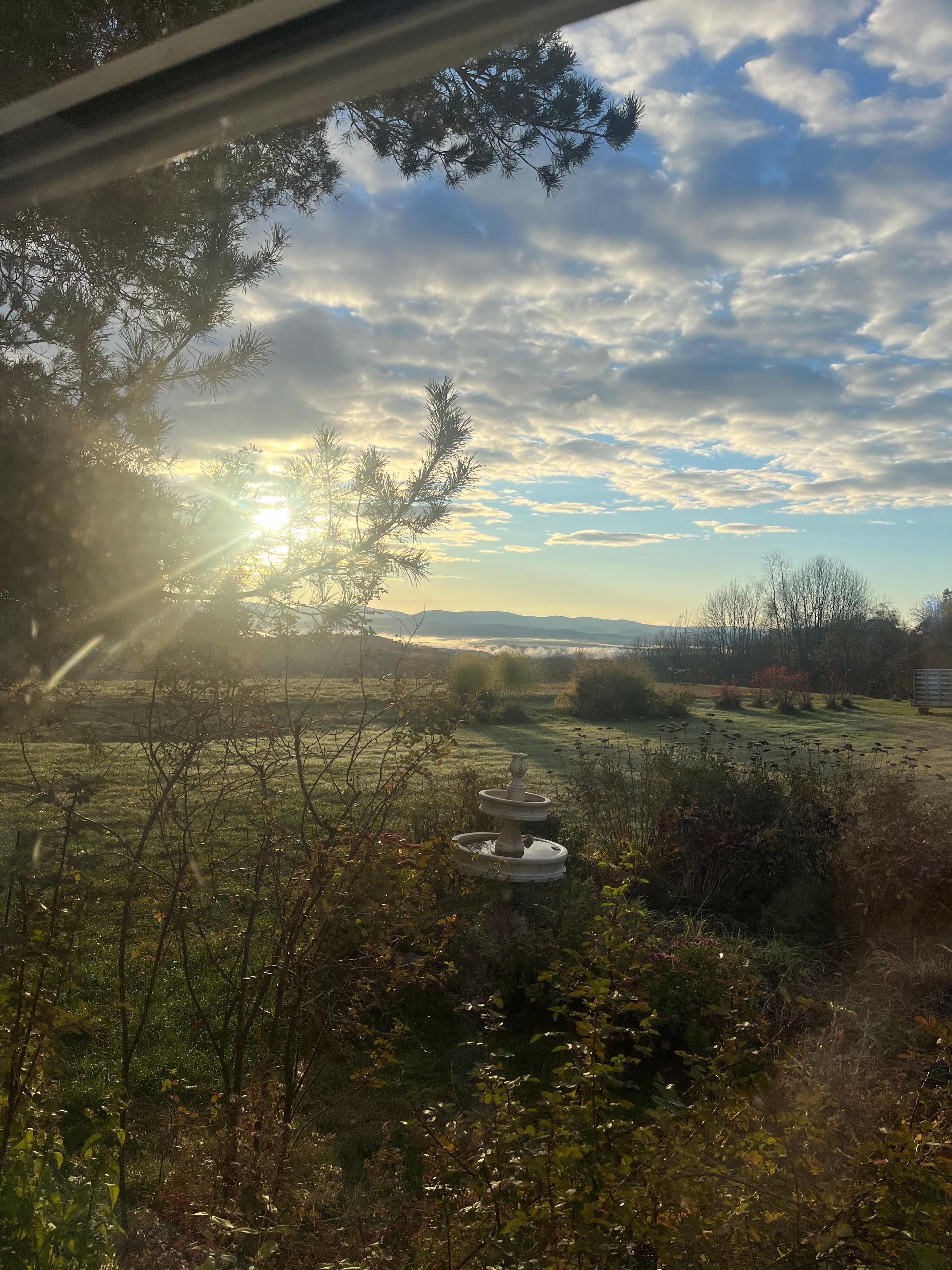 This cozy cottage sits on a well-maintained dirt road overlooking fields, woods, and the NH mountains, As you walk from the drive up a little hill to the house the hills and mountains spread out before you. Sheep often graze the front pasture in summer. Watch a variety of birds from the patio and kitchen windows, nesting in summer and feeding in winter, Wander through the yard to enjoy the flower garden and shrubs, let children play on the swing set, or relax in Adirondack chairs to watch the light change over the hills and mountains. When evening comes, light a blaze in the fire ring. The electric fence around the bird feeder keeps black bears from becoming your guests while the electric fence around the sheep pasture prevents the coyotes from coming for a meal. We are in the country!