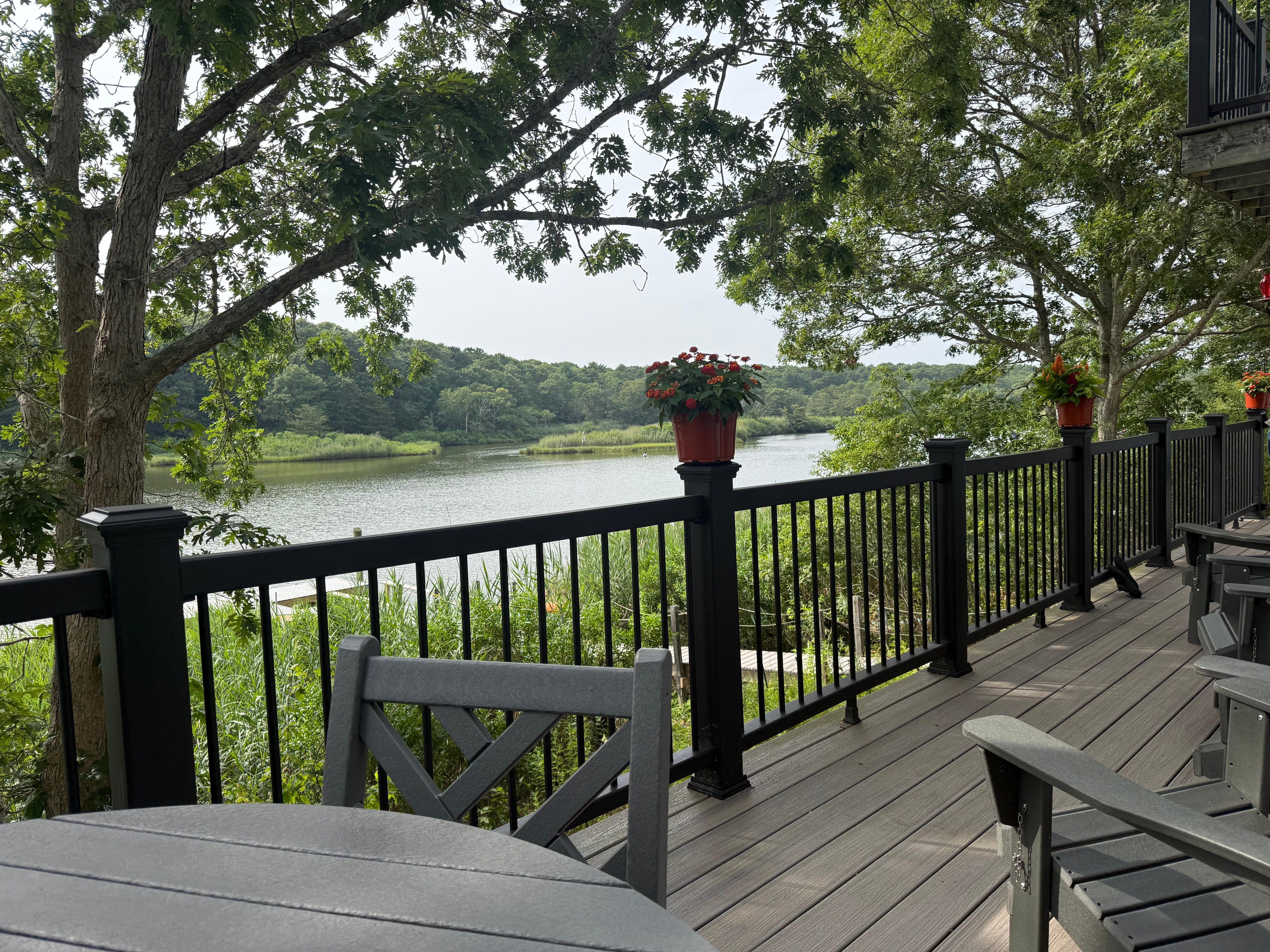 The home features a fully stocked kitchen with brand-new appliances, including a dishwasher, stove, fridge, and microwave. New air-source heat pumps provide AC throughout the 1,749 square feet of space. Other amenities include a washer/dryer, 2.5 bathrooms, an attached one-car garage with three driveway spaces, and smart TVs in each bedroom and the living room. Relax on the wrap-around deck overlooking the water, or enjoy your morning coffee from the master bedroom balcony. You’ll be just a short walk to Dunkin' Donuts, Avellino for dinner, CVS, the East Falmouth Library, and even Smitty’s homemade ice cream.