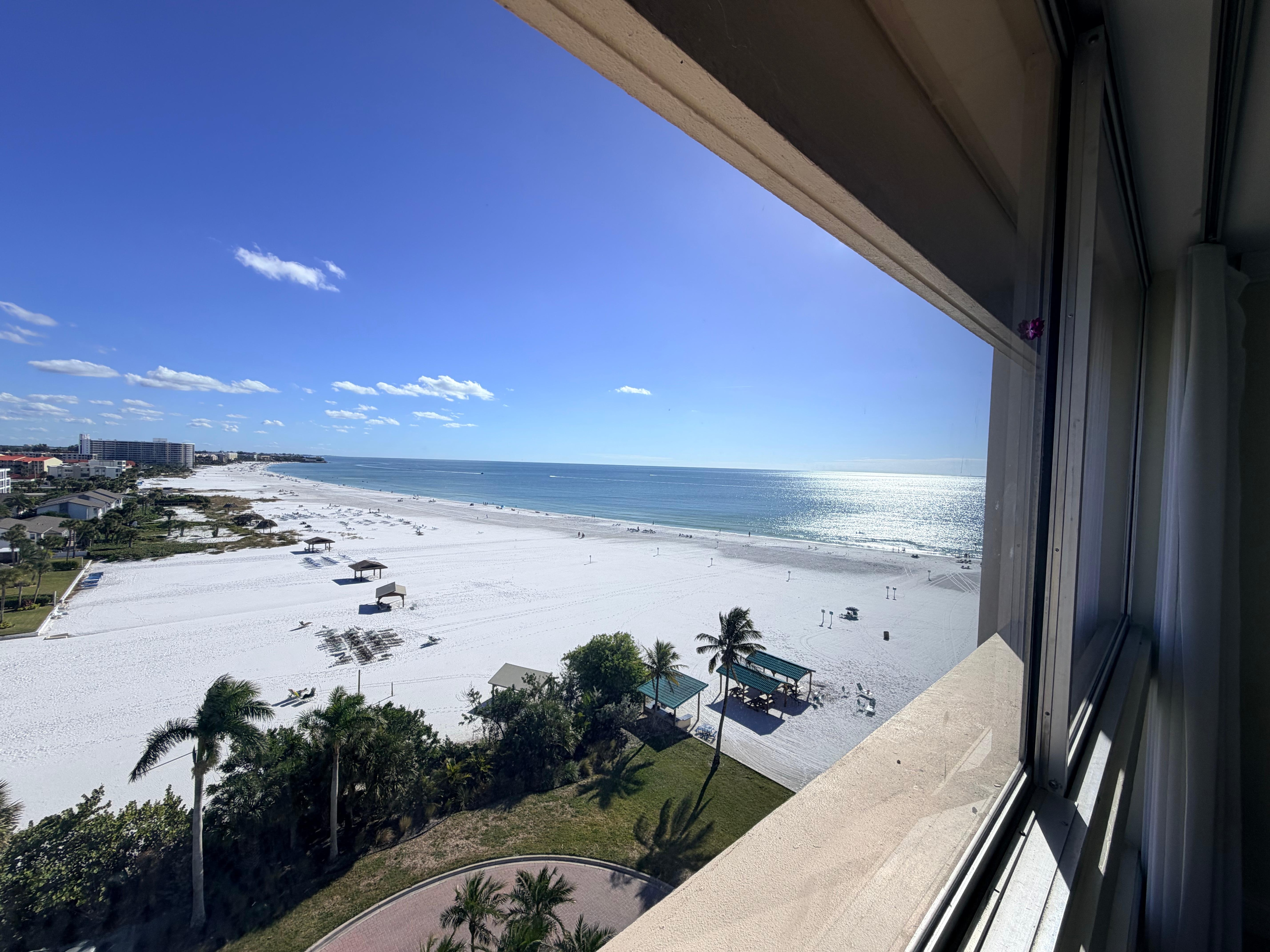 Come stay and relax in this beautiful 2 bedroom, 2 bath condo located in the tower at Palm Bay Club overlooking the world famous white sands of Siesta Key beach. Complex offers two pools (one bayside and one beachside), beach chairs and covered parking for 1 car. Tile flooring with granite countertops and stainless steel appliances. Leather furniture, washer/dryer and smart TVs. WIFI. No pets. No smoking. Sleeps 6 (1 King, 2 Queen). 1-week minimum.