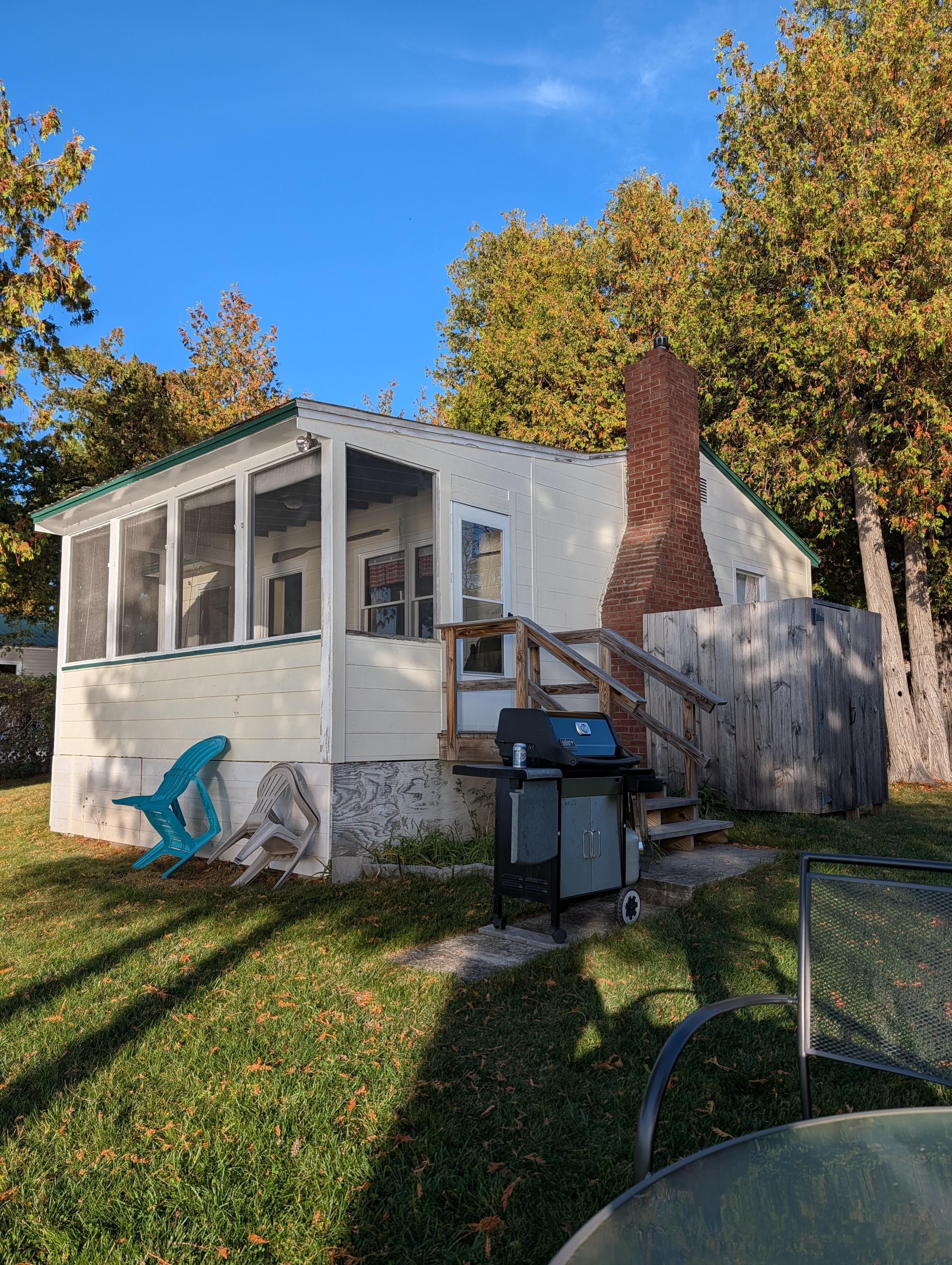 The cottage sleeps four in two bedrooms, one with a queen-size bed, one with a double bed. There is also a double futon in the living room. Nice, comfortable living room and kitchen, bath with stall shower, and a lovely lakeside screened-in porch. There is a gas grill as well as a charcoal grill, Adirondack chairs, town water (not a well or the lake). Bath towels and bed linens supplied. Please bring linens for futon if planning on using. Gas fireplace. Free wireless internet. New in 2021 is our wonderful outside shower.
