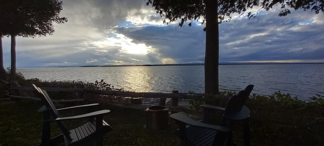 The cottage sits 30 feet from the edge of the lake. Wonderful sunsets