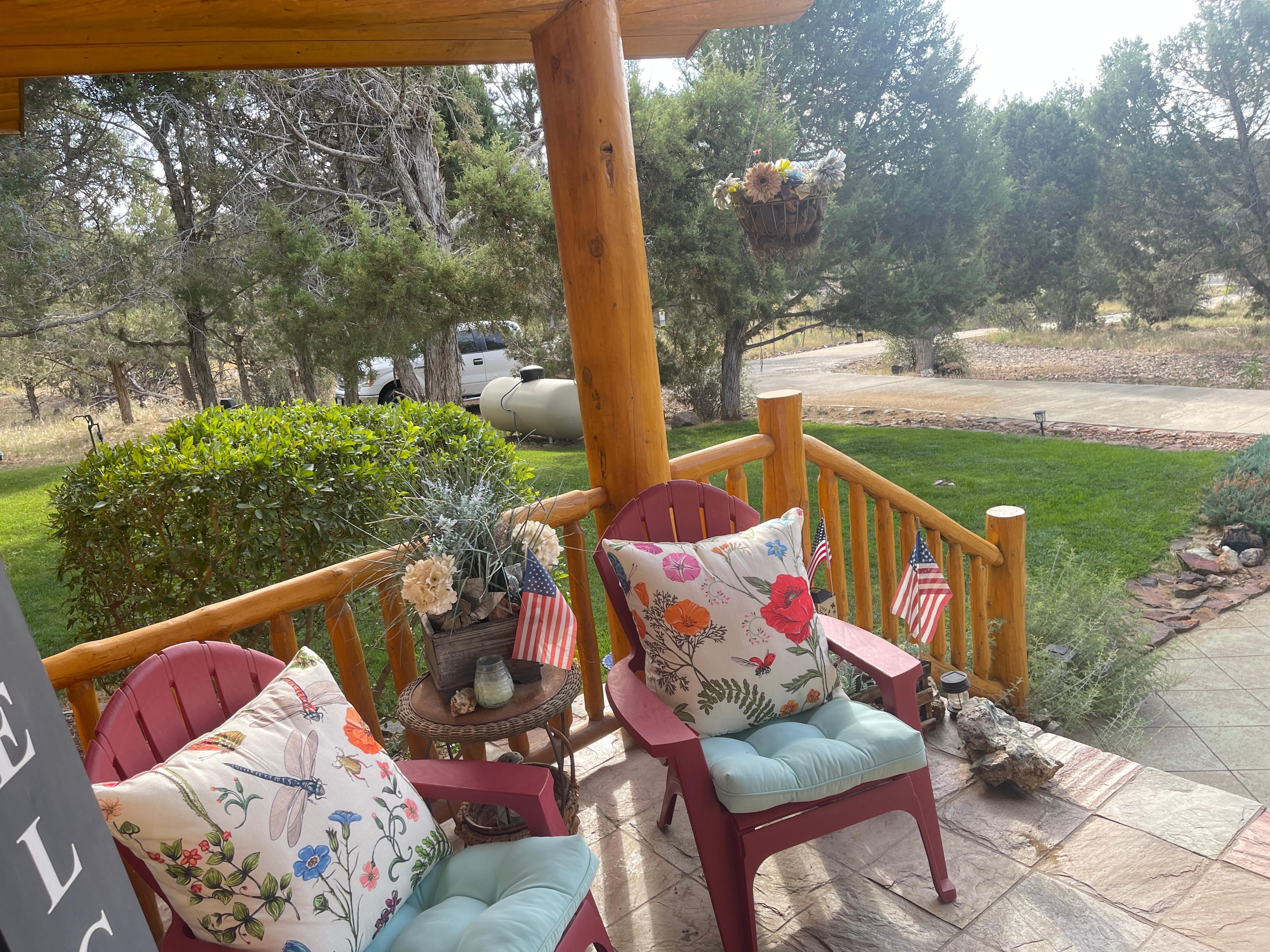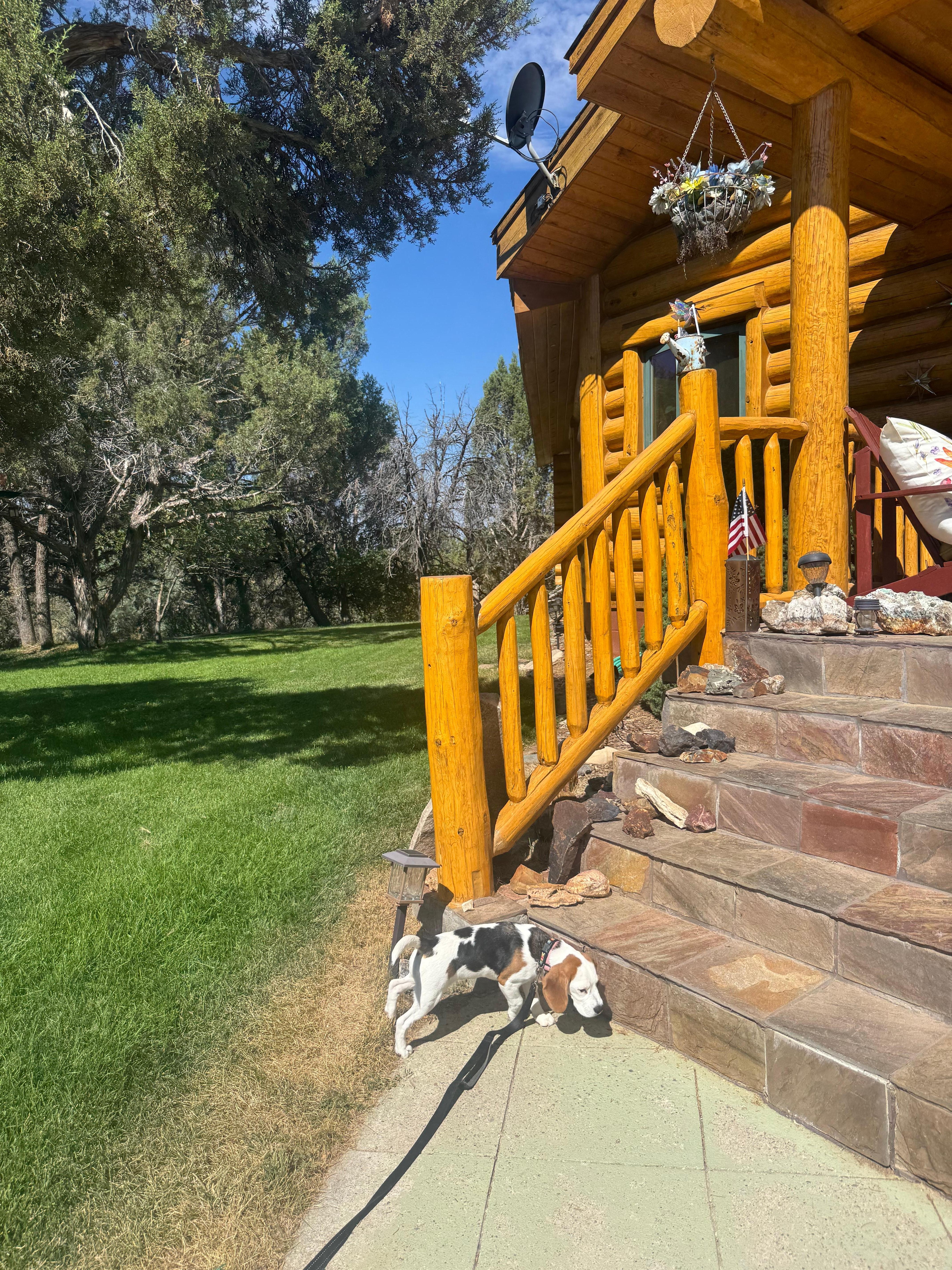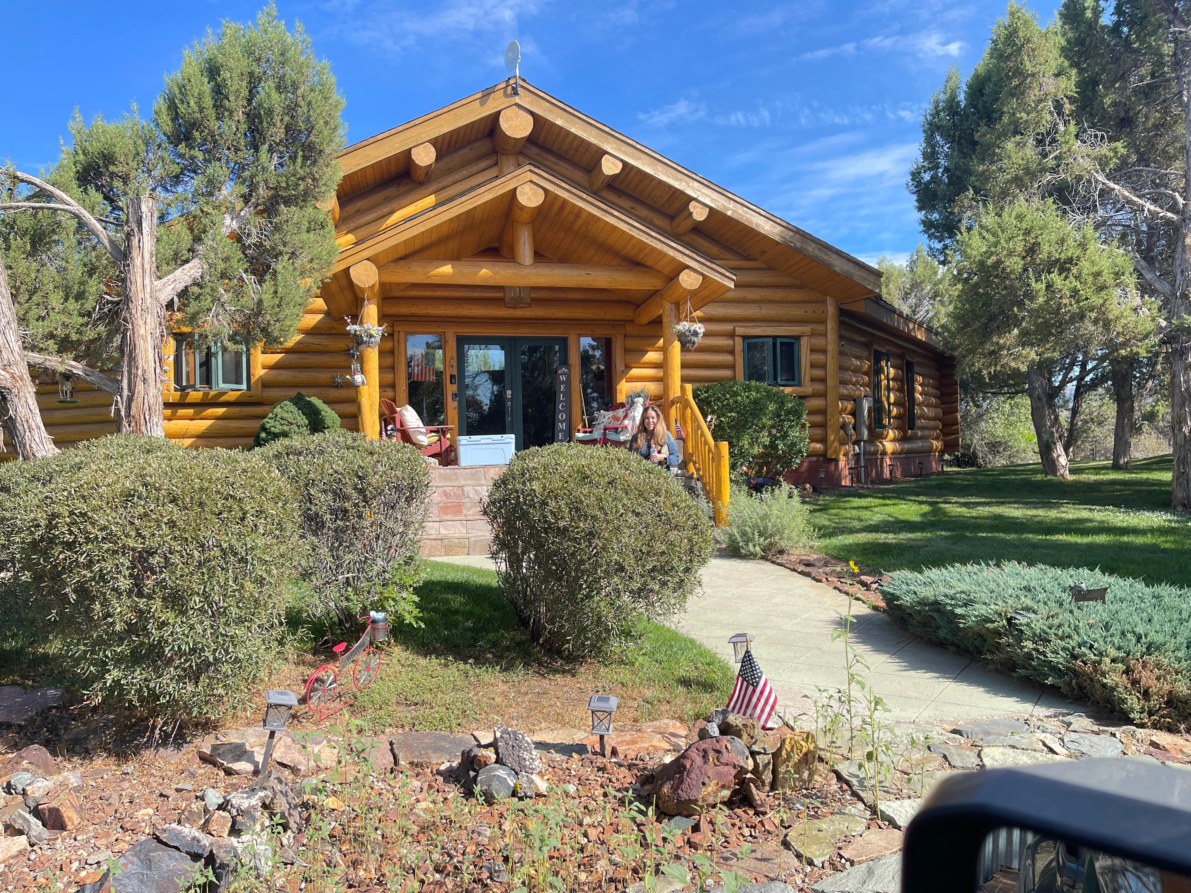 Built by respected log home builder - Larry Barnes - this wonderful Colorado custom log home enjoys peace and tranquility with majestic La Plata Mountain Views inside and out. Driving up to the house with its Silverton Eureka Rock driveway easily accommodates multiple cars and convenient in-and-out access. This great Colorado log home is located minutes to shopping/restaurants in Historic Downtown Durango as well as 3 major ski areas. Walk up the slate-tiled steps to the covered porch and enter this lovely home through the double glass doors. The home immediately opens to a huge western facing bay of windows in the living/dining room perfectly positioned to take in the grand mountain views. Located to the left of the entryway is the kitchen equipped with granite tile countertops, slate tile floors and stainless steel appliances. Birch cabinets and drawers filled with everything you will need to make your vacation feel like home. A breakfast bar for 3-4 people is made from a large piece of dimension lumber which further enriches the log home feel. A spiral staircase leads up to the loft area which looks out over the living/dining area and enjoys the same massive bay windows as the living room. This room has a queen futon. The living/dining room's high vaulted ceiling is complimented by solid log cross beams. A two-sided wood burning fireplace with river rock surround offers the romantic ambiance of an evening fire to both the living room and the master suite. An elk antler chandelier overhanging the dining area adds a touch of Colorado flair. The master suite has its own patio access and a master bathroom that will surely satisfy. An oversized Jacuzzi bathtub sits in the corner of the master bedroom supported by a travertine surround. Relax in a warm jet bath! The bathroom also has a walk-in shower with travertine tile and dual sinks with stylish oval vanity mirrors. Don't forget about the dual-sided fireplace to keep you warm on those colder evenings!