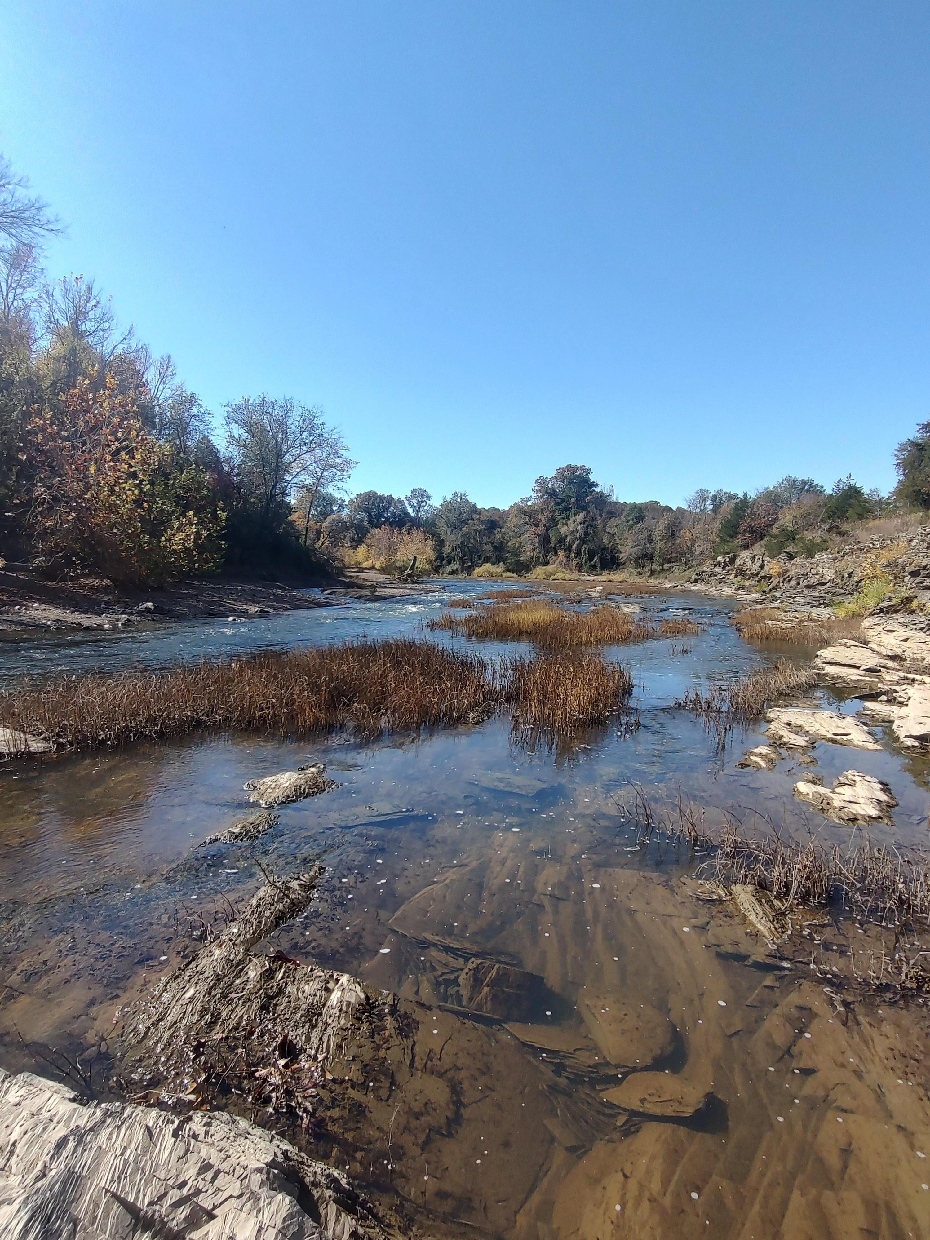 The bluffs with sunrise and sunset views can be reached via a short and easy mostly grassy walk West up the hill trail which loops through the forest and back to the start. Please watch out for rattlesnakes and fire ant nests anywhere you walk on the property.
