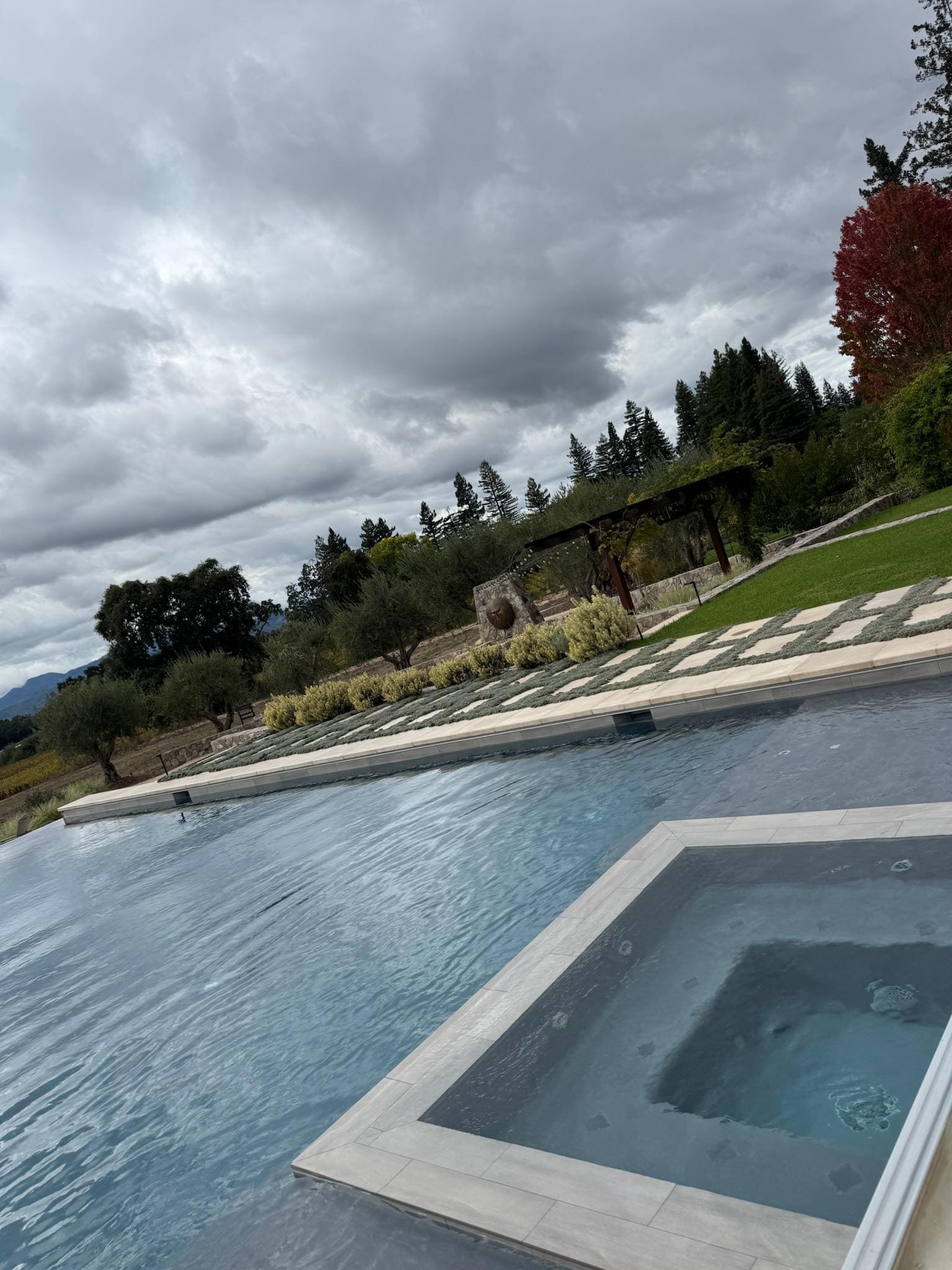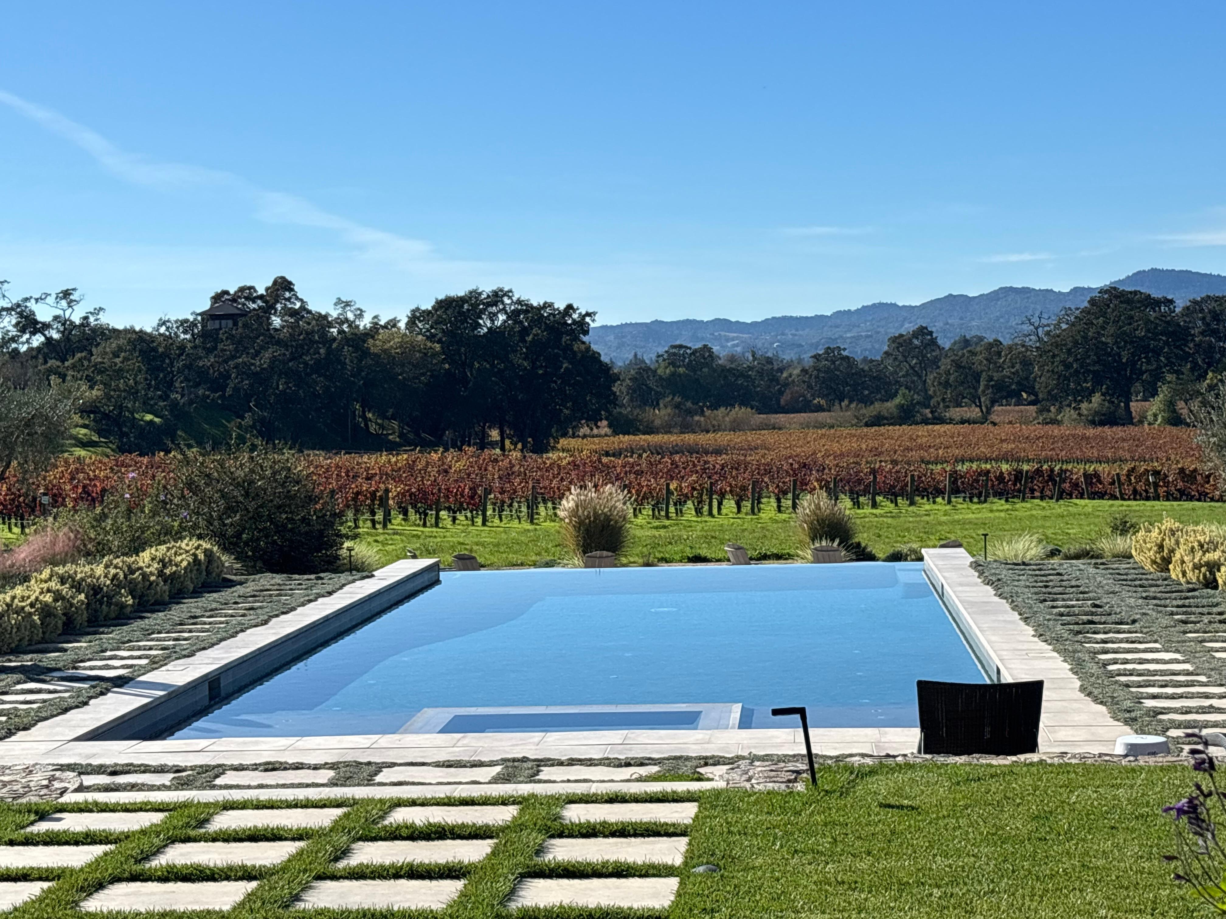 Beautiful, quiet estate surrounded by vineyards and water, 2 miles from Napa town. Main house with 2 K ensuite bedrooms (K master available for longer term stays), large LR, DR and kitchen! Separate studio cottage and Murphy bed in office (that has sauna and steam room). Large infinity pool with hot tub, bocce ball court, separate outdoor grill and patio space, and spacious event patio and lawn space perfect for parties, weddings, etc. All facing vineyards and the amazing Napa sunsets... a postcard every evening! Gorgeous landscaping, orchards and vegetable beds... help yourself!