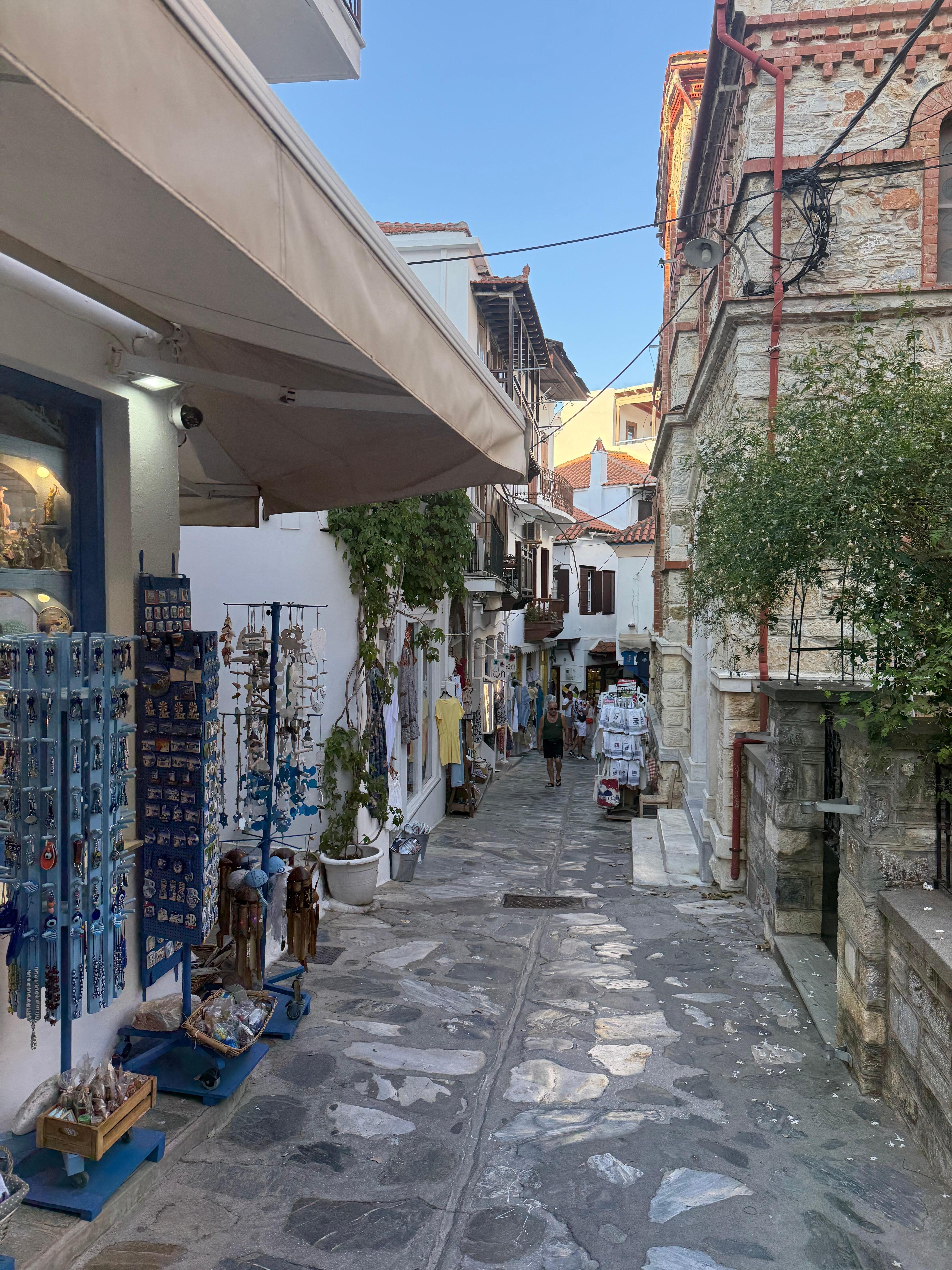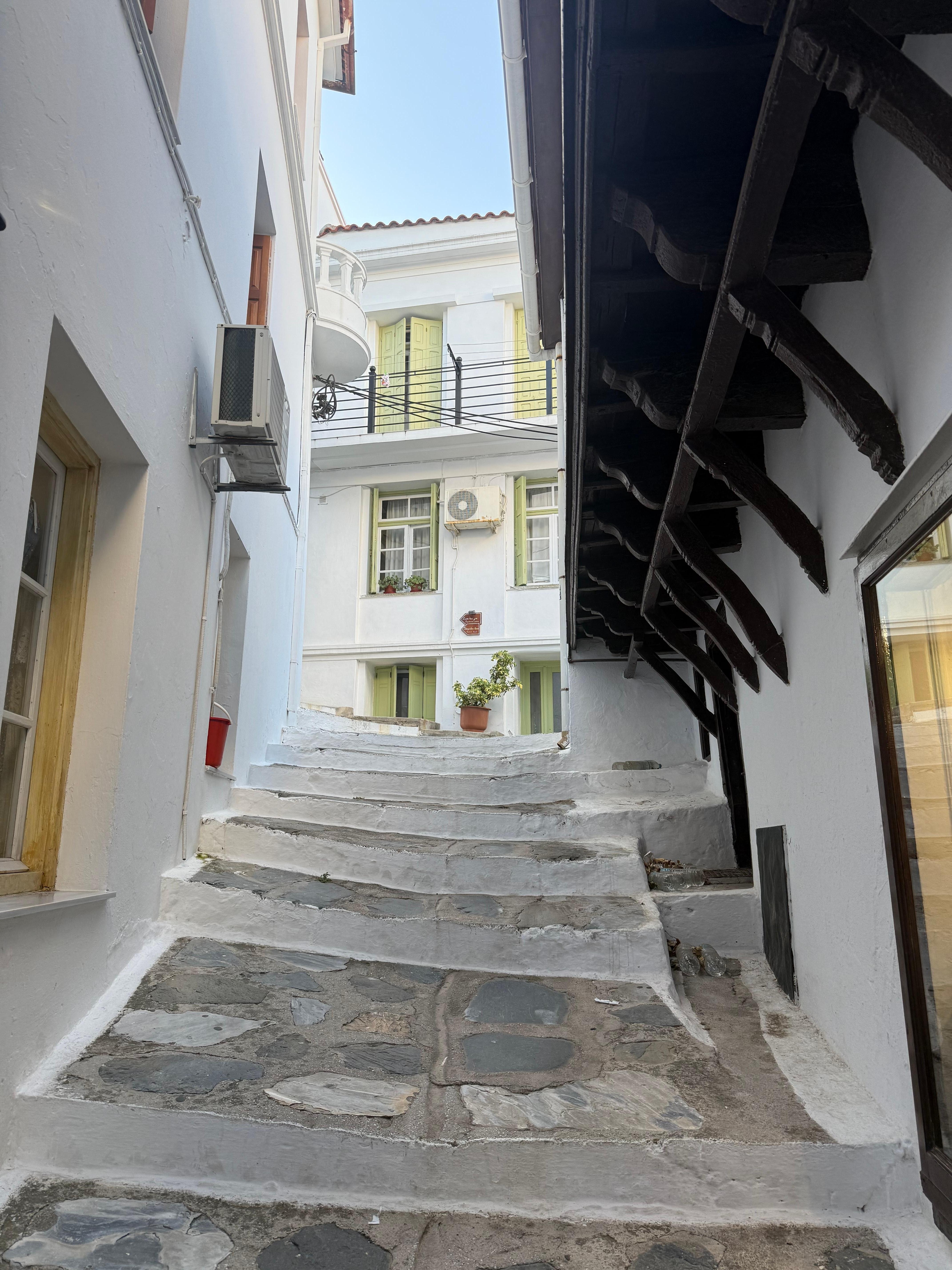 Lovely traditional 2 story house, recently remodeled, in the center of Skopelos town. Great views of the surrounding hills and Skopelos town. Two terraces allowing you to take full advantage of outdoor living under the Greek sun and blue skies. Lovely yard with lemon and orange trees, perfect for your morning coffee, mid-day fiesta or lovely easy evenings at home. The house has 3 bedrooms, one downstairs and two upstairs. Two larger bedrooms have full-size beds and each sleeps 2 and one has a bunk bed that also sleeps 2. Living room sofa can be extended and sleeps 2. Two bathrooms, one on each floor.