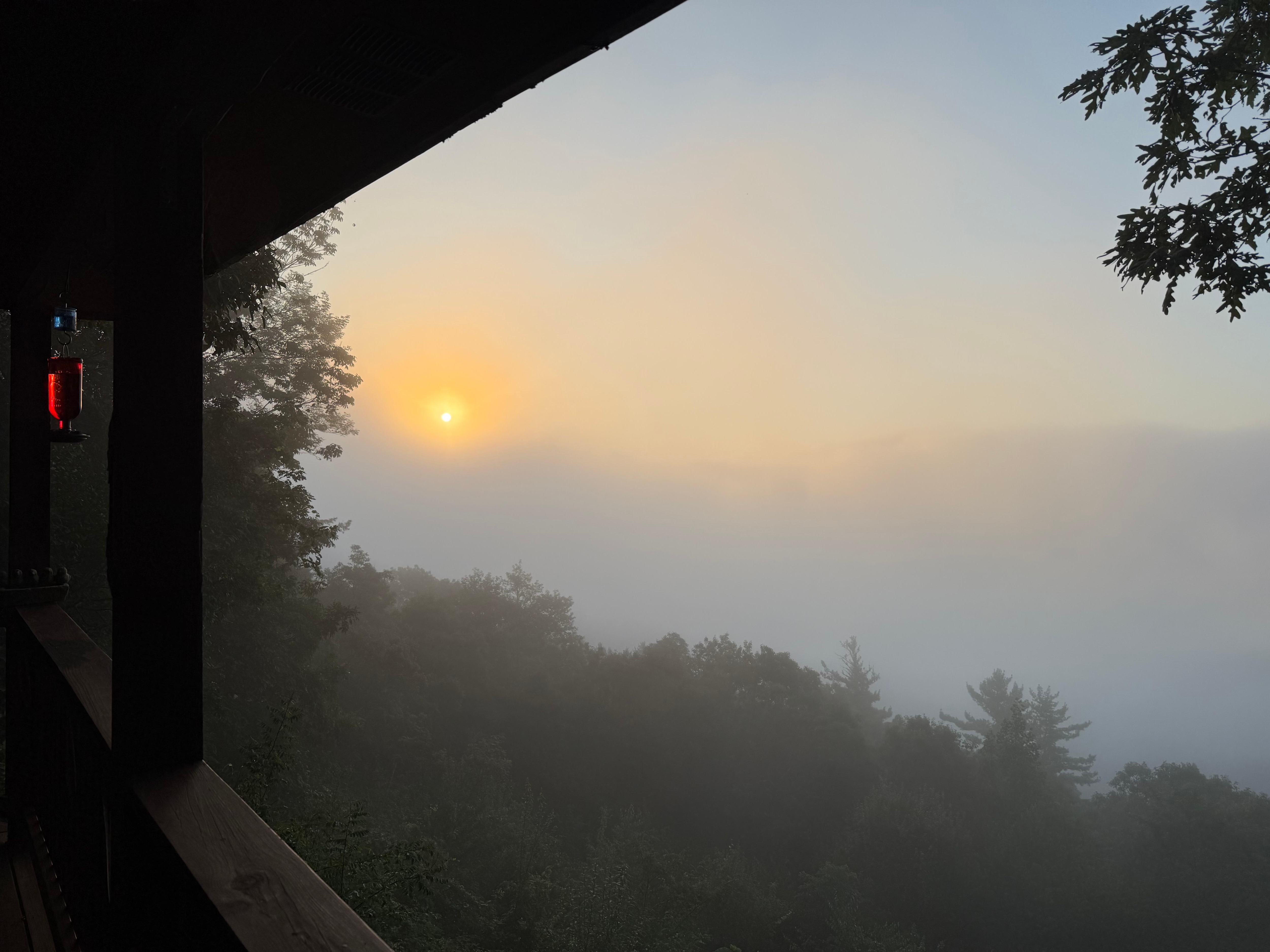 Unique property at 4900 feet elevation. Due to the elevation, it is always cooler then the surrounding towns of Cashiers, Highlands, Franklin and Glenville. Three bedrooms all with ceiling fans. The master bedroom with king size bed is located on the main floor. The larger bedroom downstairs has two twin beds, the other room has a queen bed. Each bedroom has sliding glass door to the huge outside decks. Indoor and outdoor fire places with complementary wood. Fully equipped kitchen with ceramic cook top, convection oven, micro wave oven, refrigerator/ freezer with ice maker, dishwasher and cooking utensils. Washer and dryer. Pets are allowed, two dogs per pet fee. Non smoking only. Children welcome. Linens provided. TV (Dish Network) and DVD player. only. Iphone/ipod music player. Master bathroom with tub and shower.