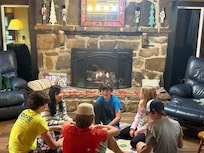 In warmer months, walk down to the shallow creek to wade and play with the whole family. With creek and tree-studded vistas year-round plus a private bridge over the creek that leads to a party barn, it's a nature-riffic retreat. Inside this 3-bedroom, 2-bathroom cabin in the Smokies, continue the good times — with rounds at the ping-pong table, board game nights, and chats by the electric (heated) or gas fireplaces. Grab popcorn and treats from the fully equipped kitchen and settle in for movie nights; you can even split the group between 2 big screen TVs in the vacation home so everyone can watch what they want.