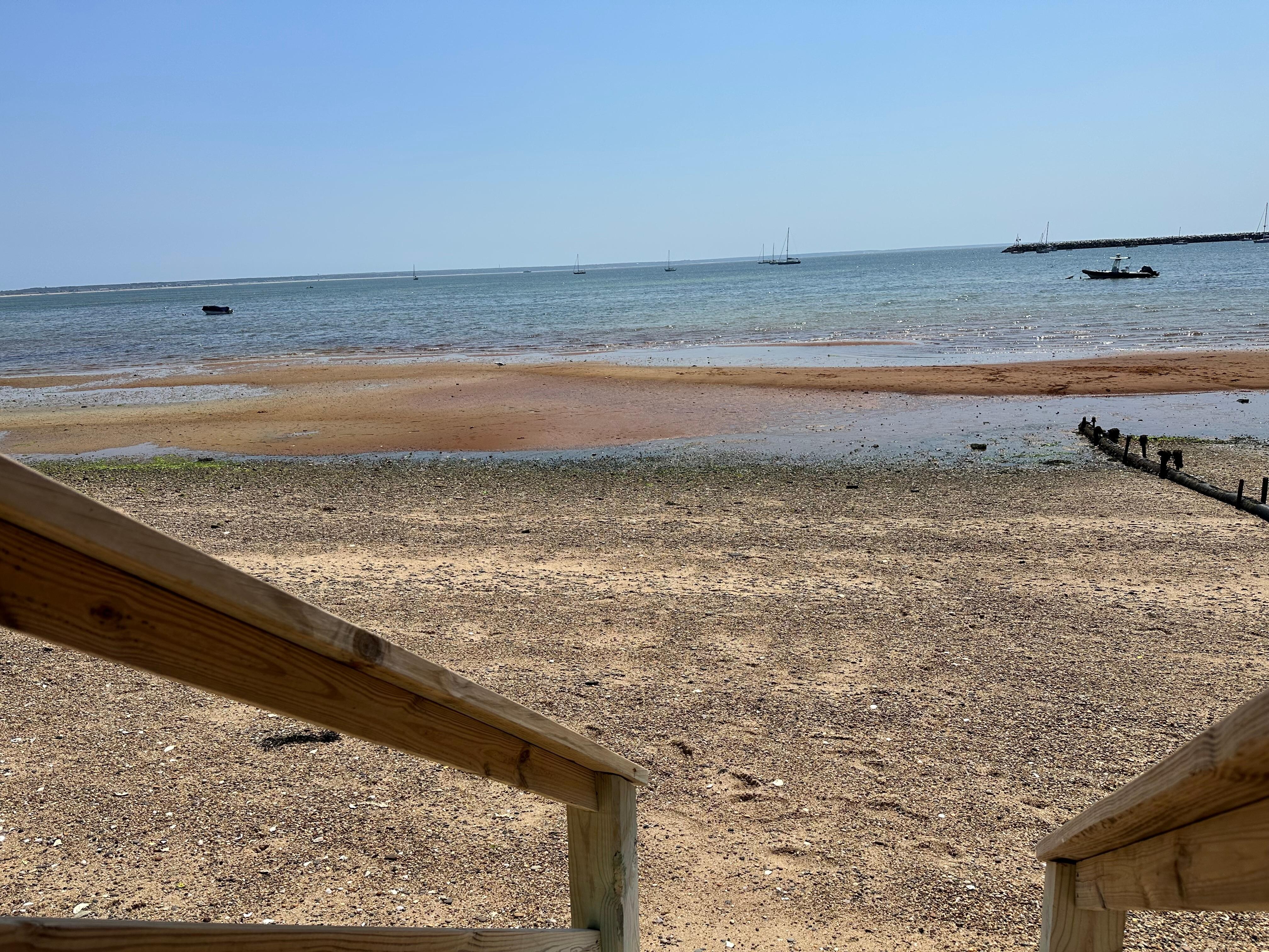 Step outside to your direct waterfront beach access, where you can relax by the shoreline, launch a kayak, or simply enjoy the peaceful harbor setting.